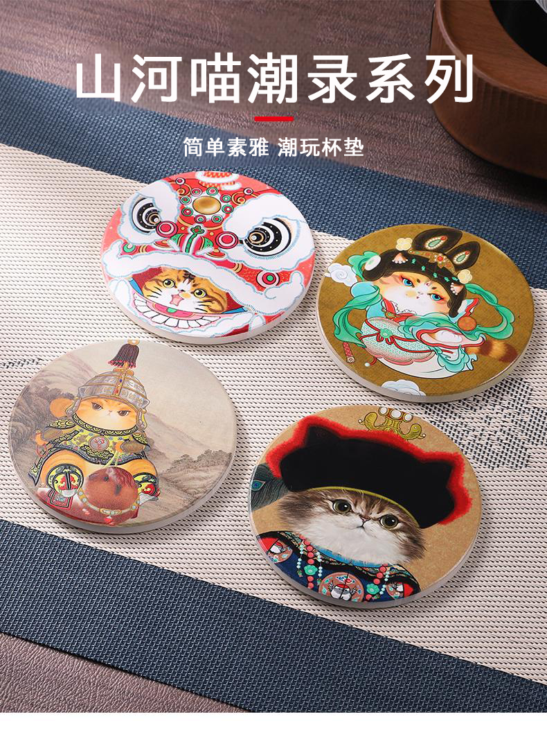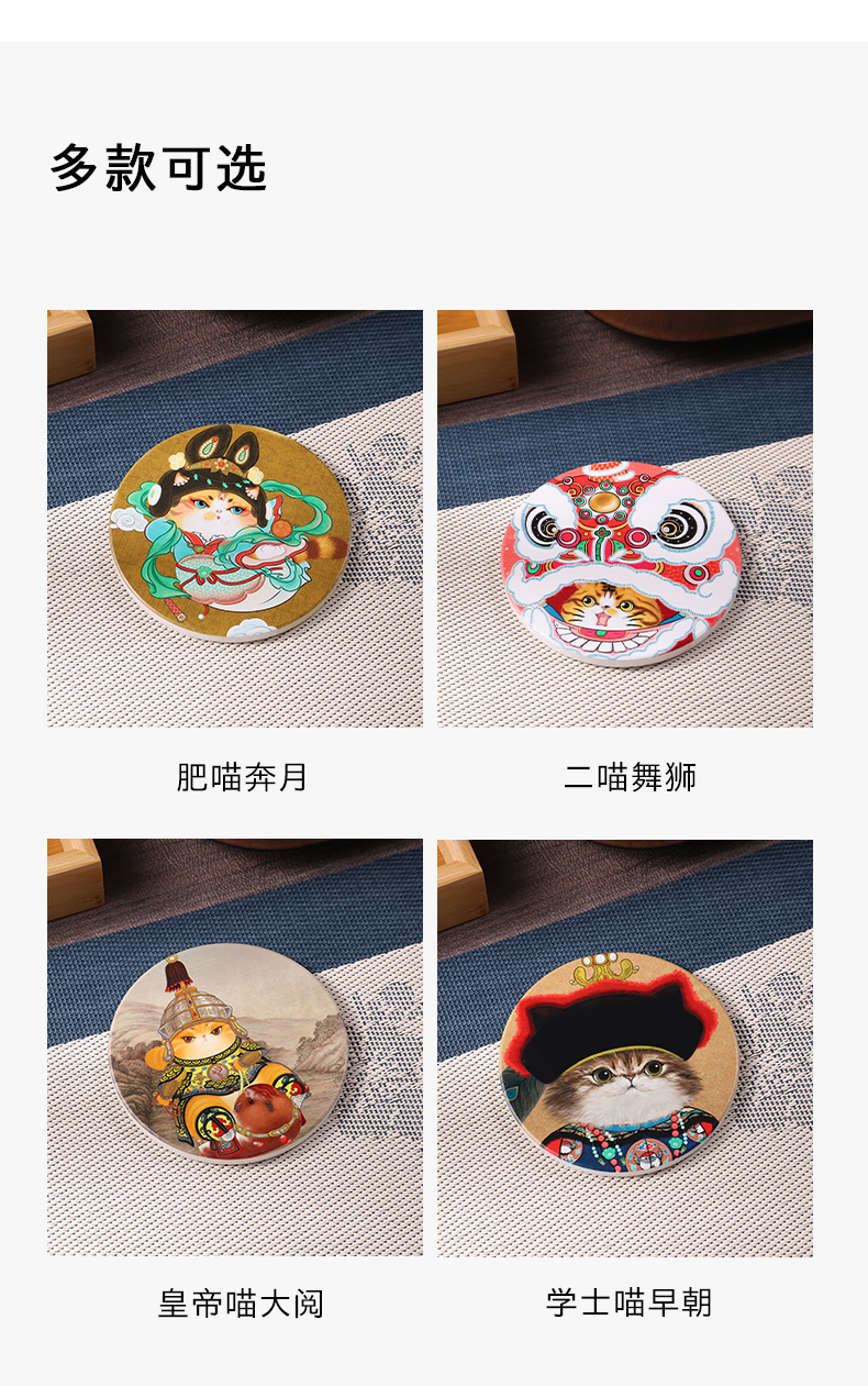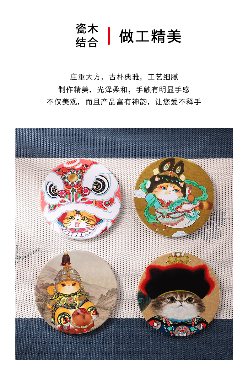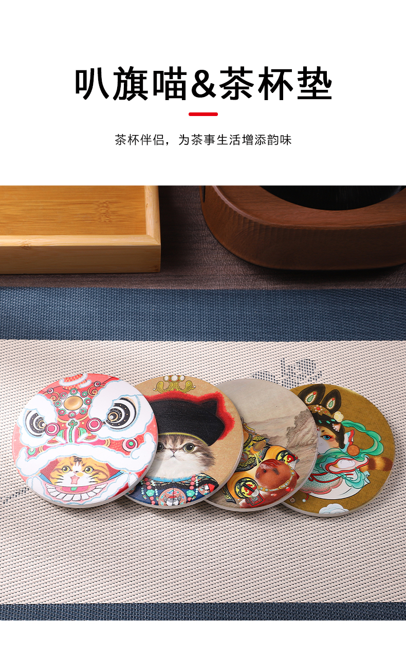 【故宫正品宫猫杯垫】2026马年新年节日猫八旗猫国风陶瓷木质潮玩杯垫山河喵潮录