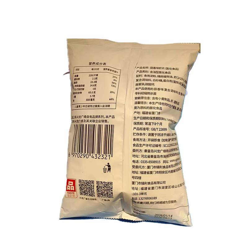兴龙广缘50g蒜香味虾片