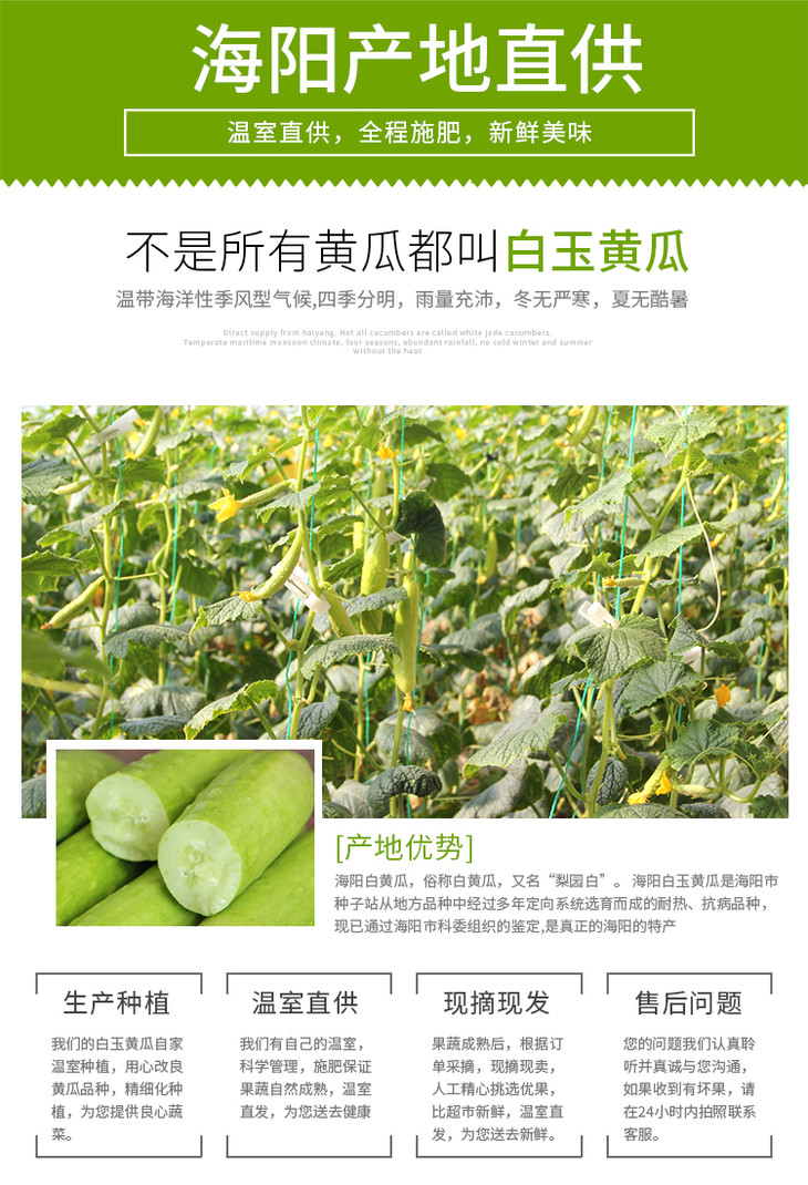 “海阳白玉黄瓜”为国家地理标志产品,是珍贵的历史遗产,绿色栽培种植,