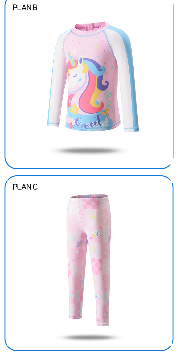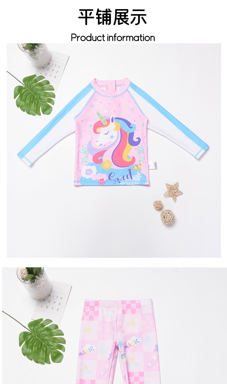 送帽子!【吸湿透气,防晒速干,桑软舒适】三件套一次配齐!儿童泳衣女孩 女童宝宝分体防晒长裤长袖 速干中大童可爱游泳衣泳装-QQ
