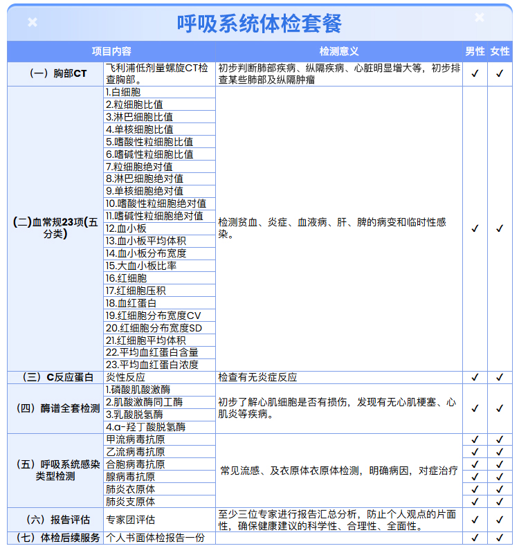 【常见流感|呼吸系统专项】含胸部CT+六项感染类型+C反应+酶谱全套 A25