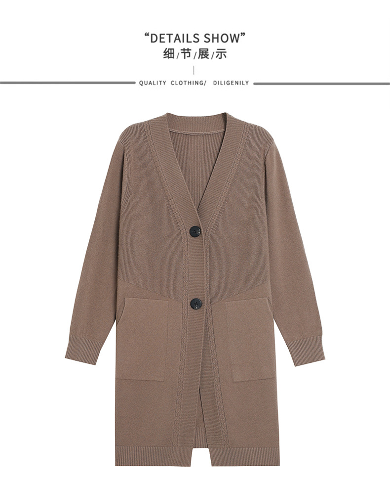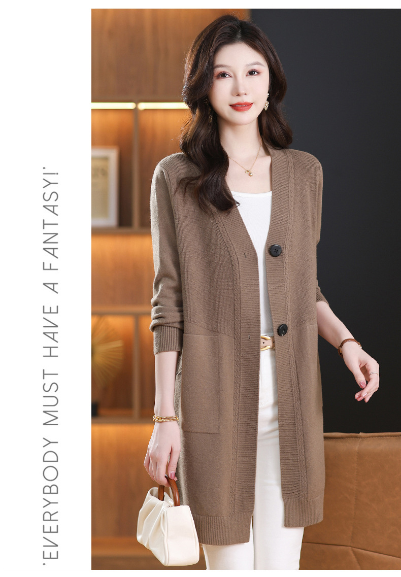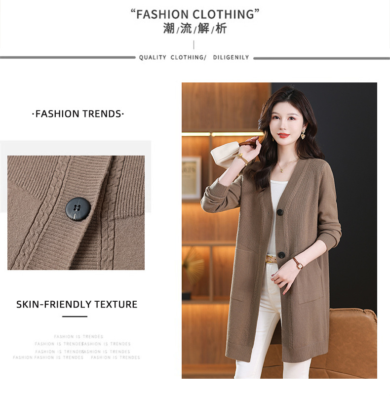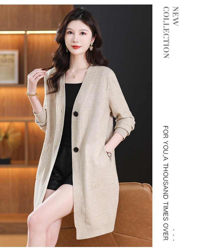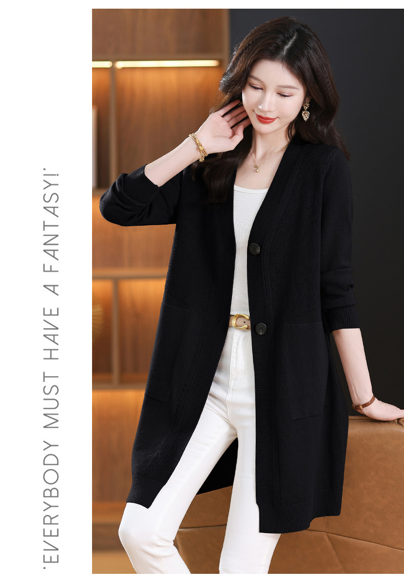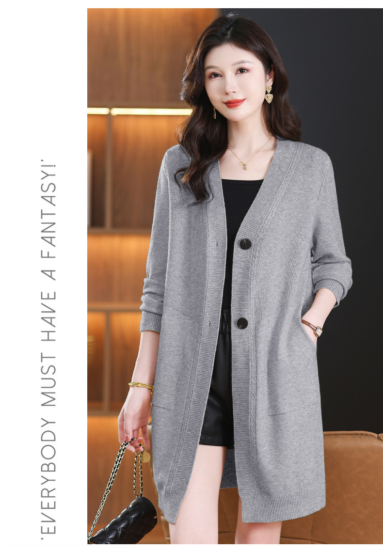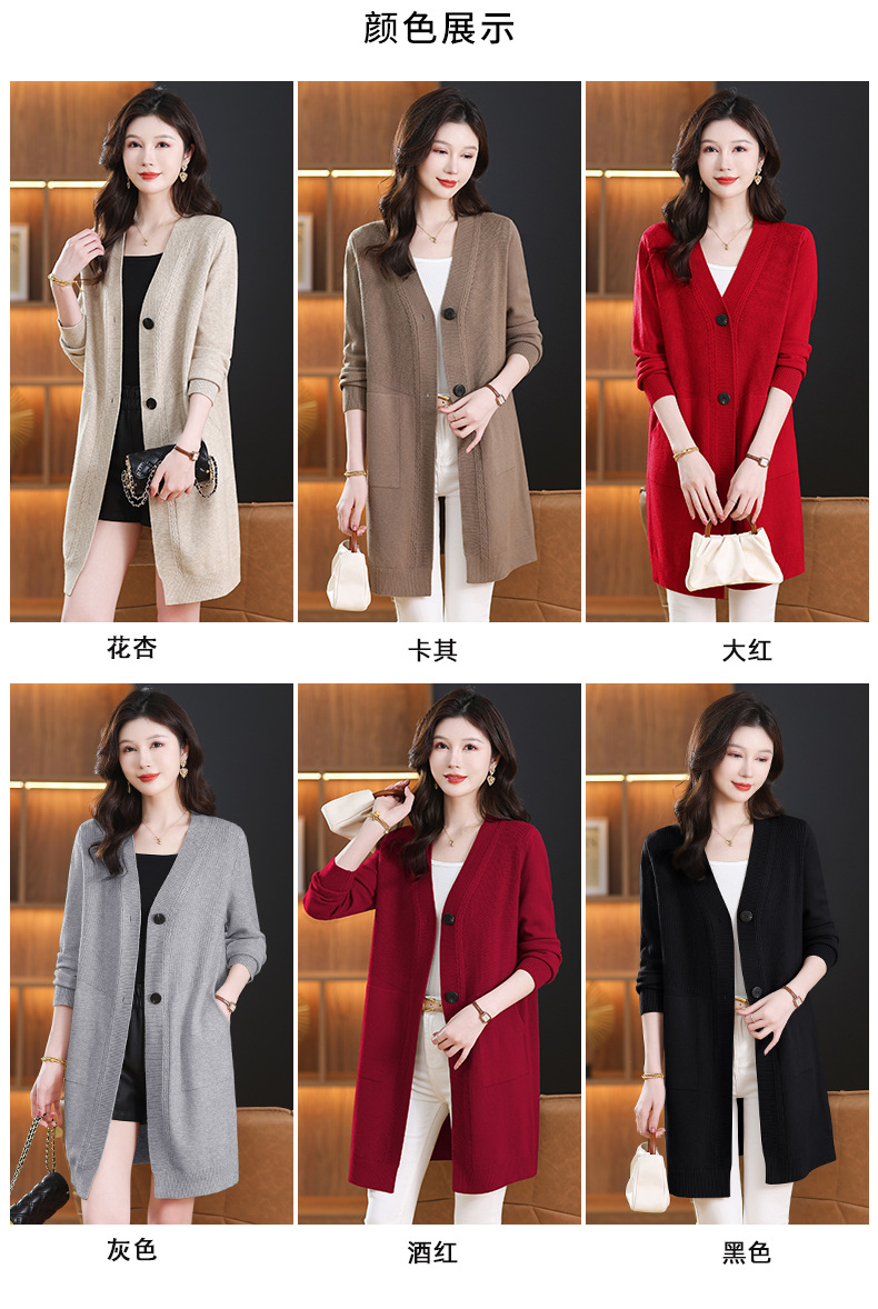 CC2025年秋装针织开衫外搭宽松v领纯色中长款披肩毛衣外套