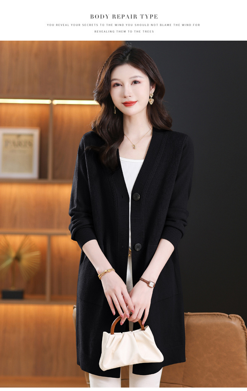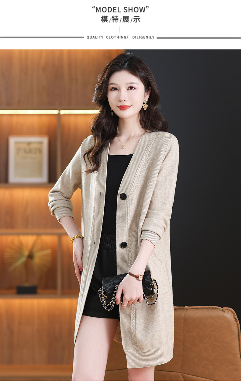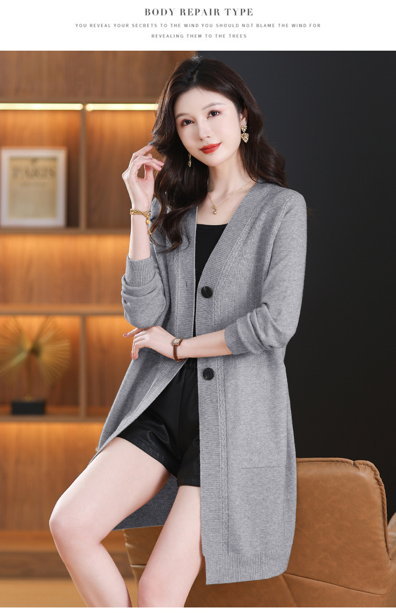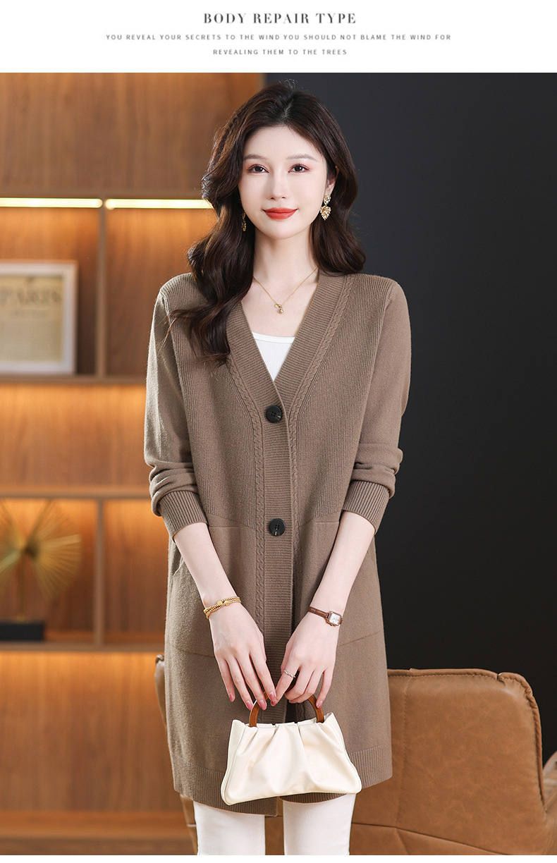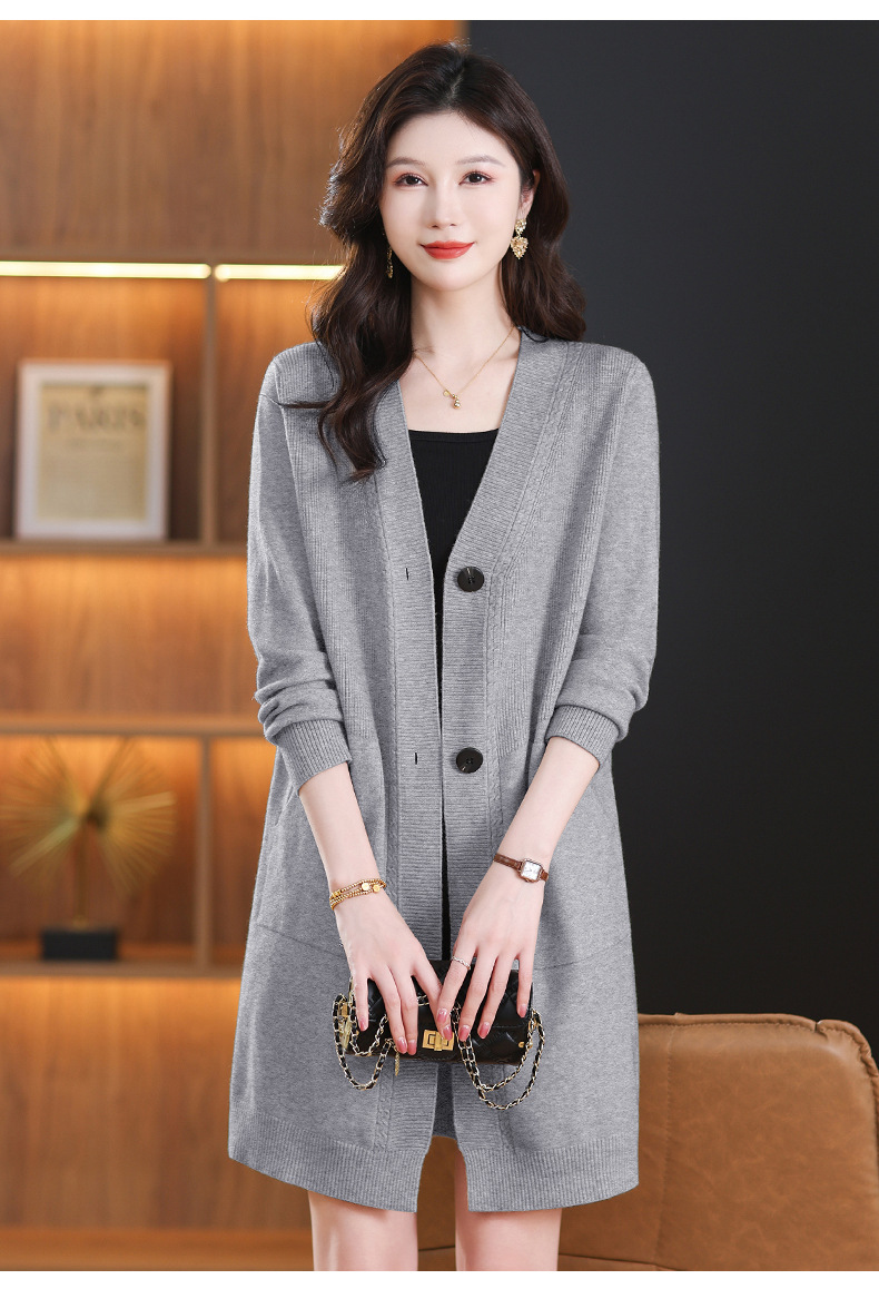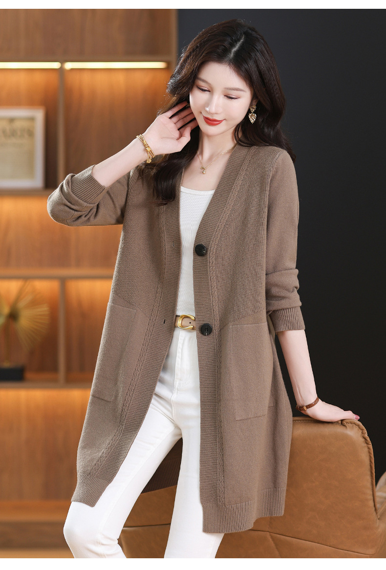 CC2025年秋装针织开衫外搭宽松v领纯色中长款披肩毛衣外套