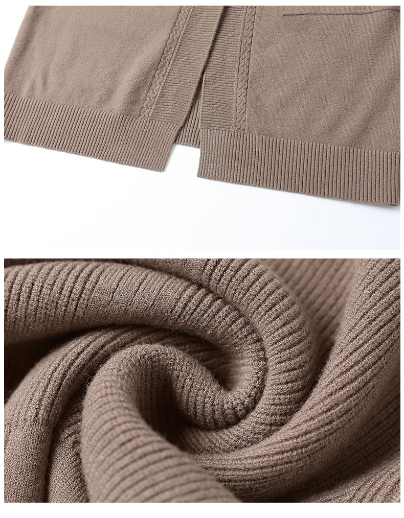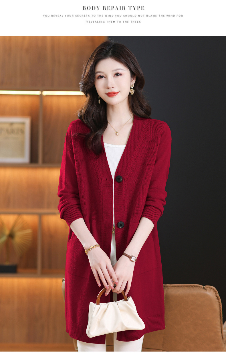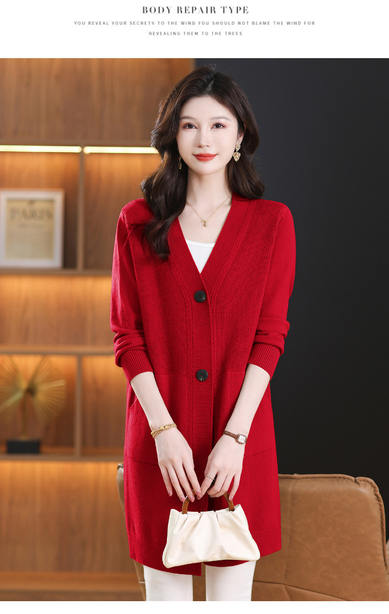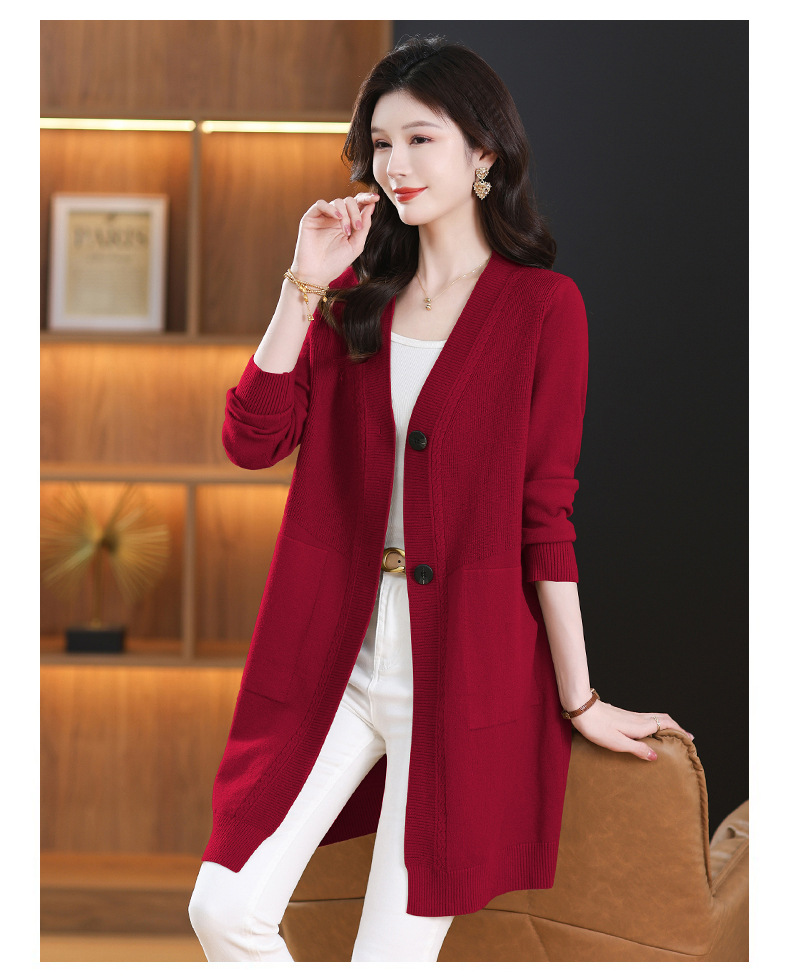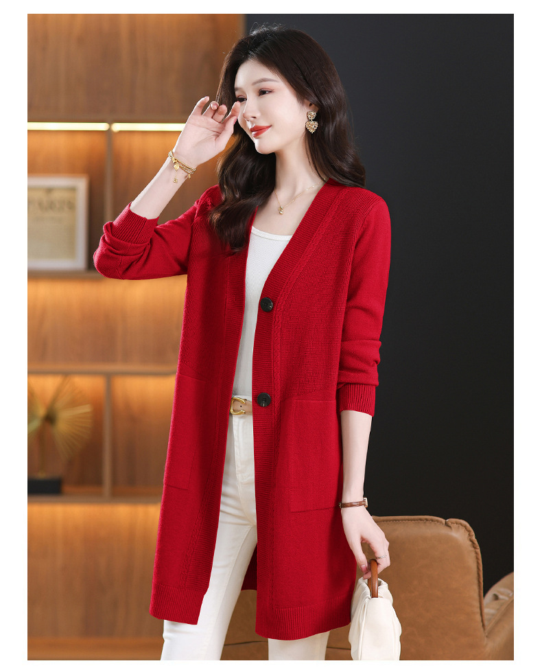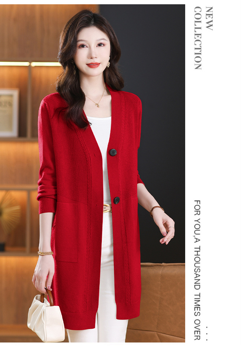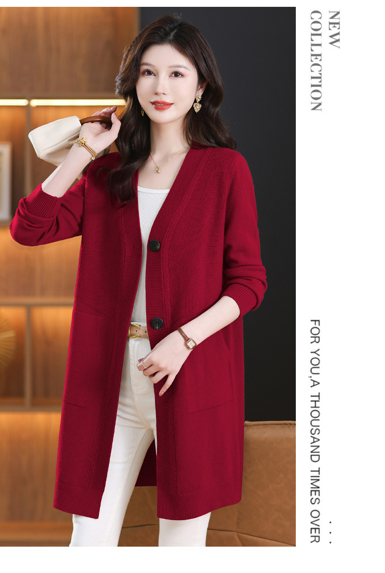 CC2025年秋装针织开衫外搭宽松v领纯色中长款披肩毛衣外套