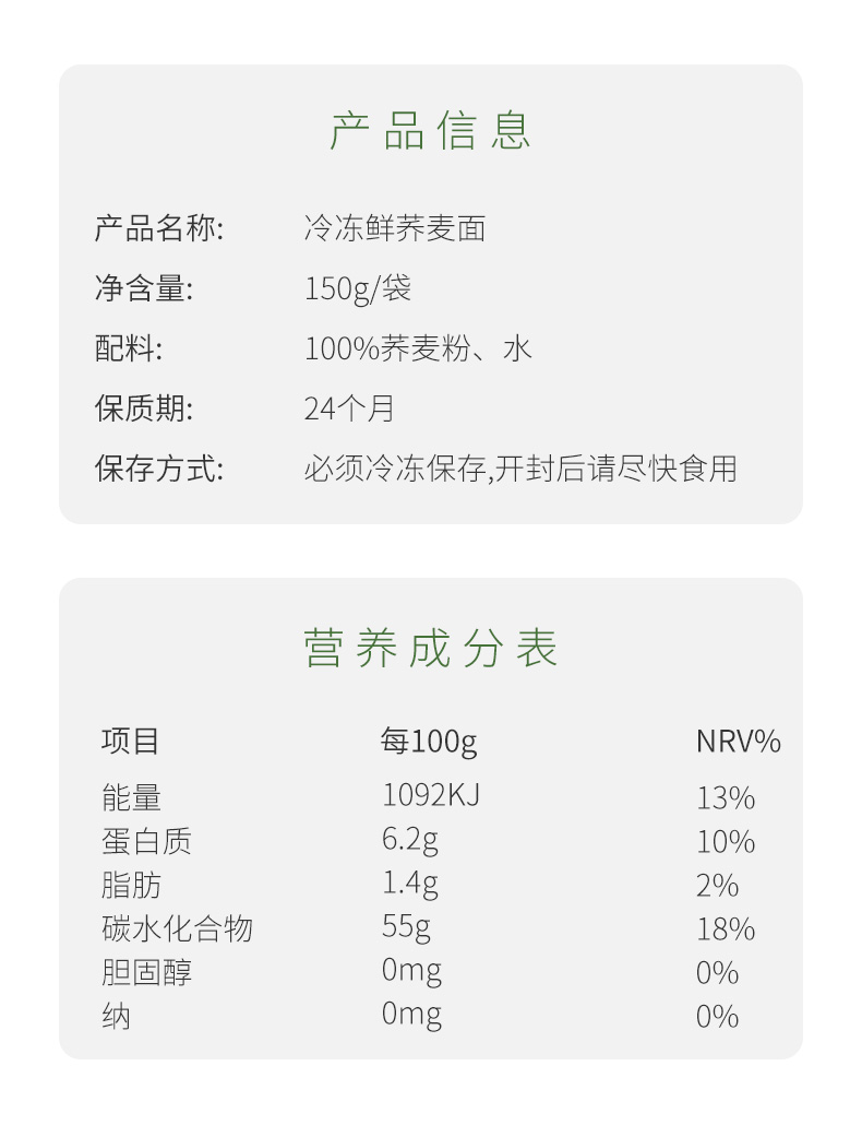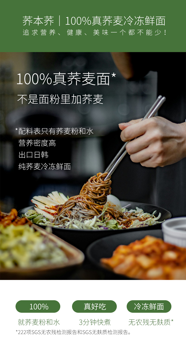 荞麦面 100%真荞麦冷冻鲜面 口感顺滑 爽口好吃 耐煮不易断 无农残无麸质