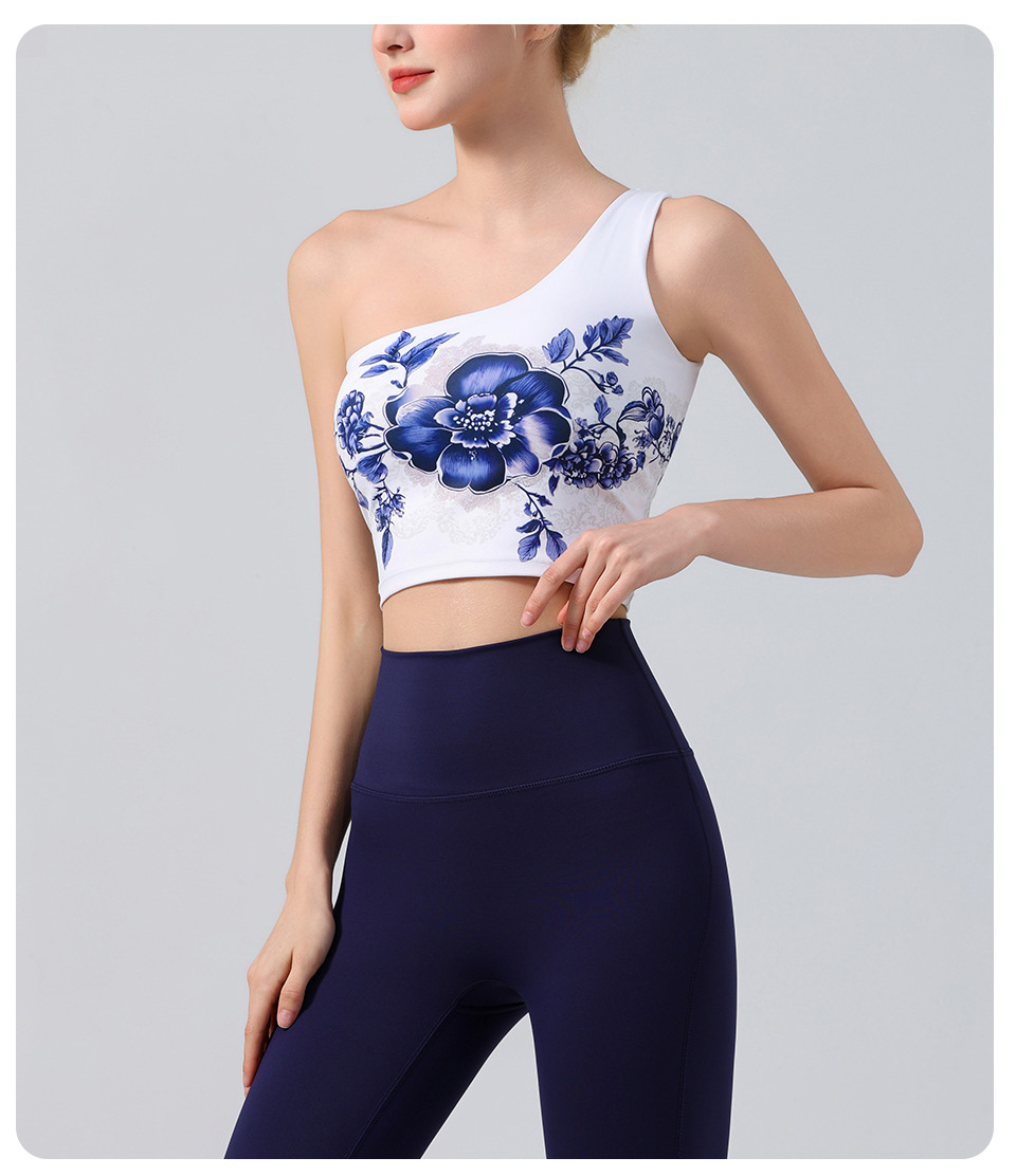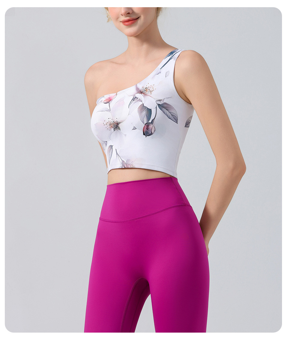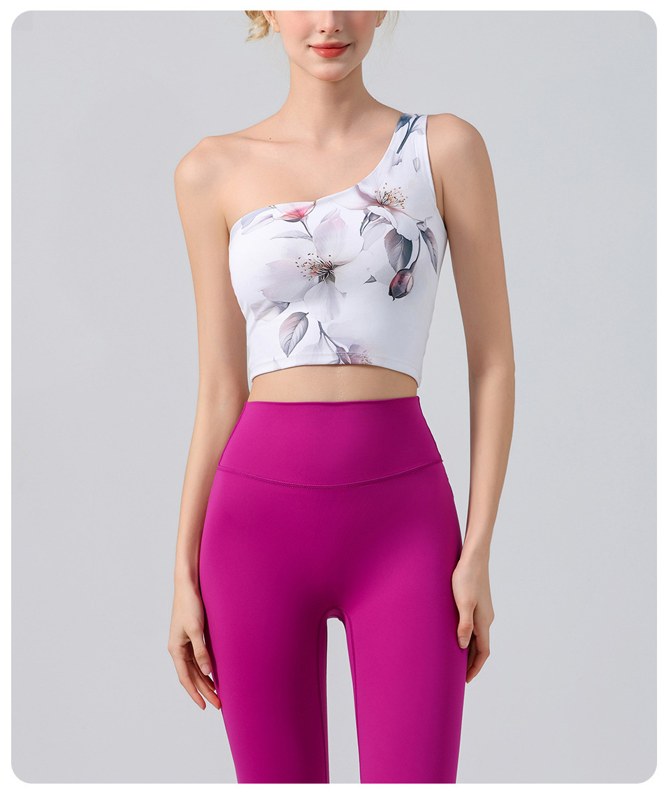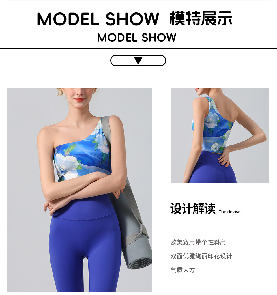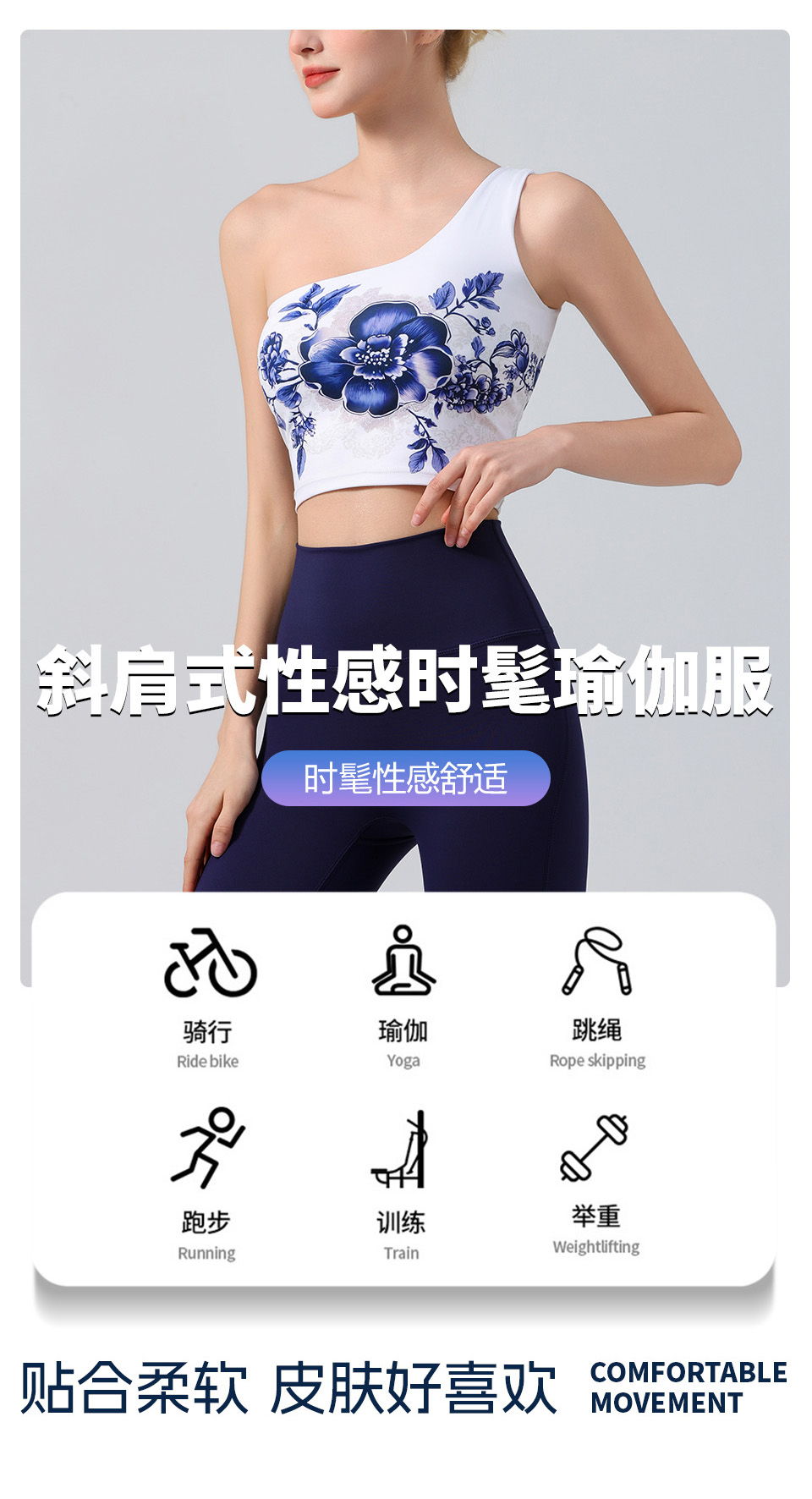 【126元任选2件】跃牌【漫西】系列 新款斜肩式时尚运动健身瑜伽服套装女带胸垫拼接Y279
