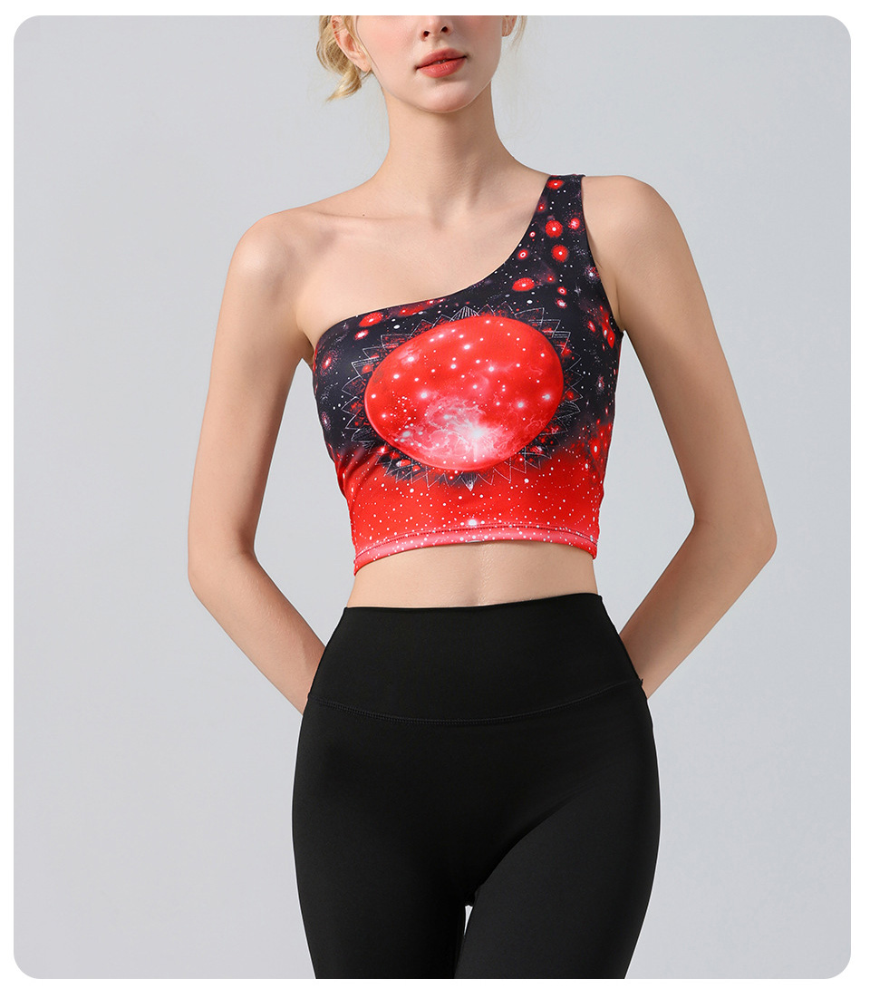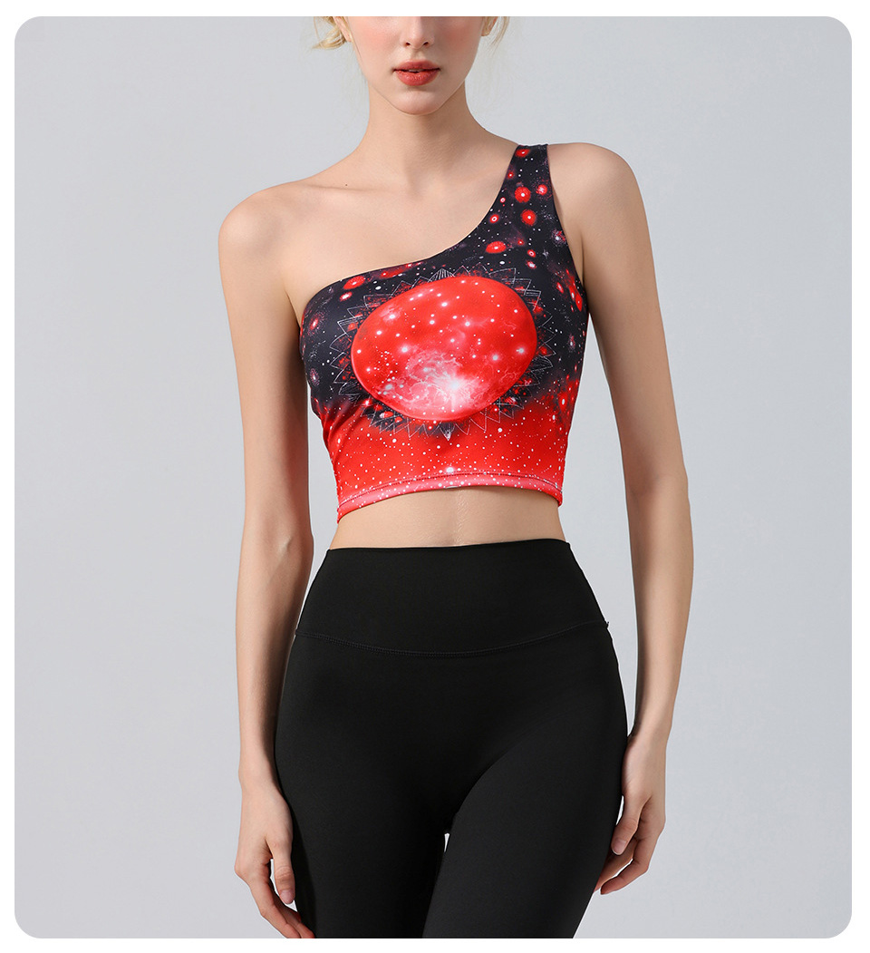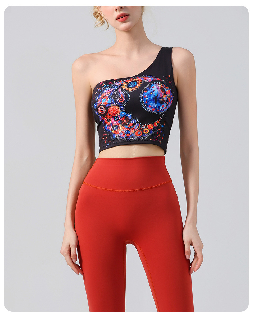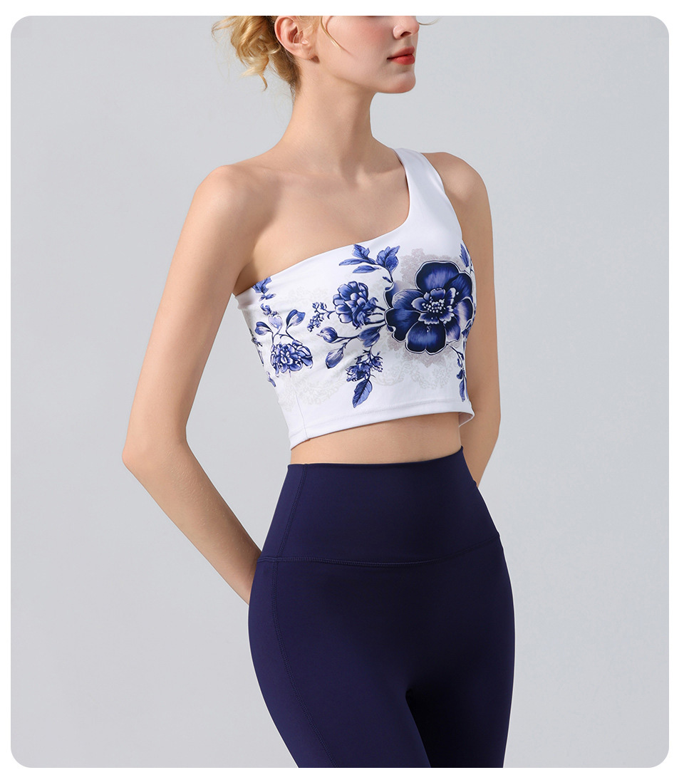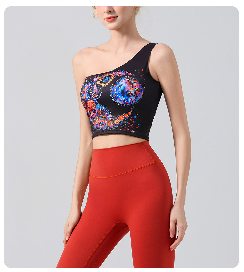【126元任选2件】跃牌【漫西】系列 新款斜肩式时尚运动健身瑜伽服套装女带胸垫拼接Y279