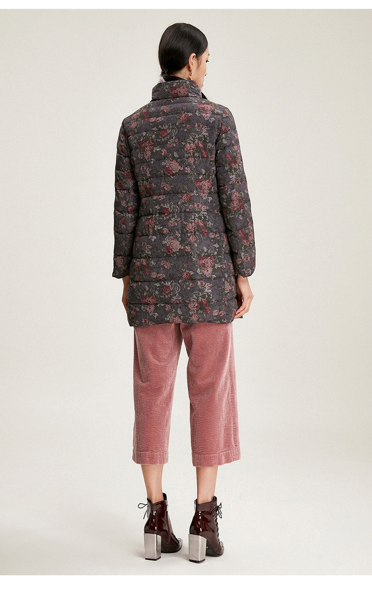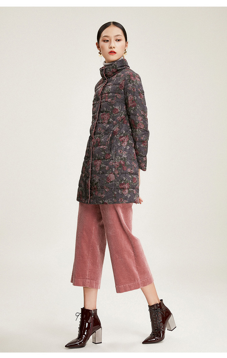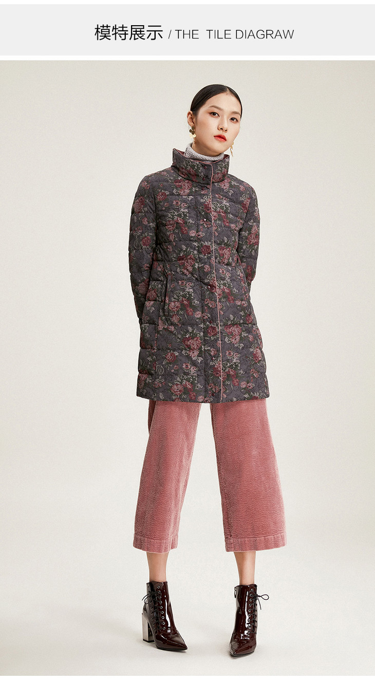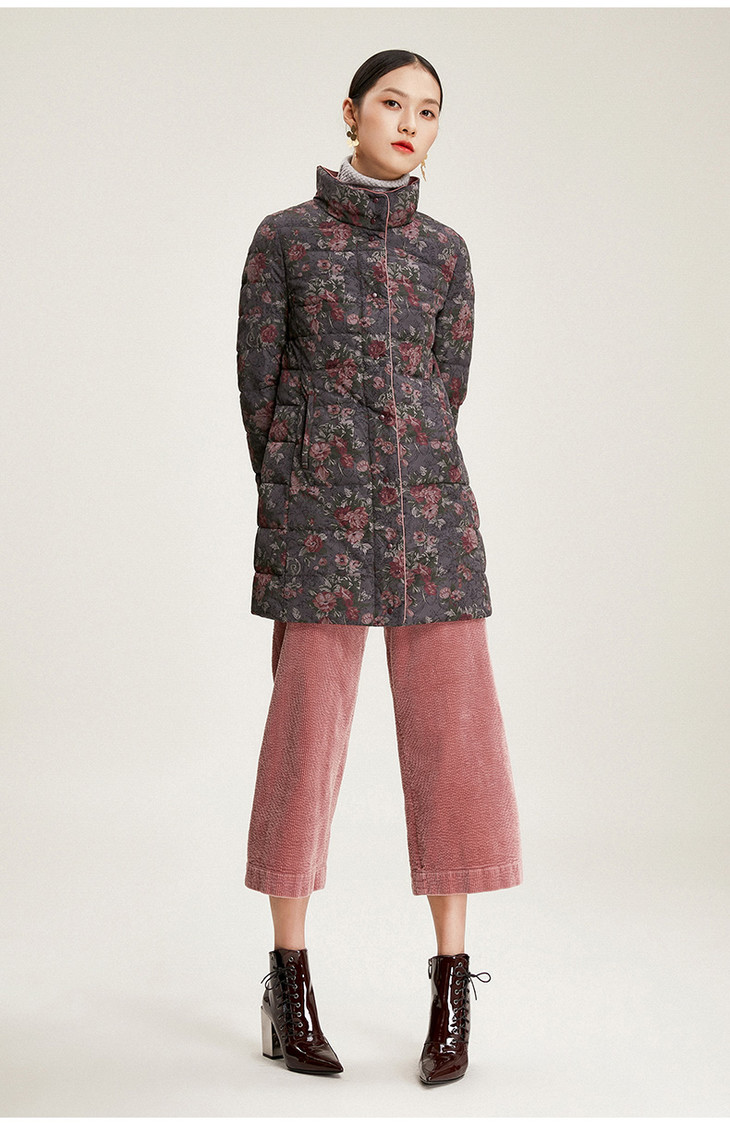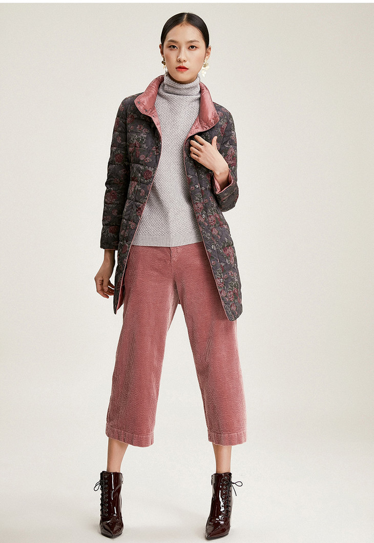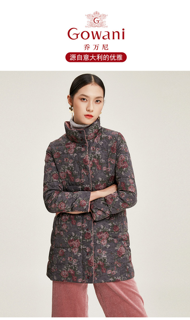 乔万尼冬季外套女白鸭绒收腰修身短款立领双面羽绒服EN4T751