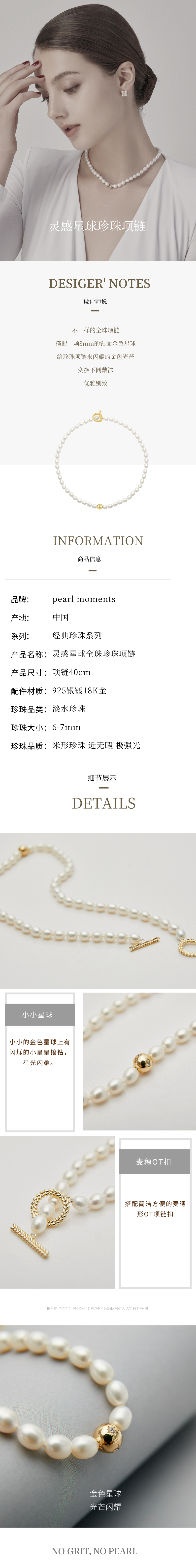 Pearl moments 灵感星球米形全珠项链