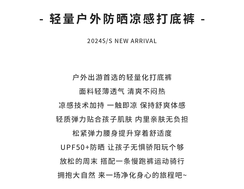 棵初夏季新款儿童轻量户外防晒凉感打底裤亲子运动骑行慢跑裤