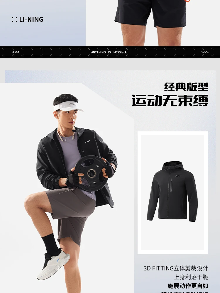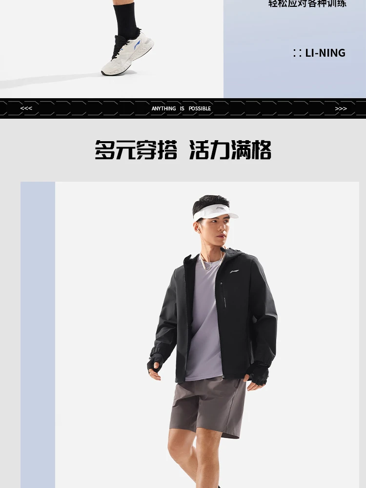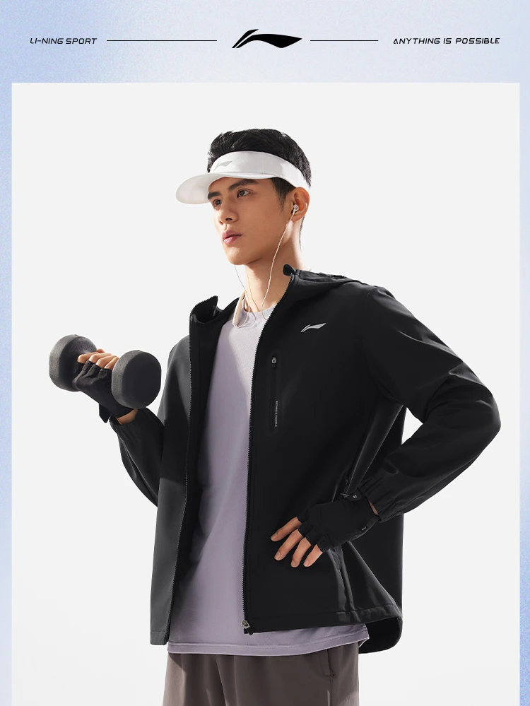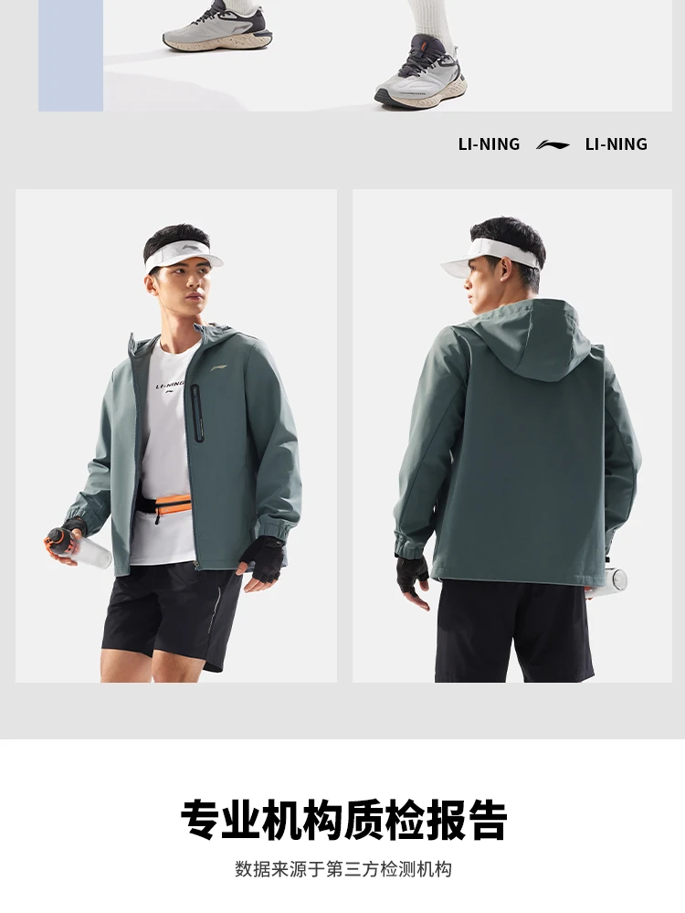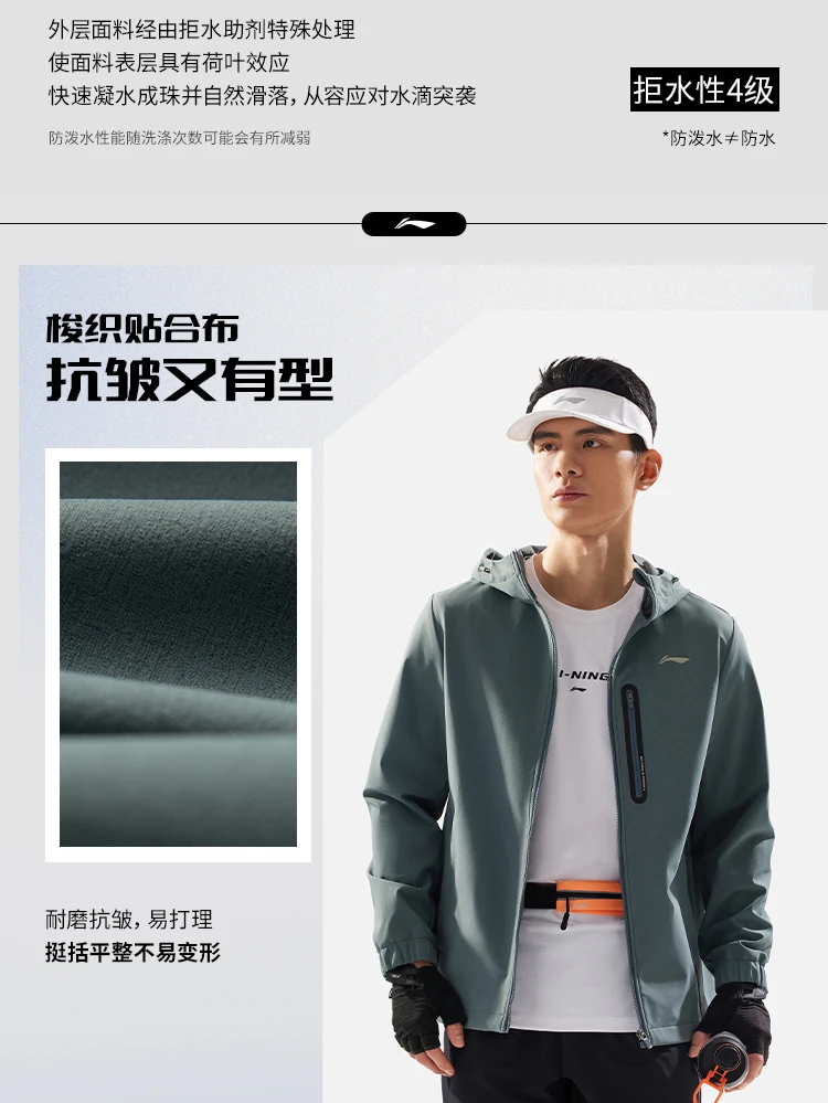 李宁丨运动外套男款2025春新款防泼水抗皱梭织连帽风衣AFDV071 DS