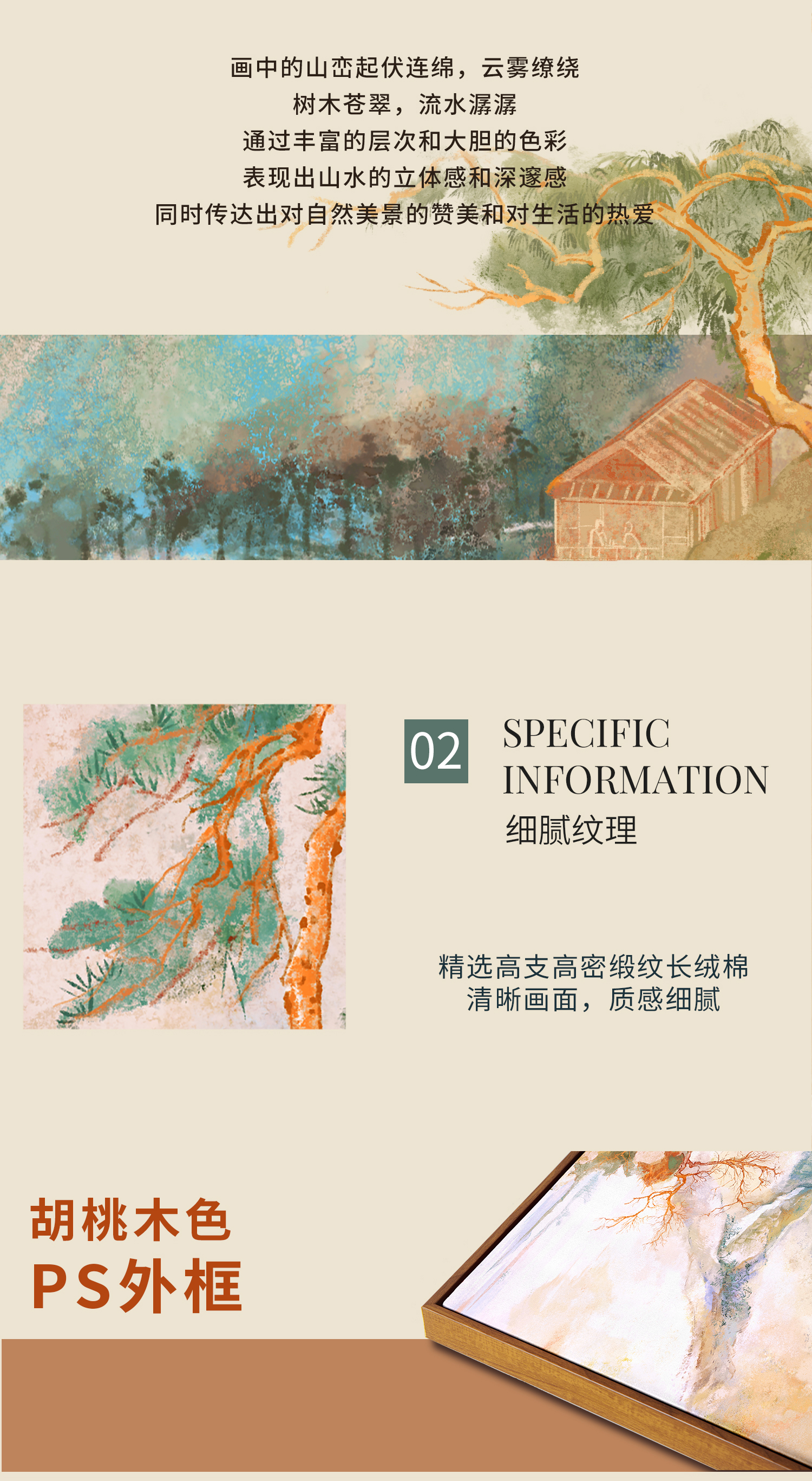 多喜爱高清数码布艺装饰 国风新时尚挂画-锦绣山峦cs
