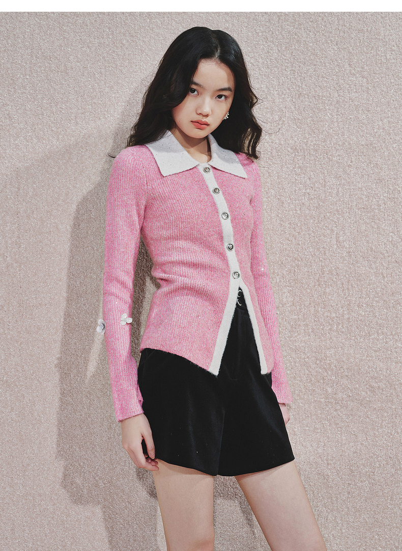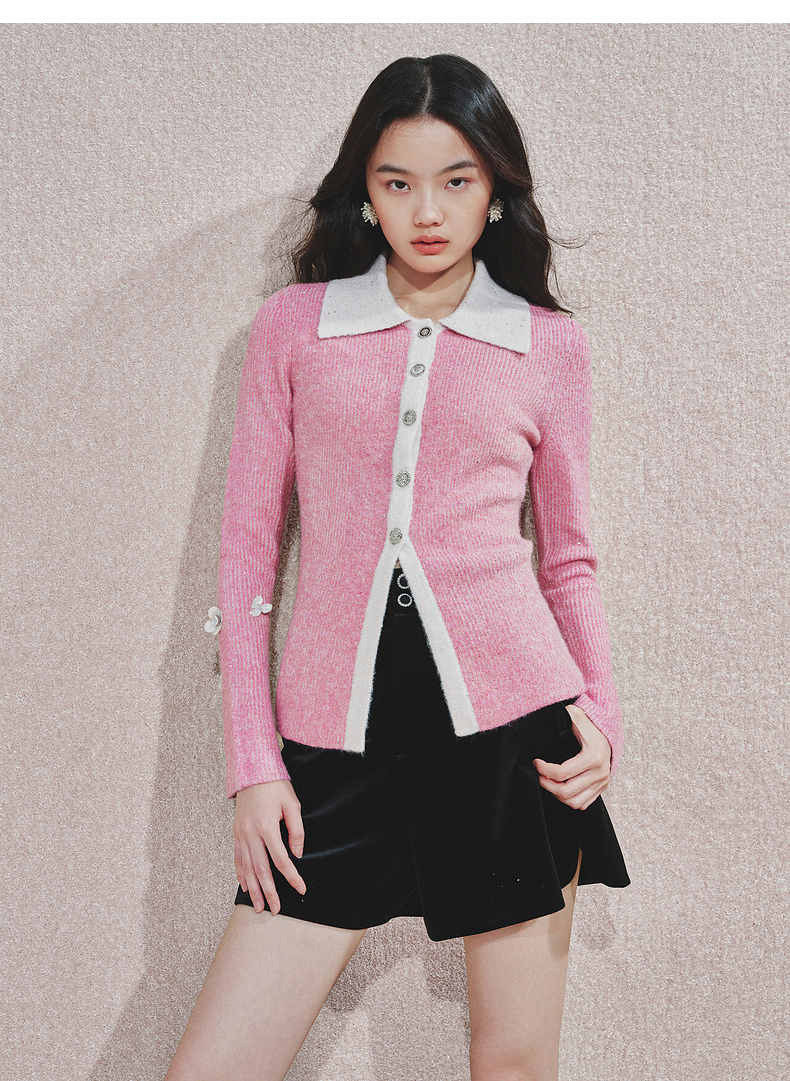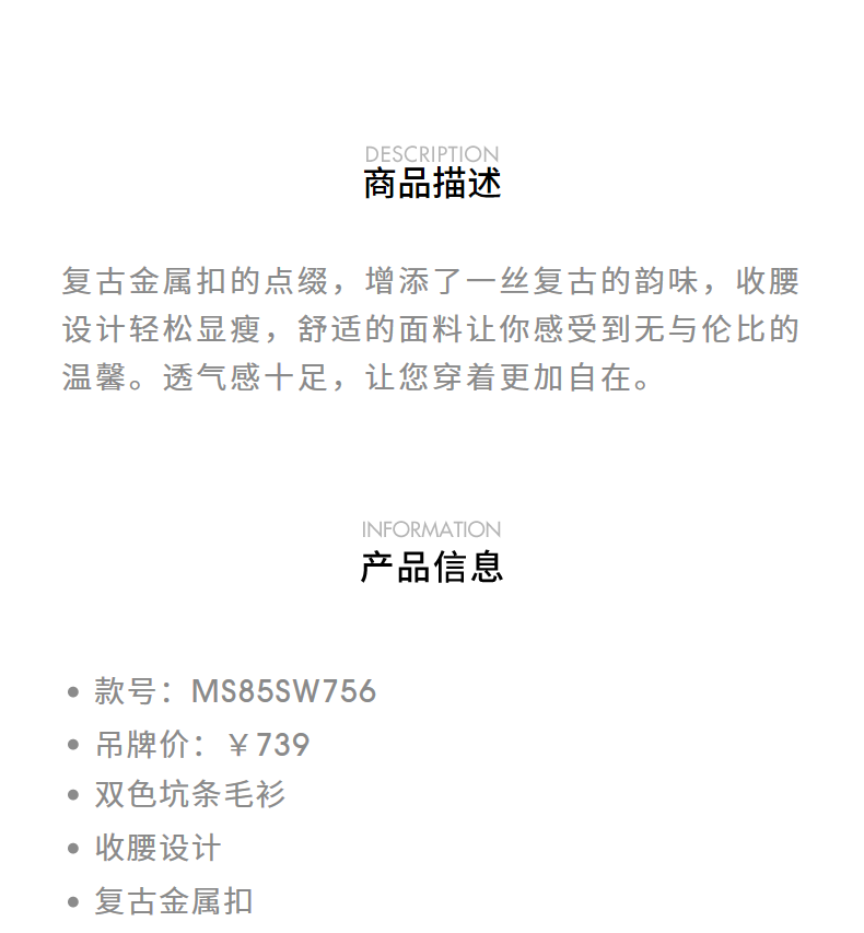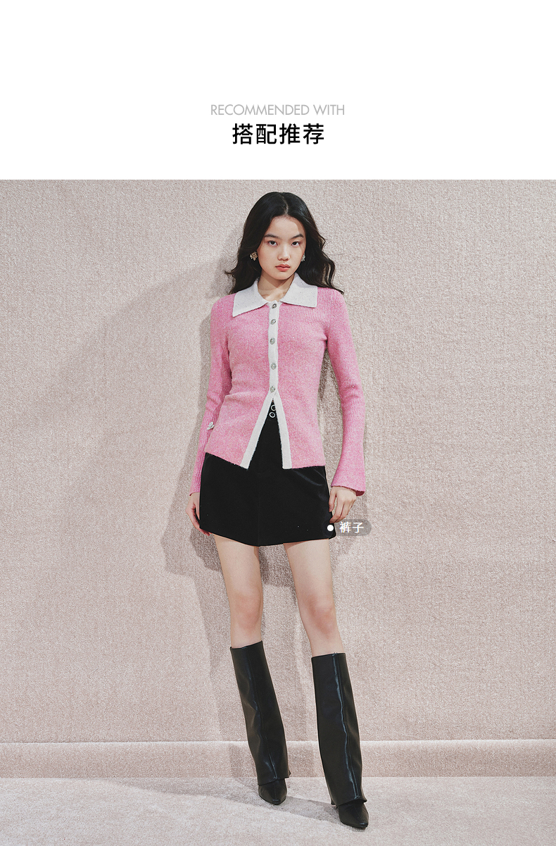 MAXRIENY优雅浪漫感翻领套头针织衫24冬收腰显瘦上衣高级气质感(货号:MS85SW756)