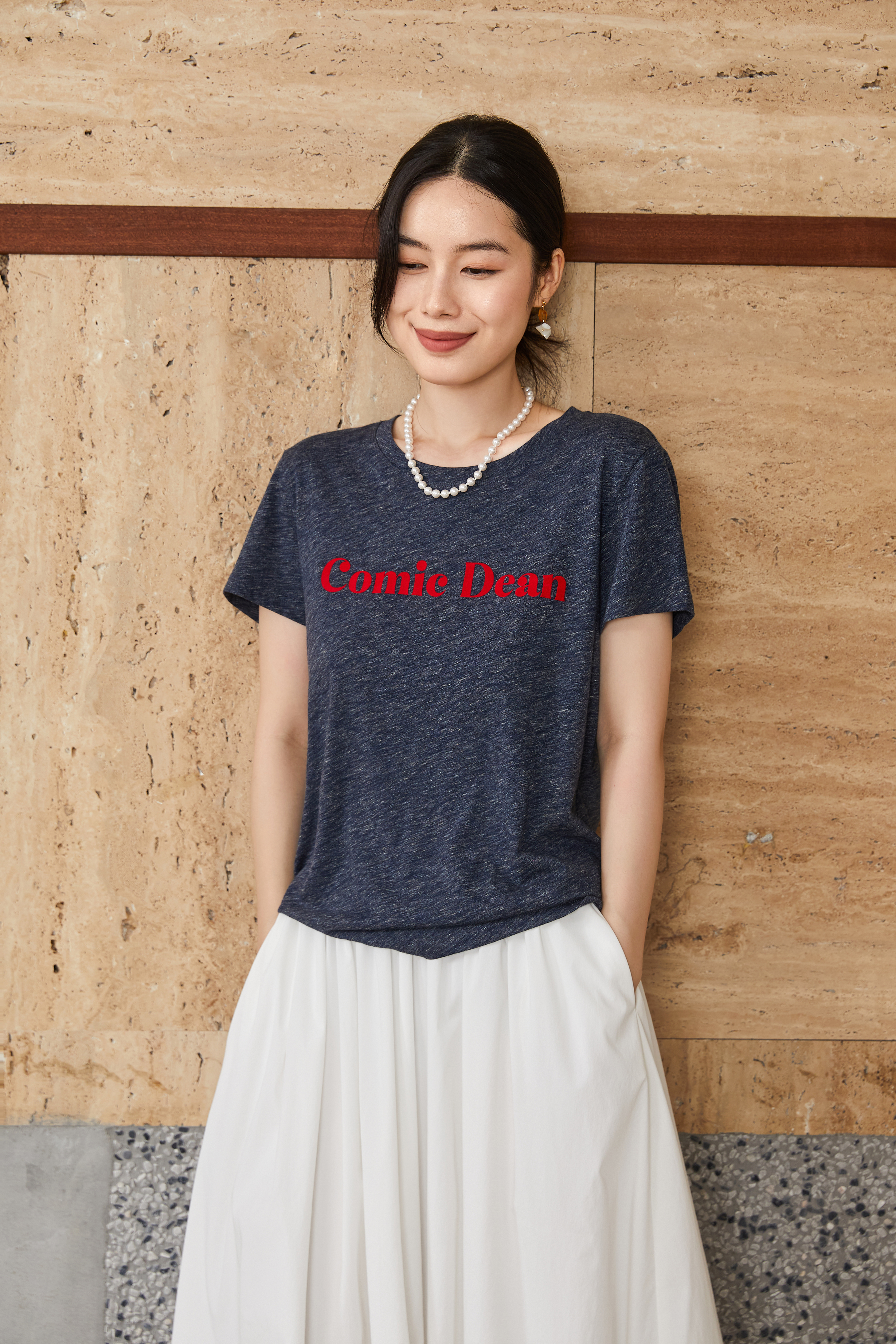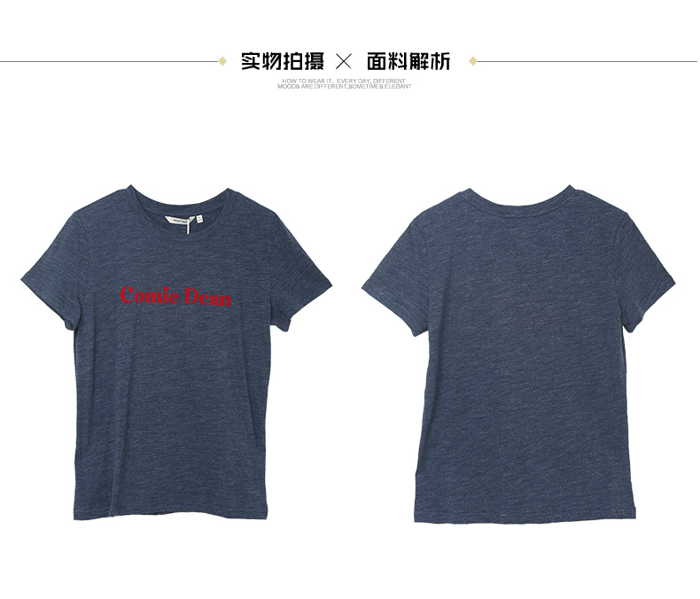 藏蓝色字母印花短袖 T 恤女 夏季简约圆领修身显瘦休闲百搭基础款上衣