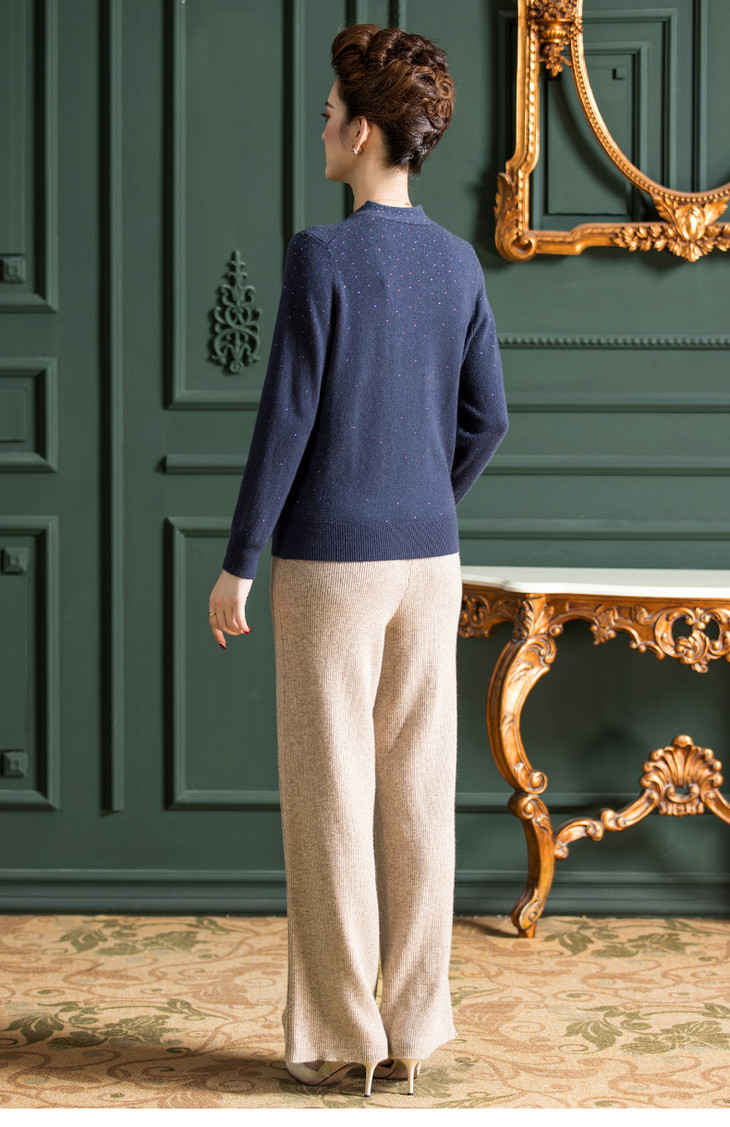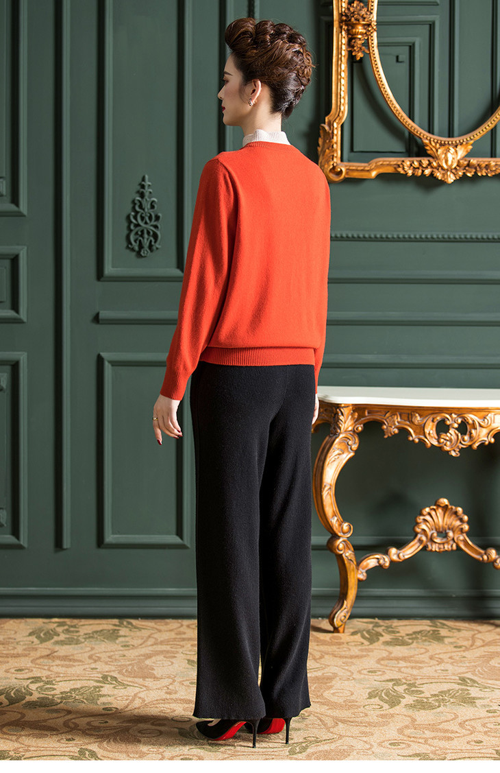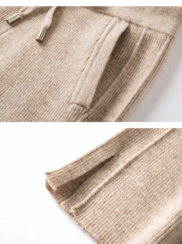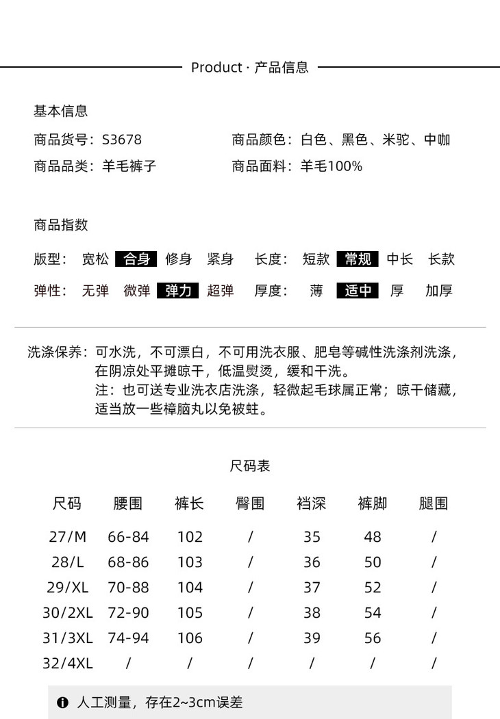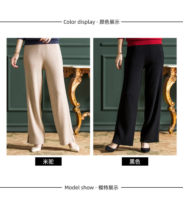 WW S3678羊毛阔腿裤宽松直筒弹力针织系带休闲裤