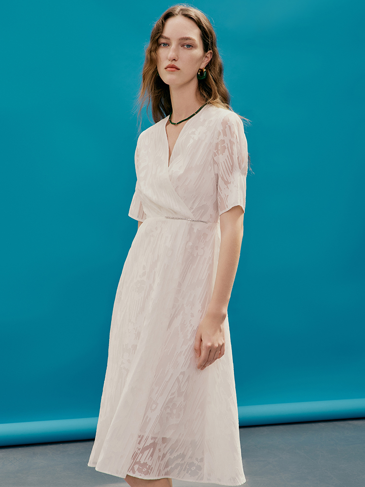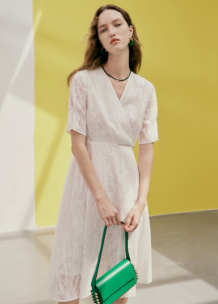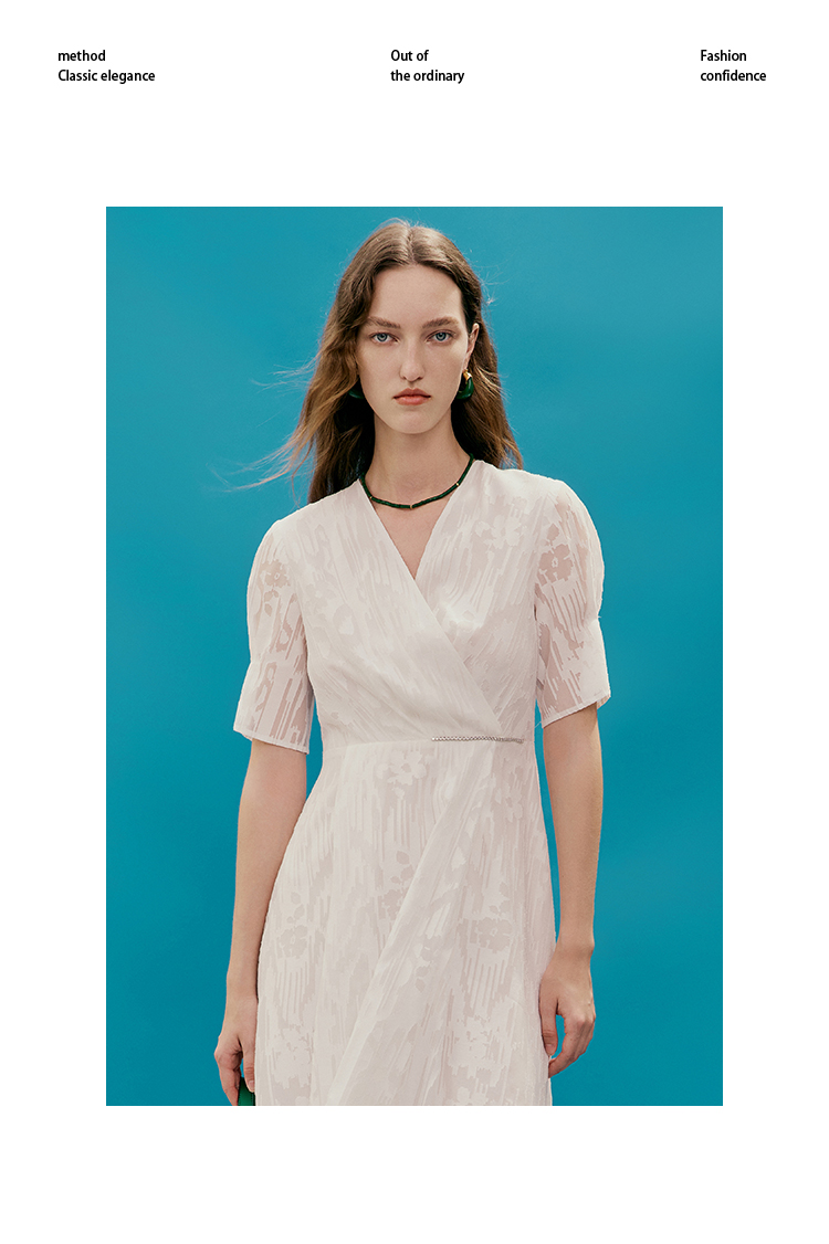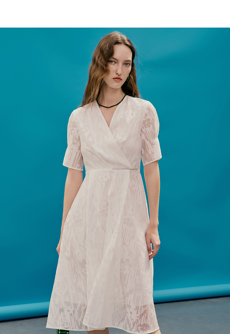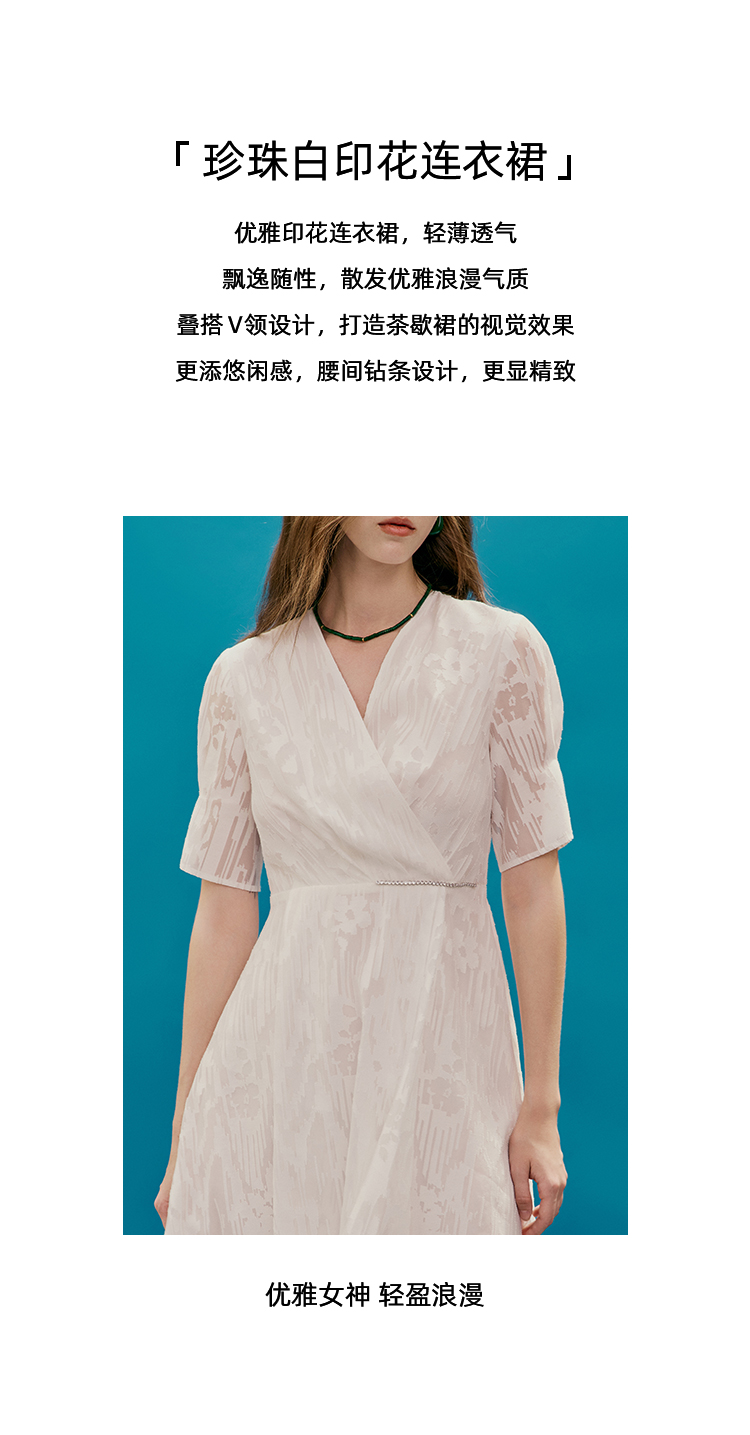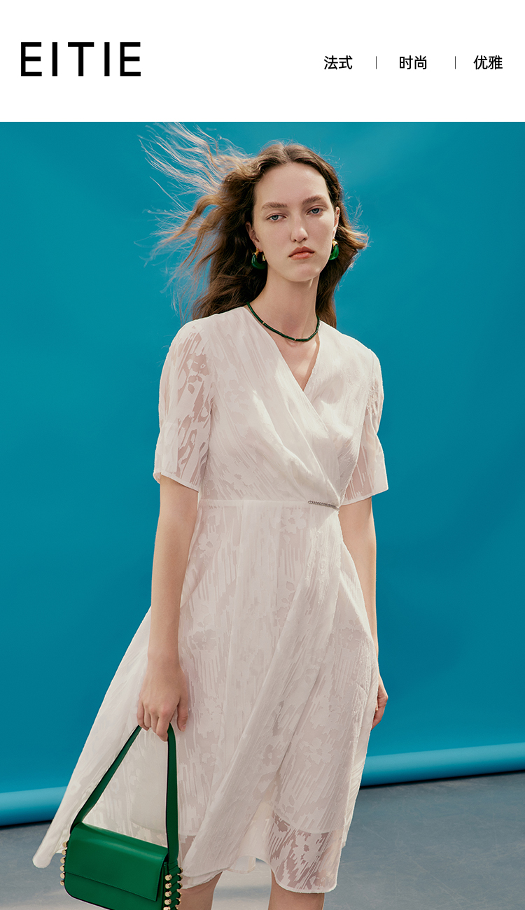 EITIE爱特爱夏季新款V领时尚气质显瘦连衣裙7407152