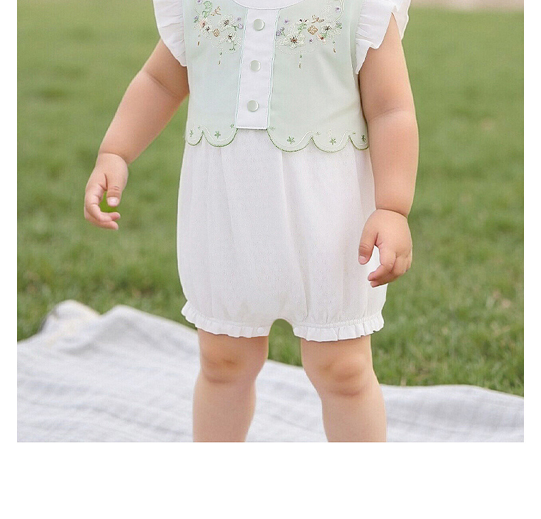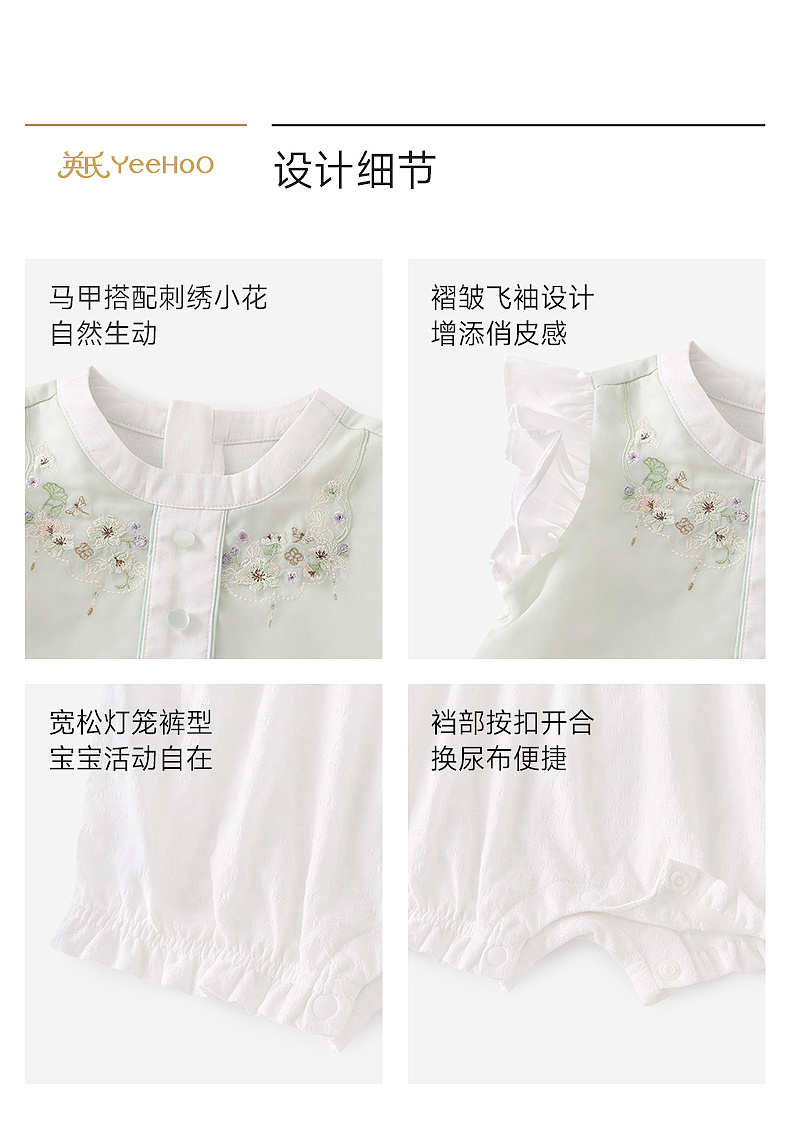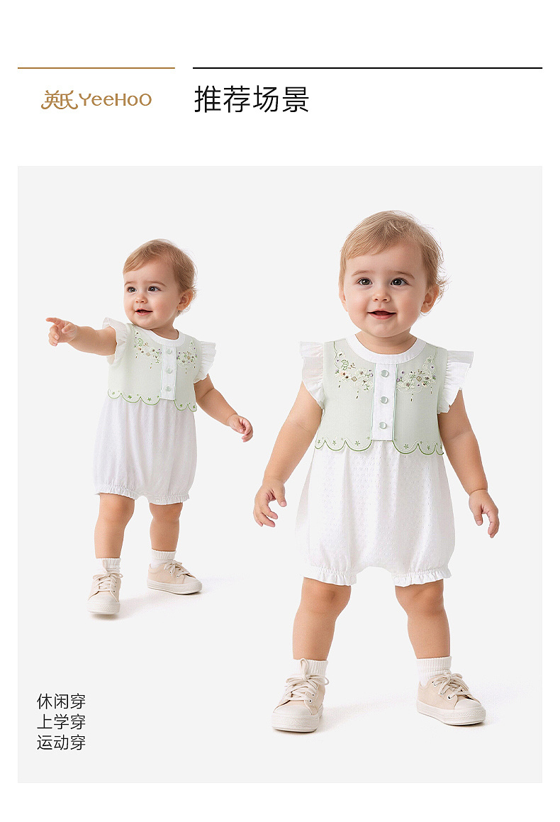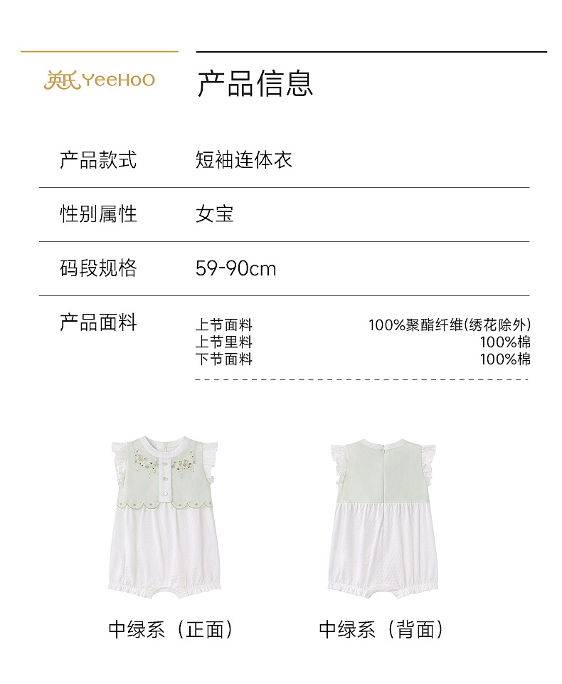 【商场同款】英氏夏季新款婴儿短袖透气哈衣女宝宝刺绣外出连体衣