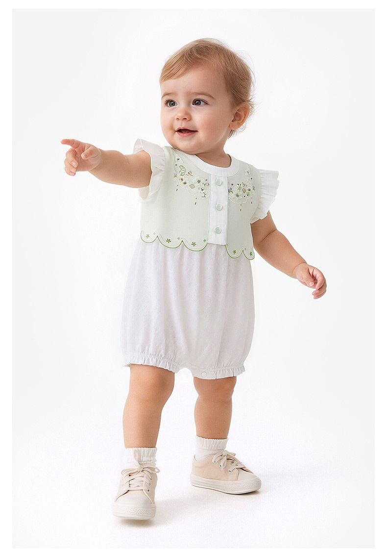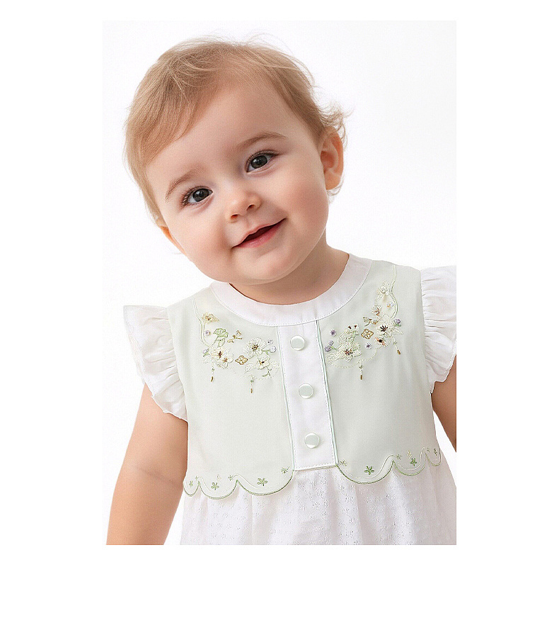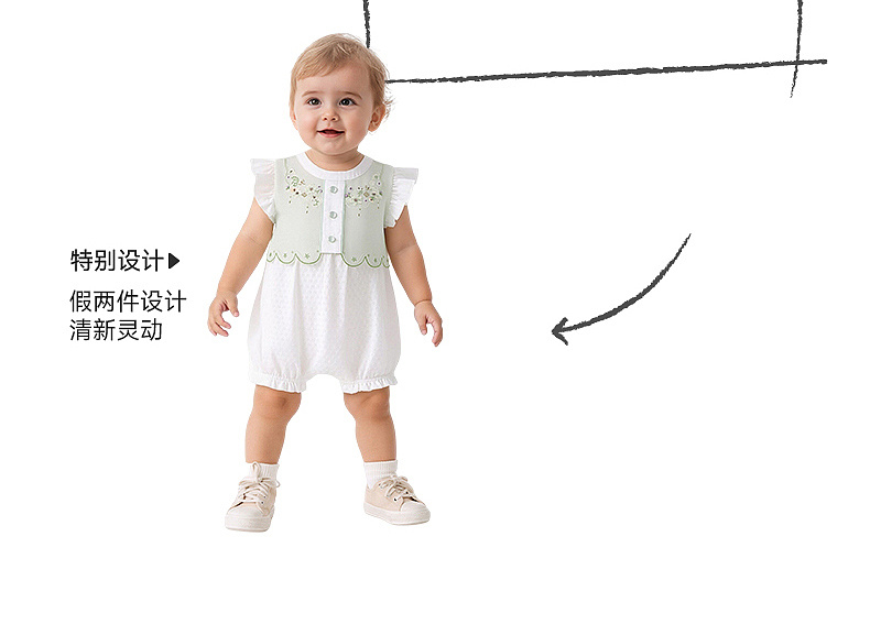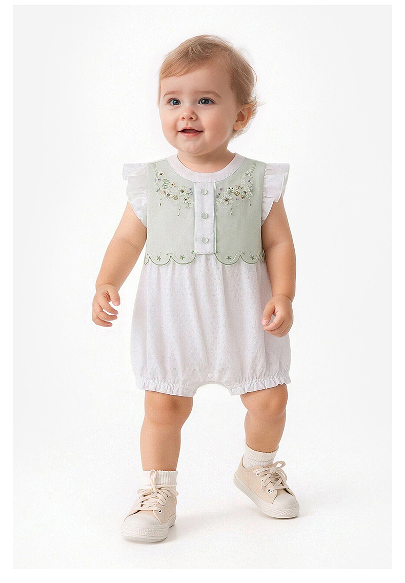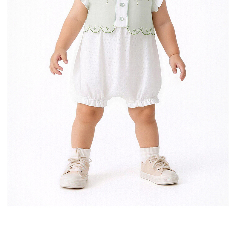 【商场同款】英氏夏季新款婴儿短袖透气哈衣女宝宝刺绣外出连体衣