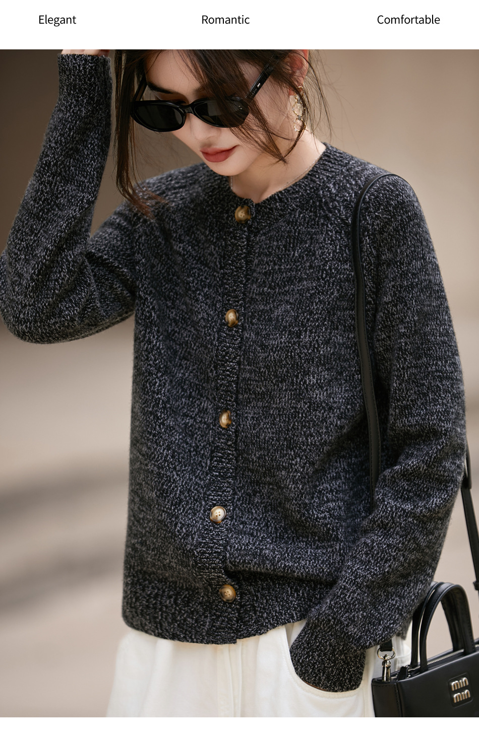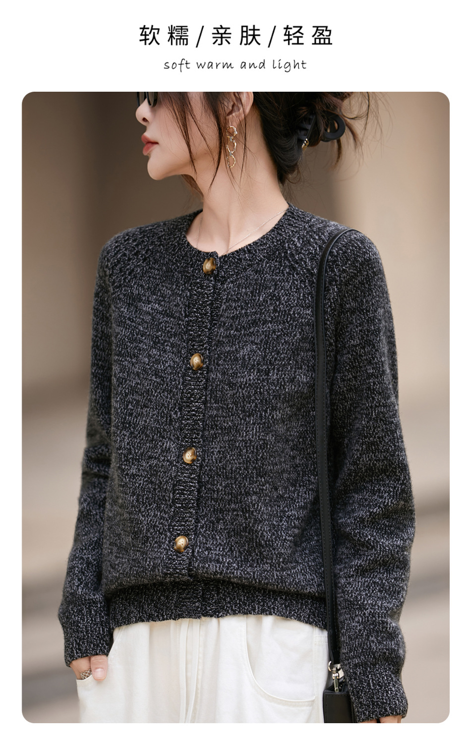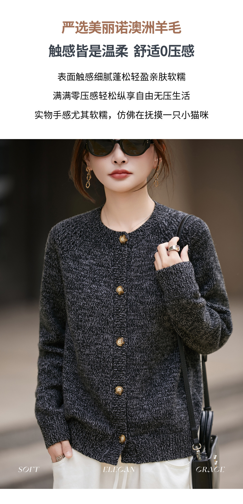 丁摩 法式花纱100%纯羊毛针织开衫JJ-158