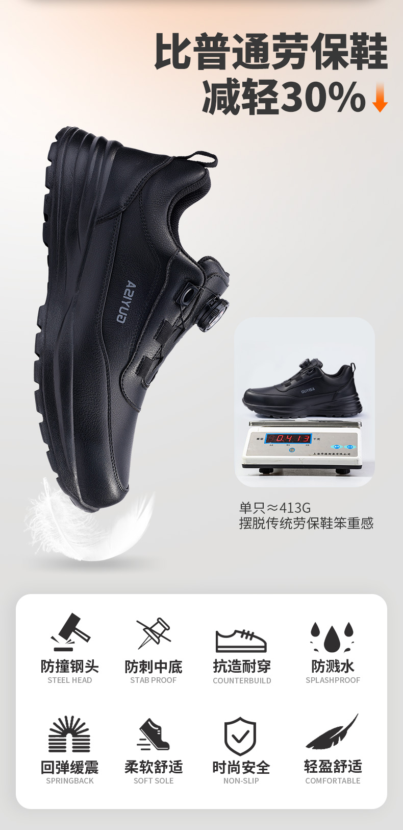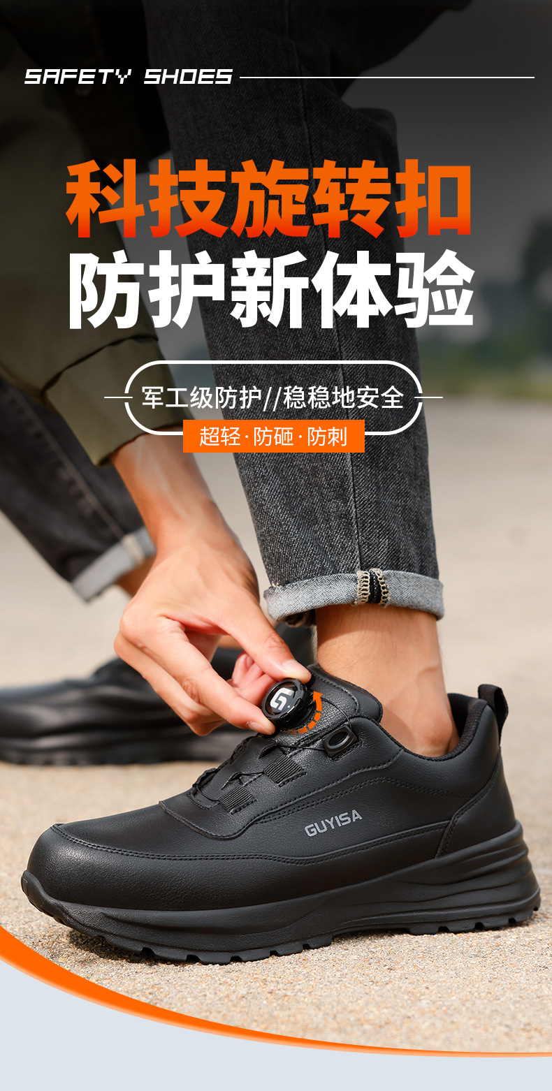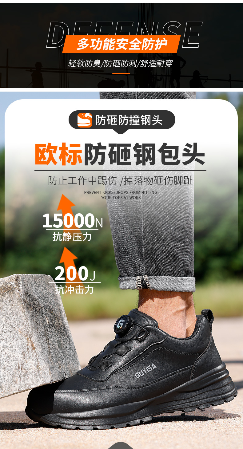 劳保鞋男防砸防刺防水四季款黑色超纤钢包头安全鞋防护