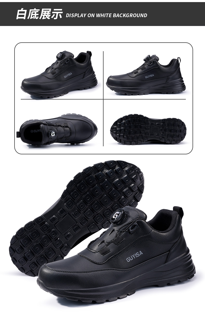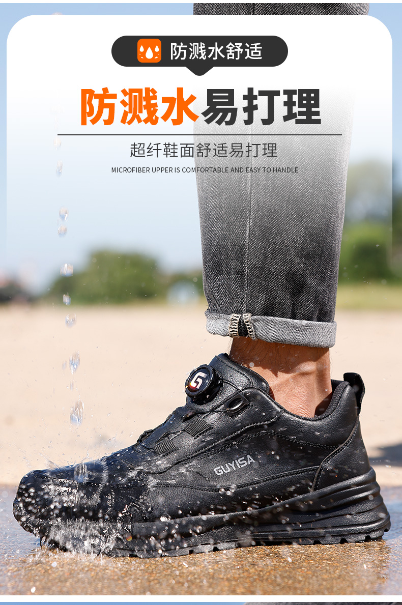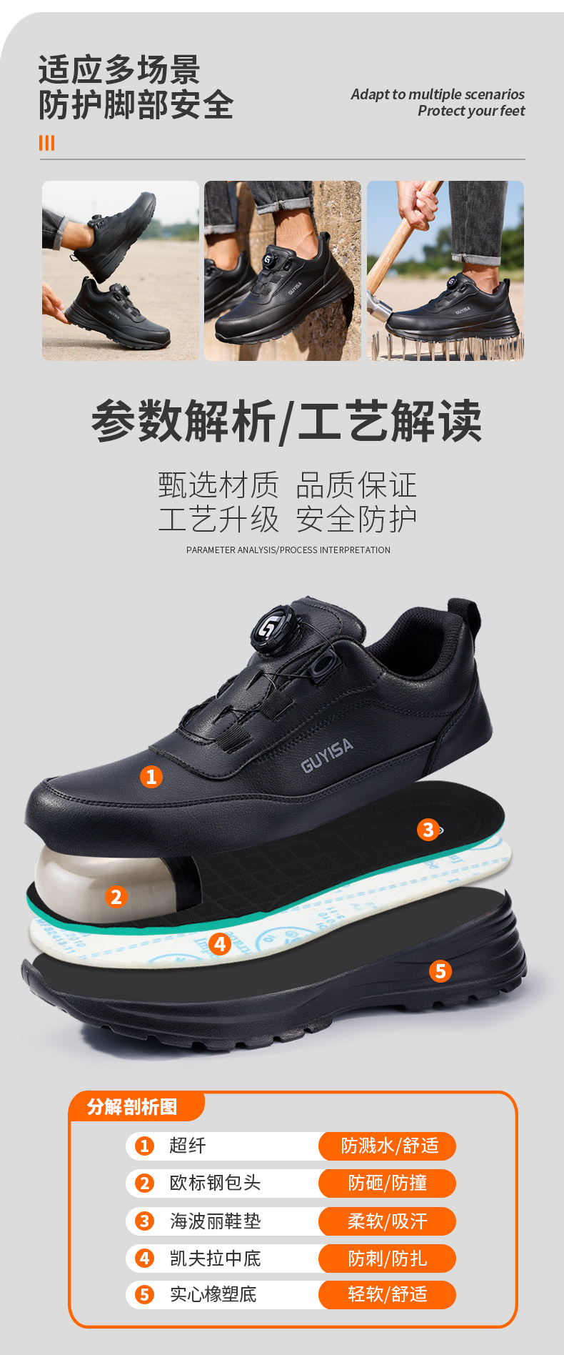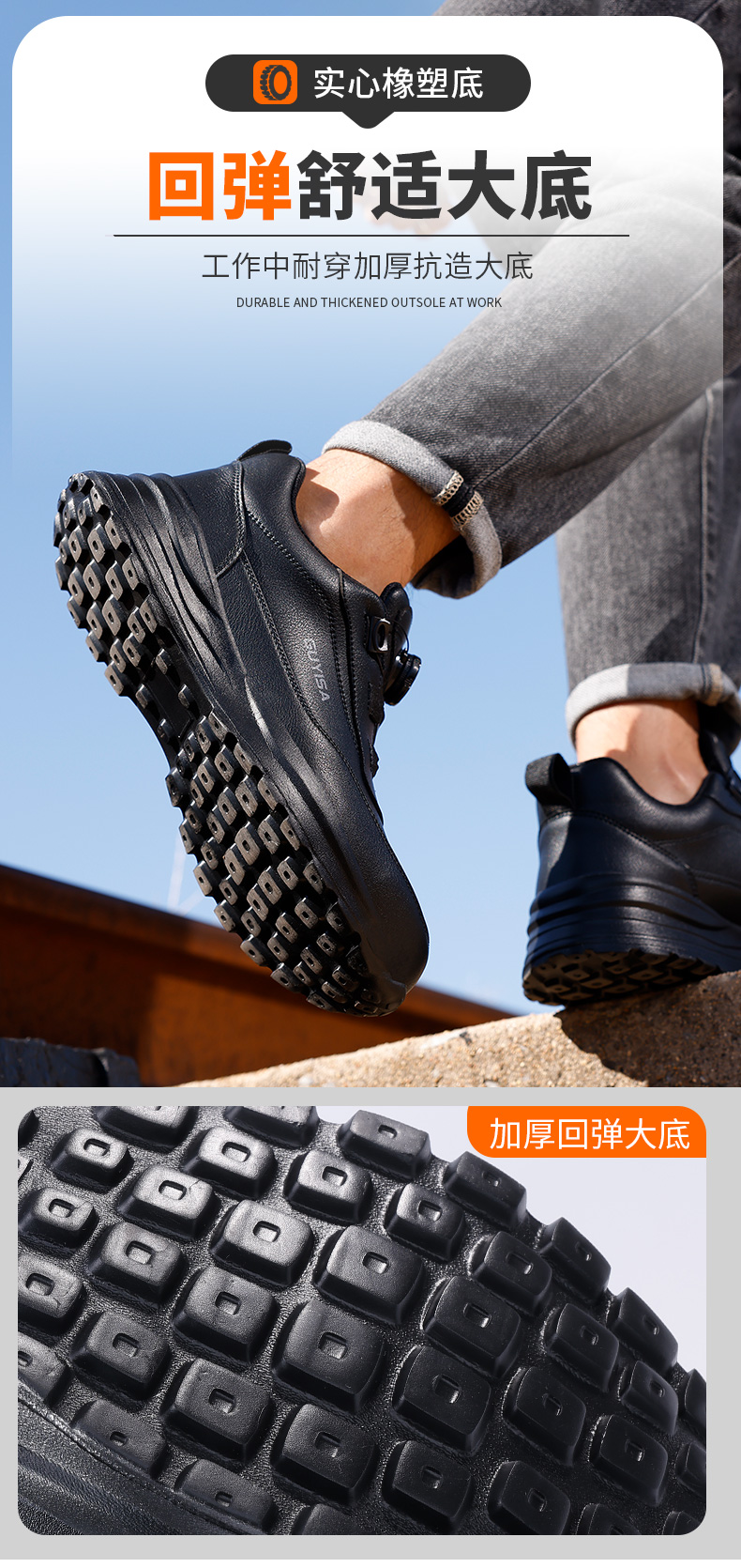 劳保鞋男防砸防刺防水四季款黑色超纤钢包头安全鞋防护