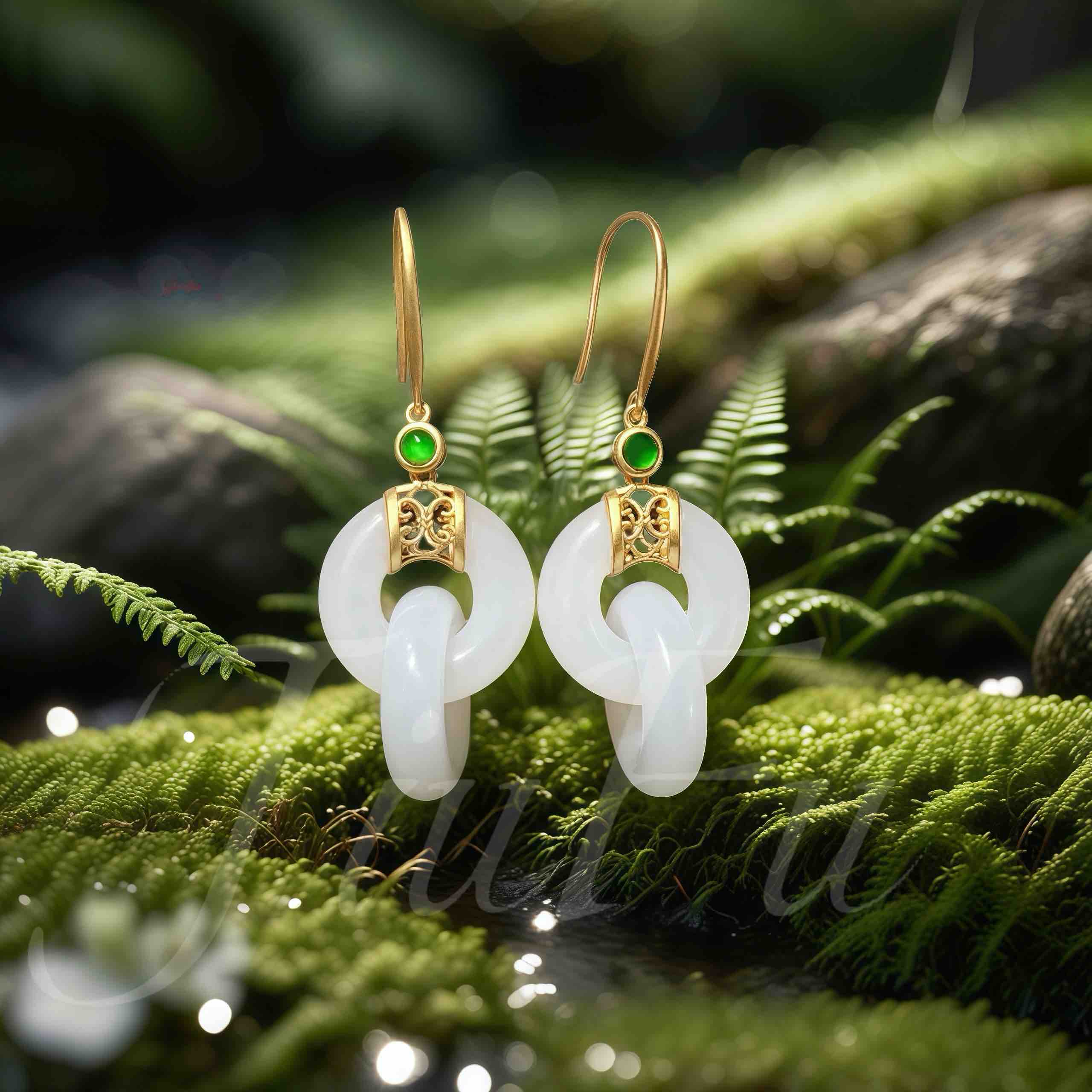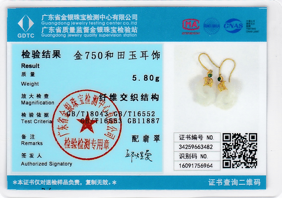 18K古法黄金和田玉(白玉)耳饰