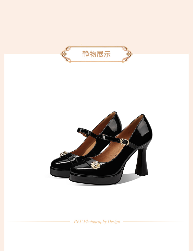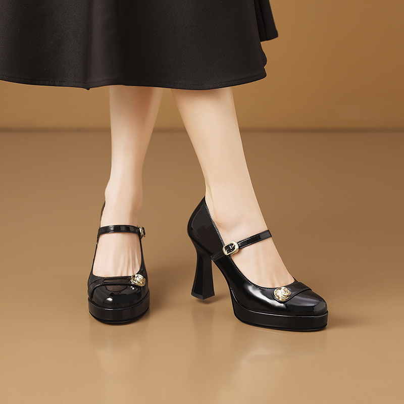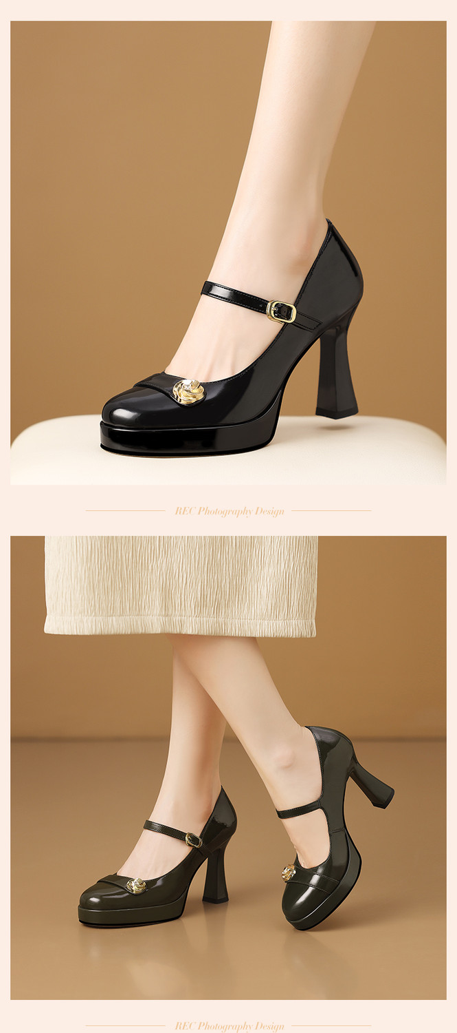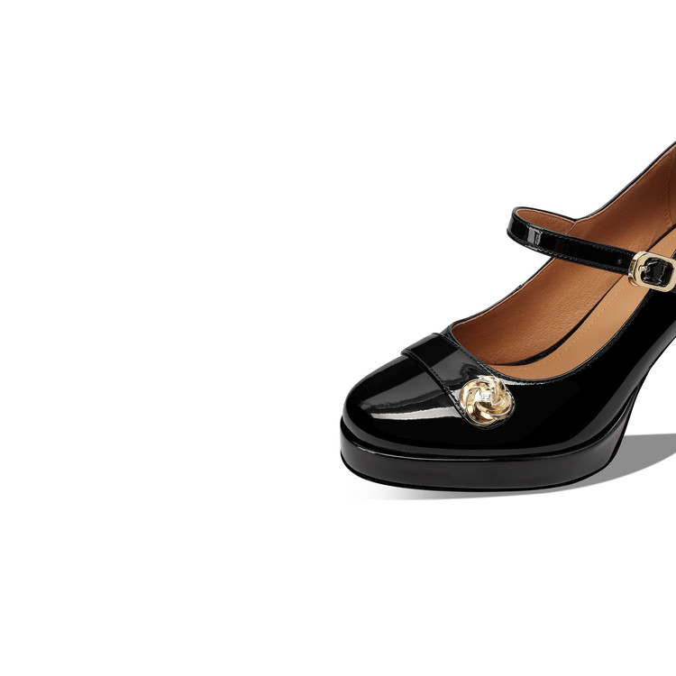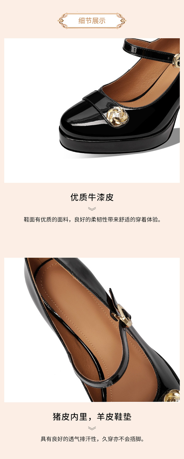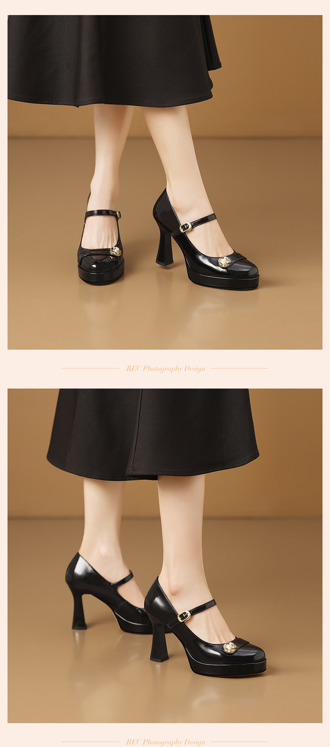 【预售5天】小个子防水台高跟鞋女粗跟新款圆头不累脚漆皮一字带玛丽珍单鞋子HY&H3705