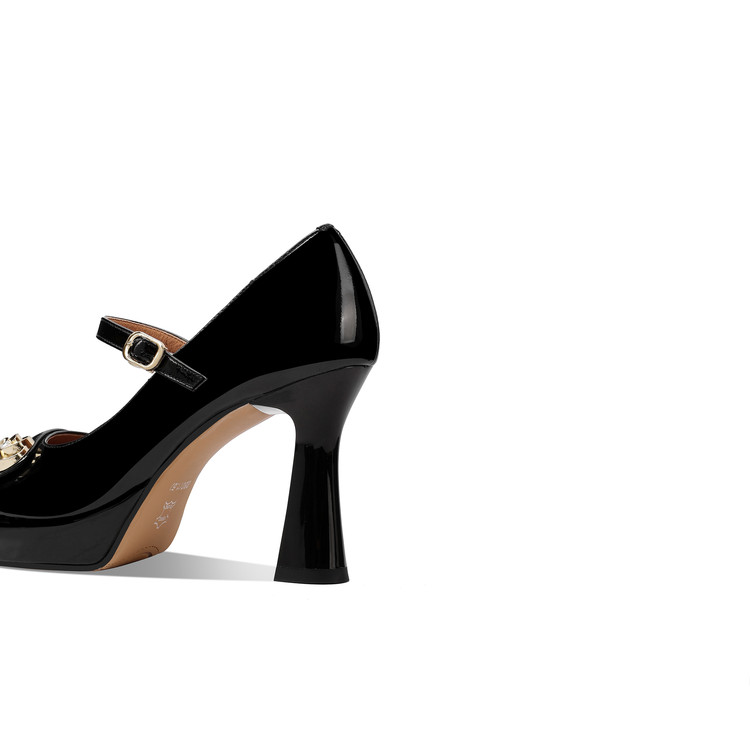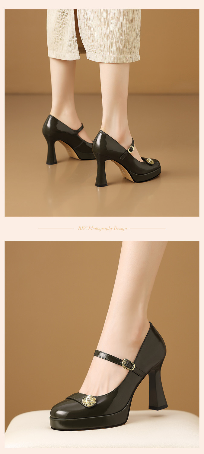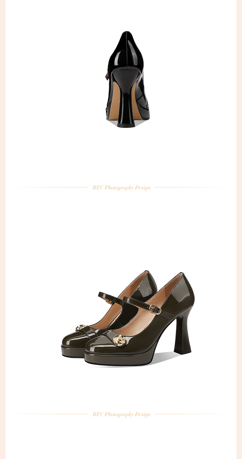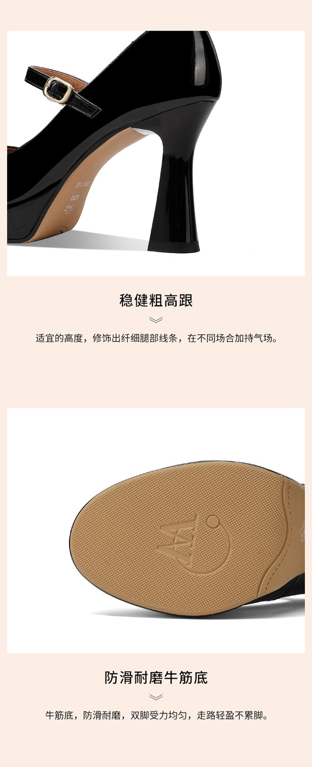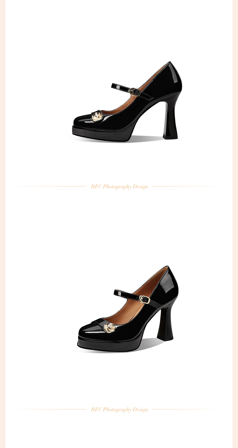 【预售5天】小个子防水台高跟鞋女粗跟新款圆头不累脚漆皮一字带玛丽珍单鞋子HY&H3705