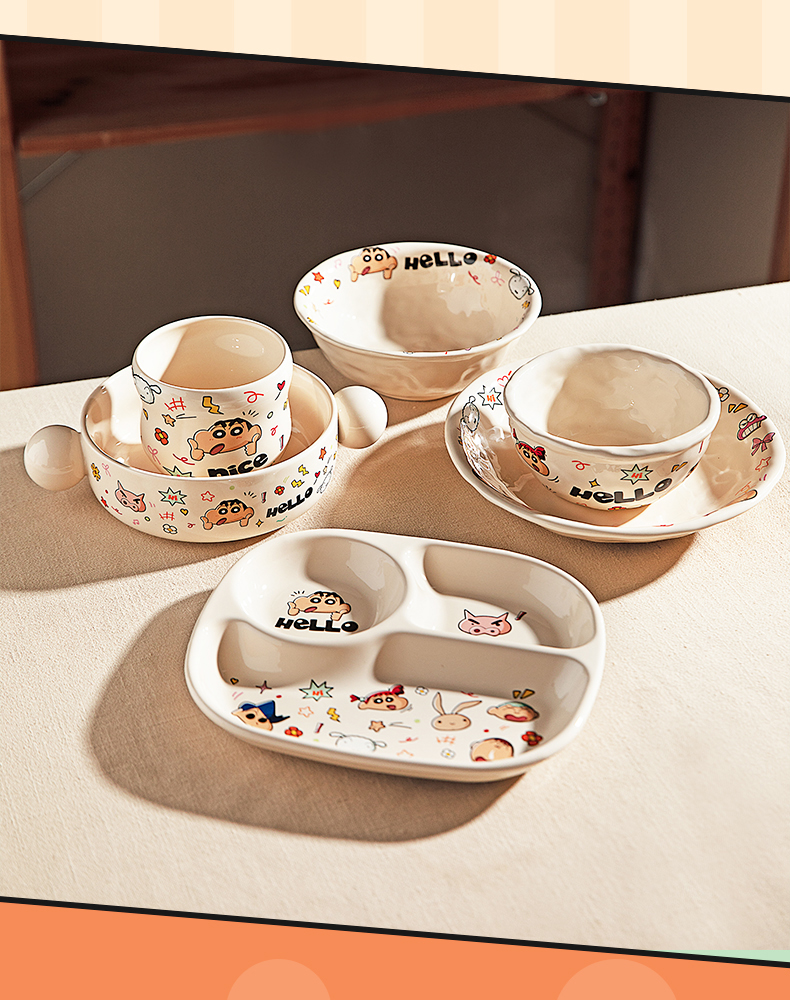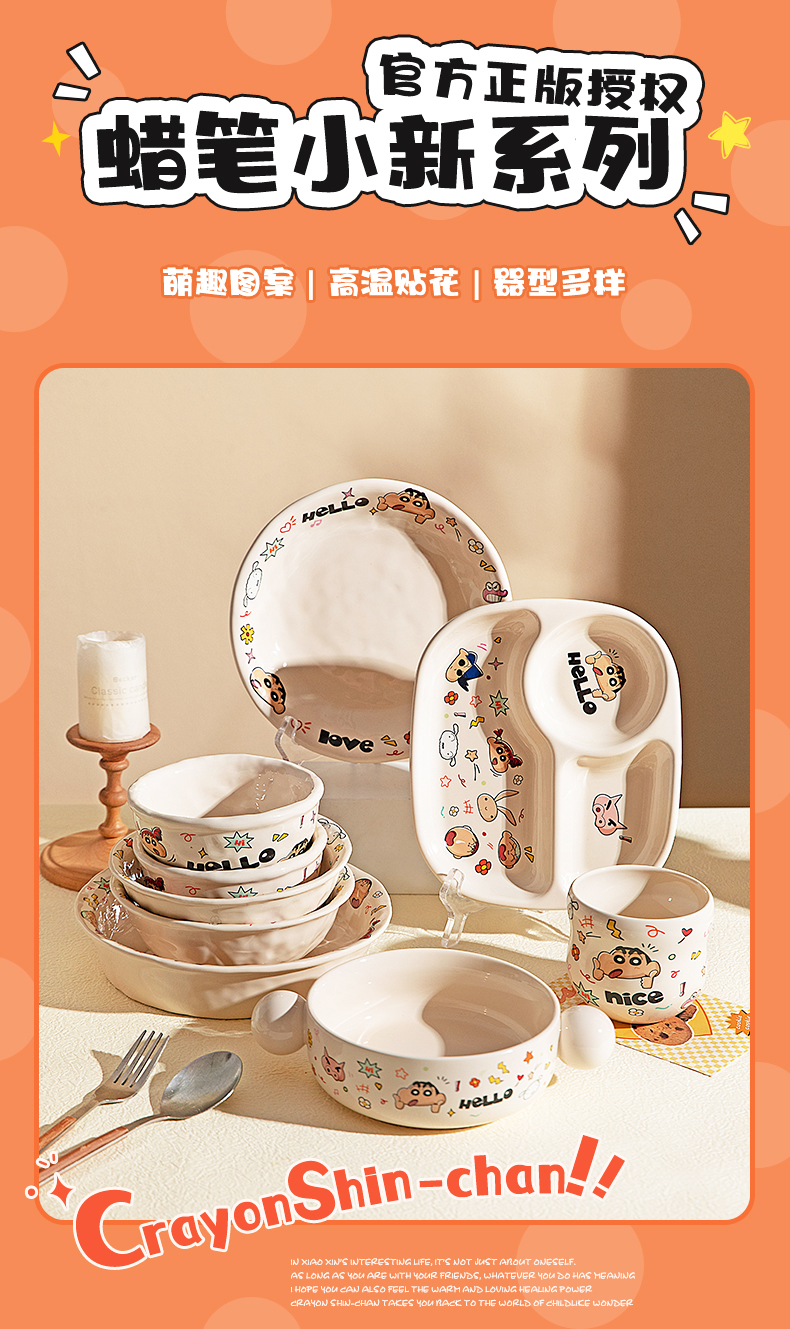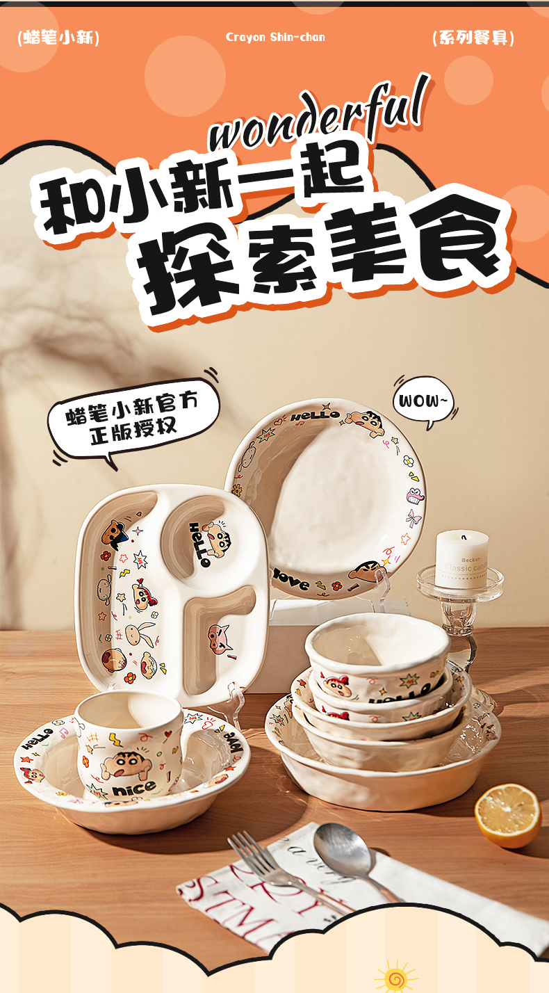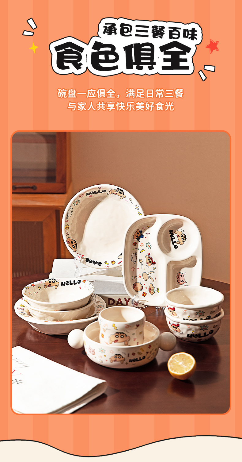 摩登主妇&蜡笔小新 分格餐盘大人可爱餐具家用饭碗具早餐盘子
