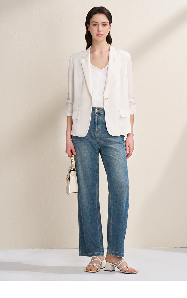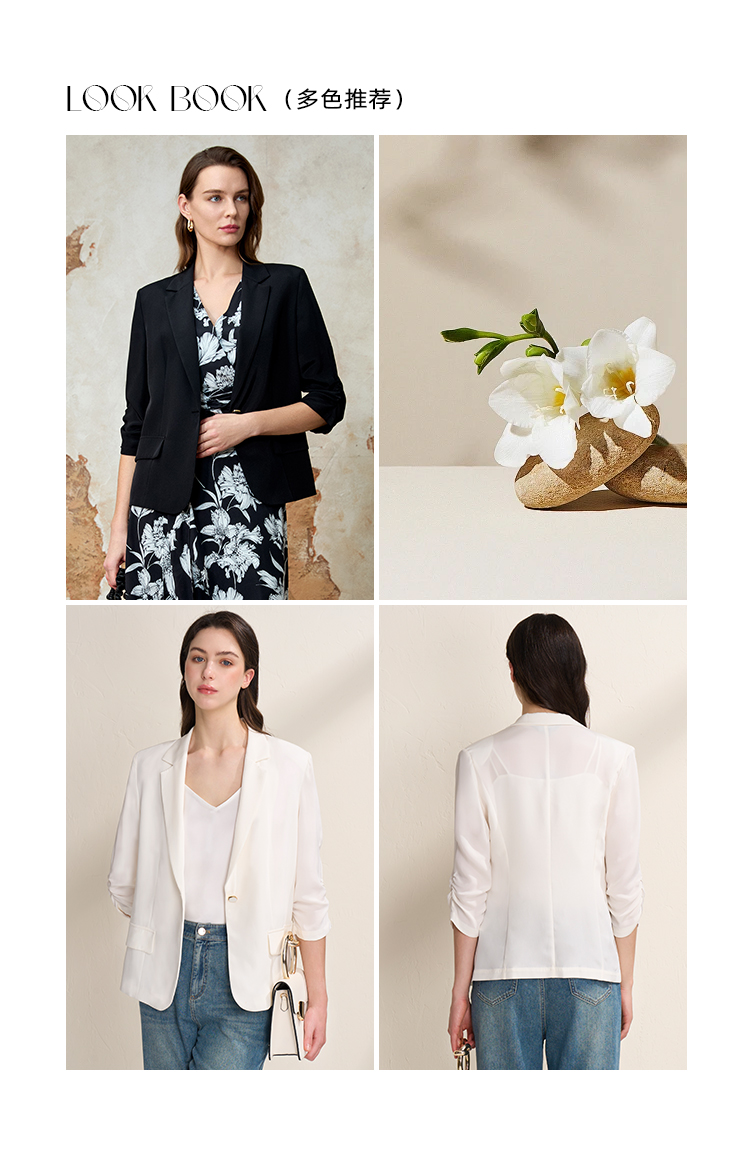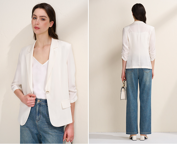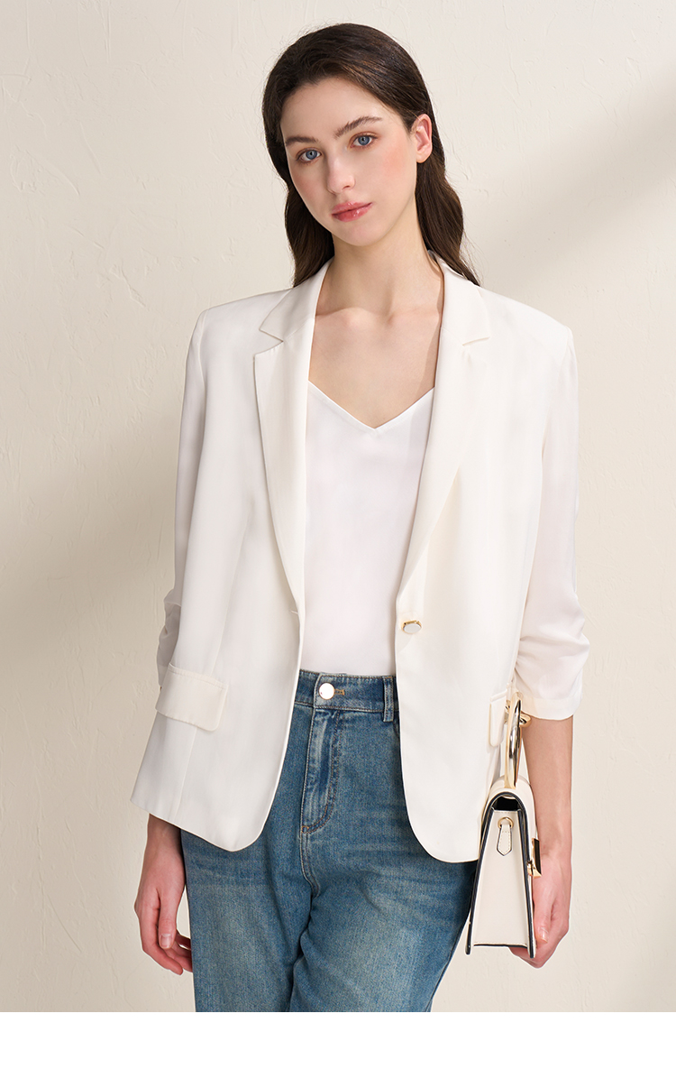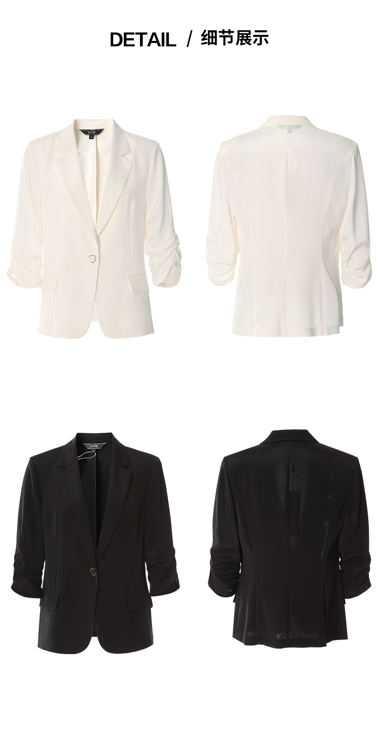 EITIE爱特爱夏新款气质干练通勤抽褶七分袖修身西装外套7803510