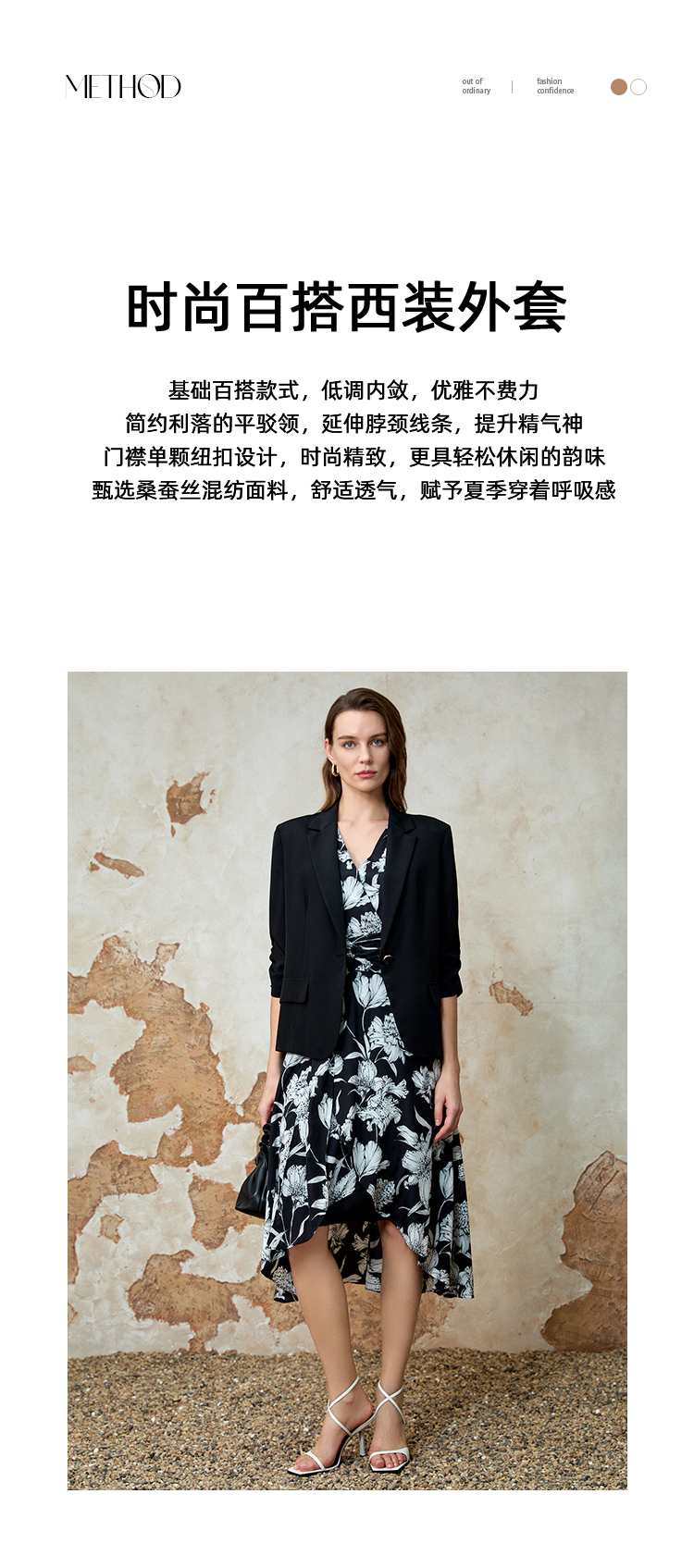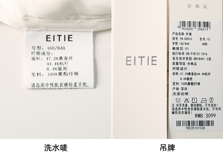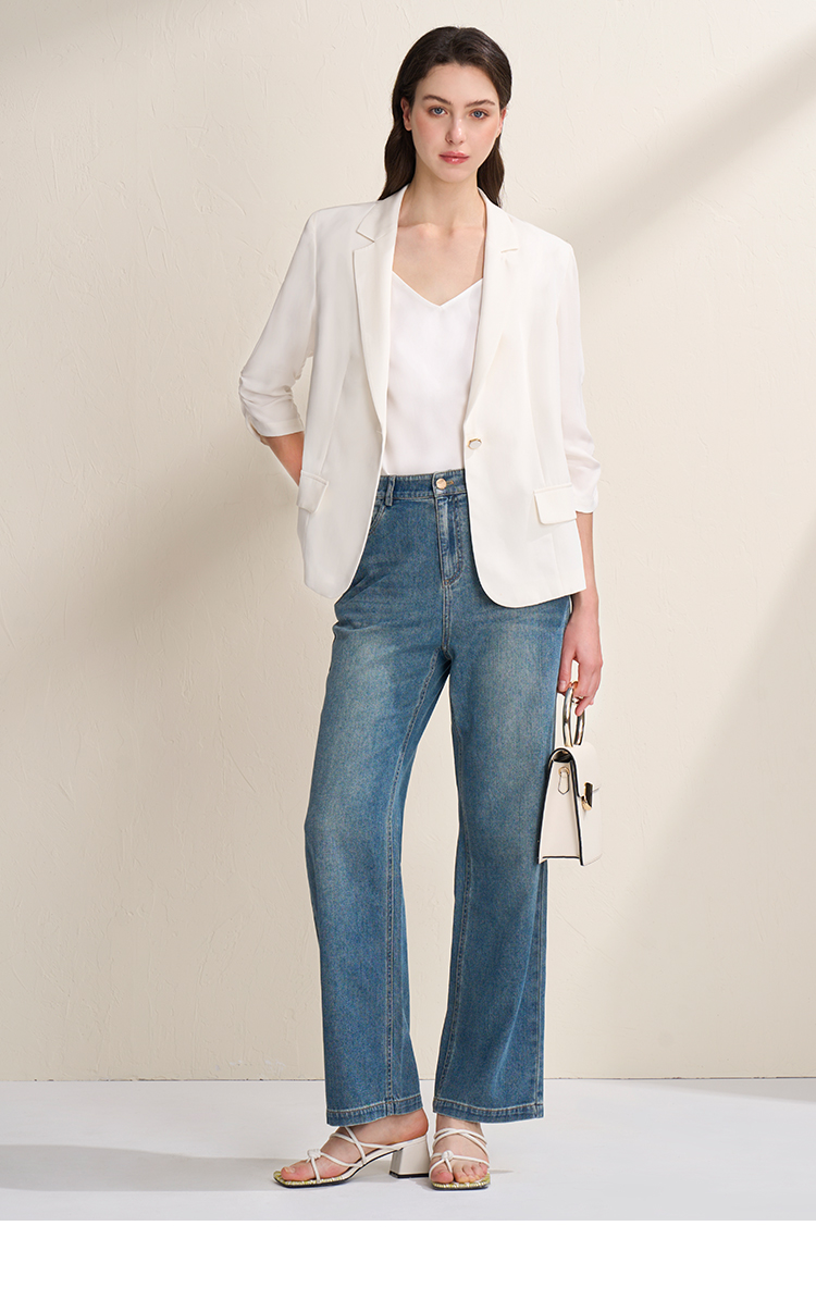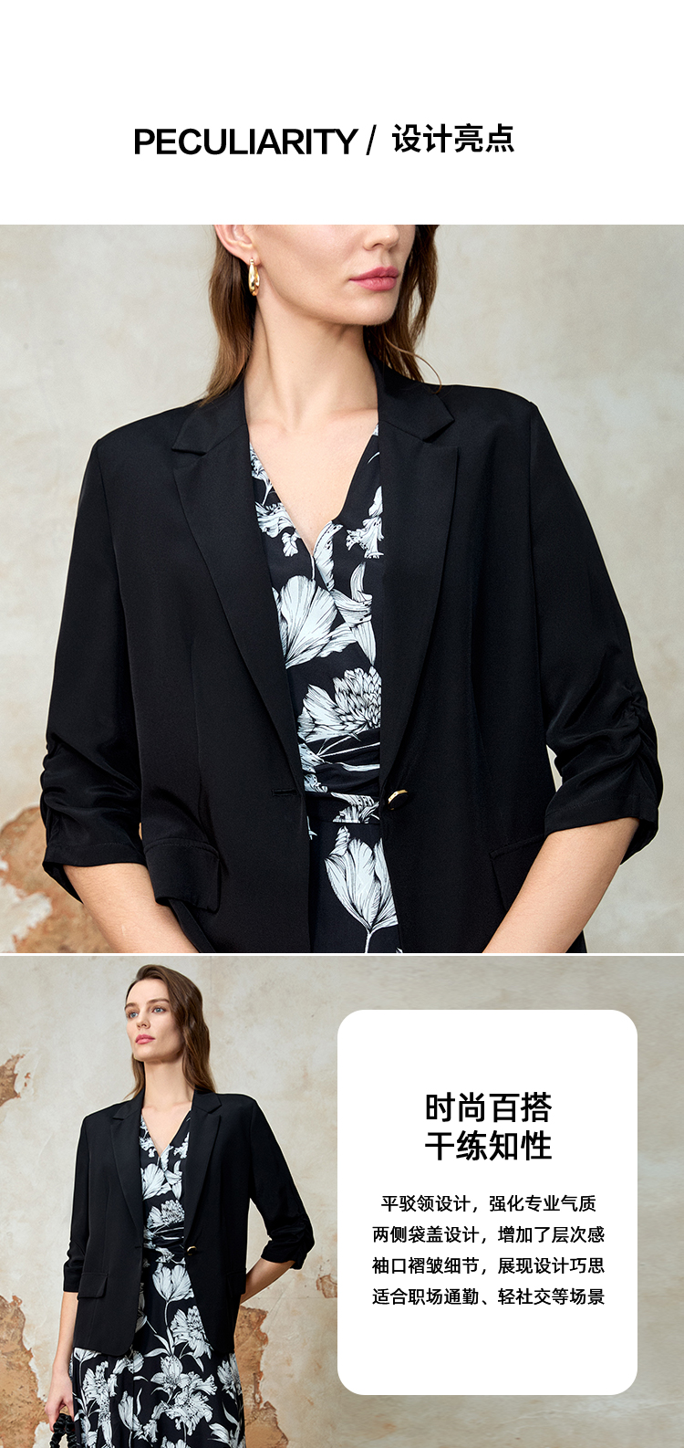 EITIE爱特爱夏新款气质干练通勤抽褶七分袖修身西装外套7803510