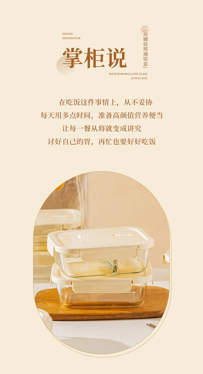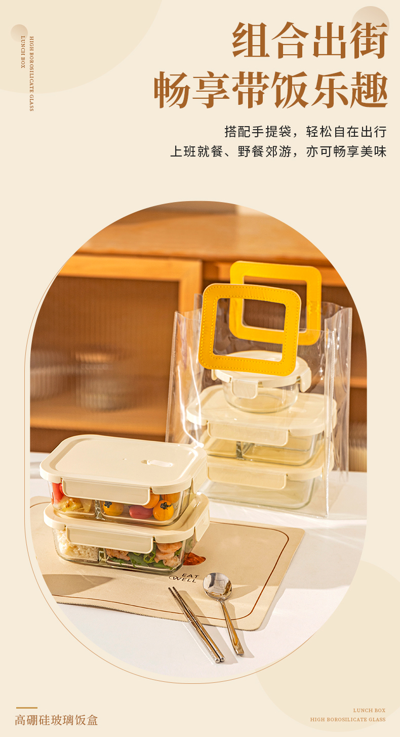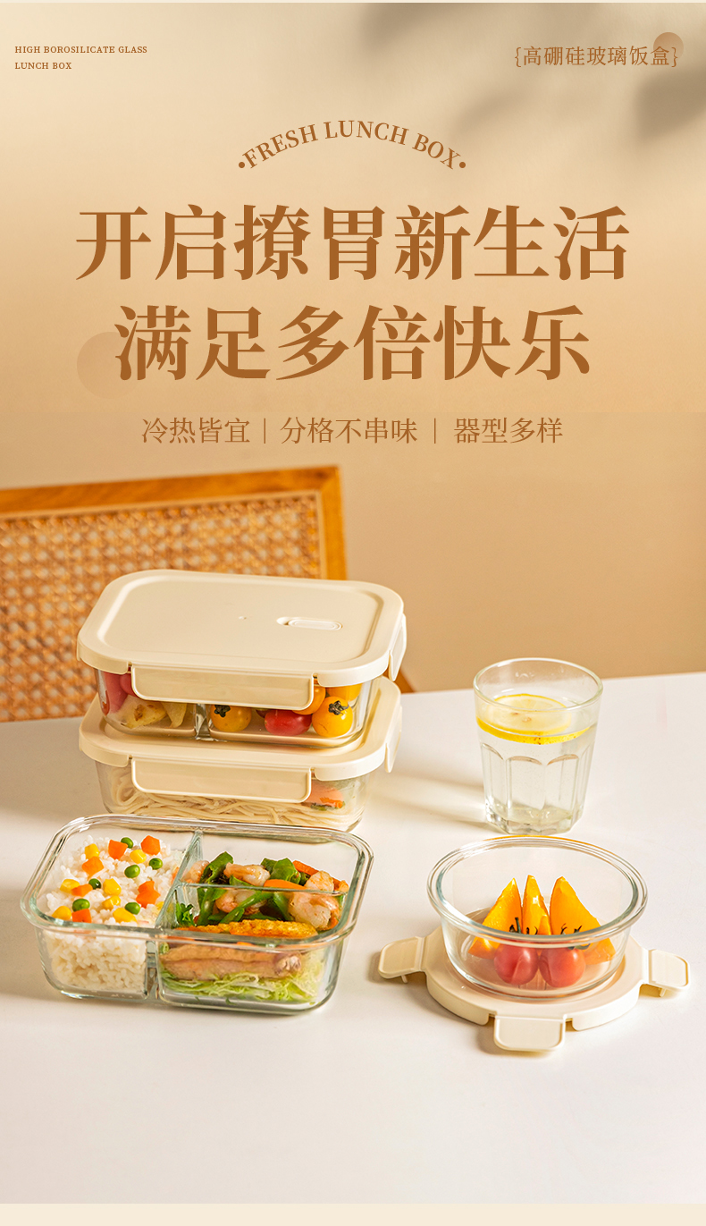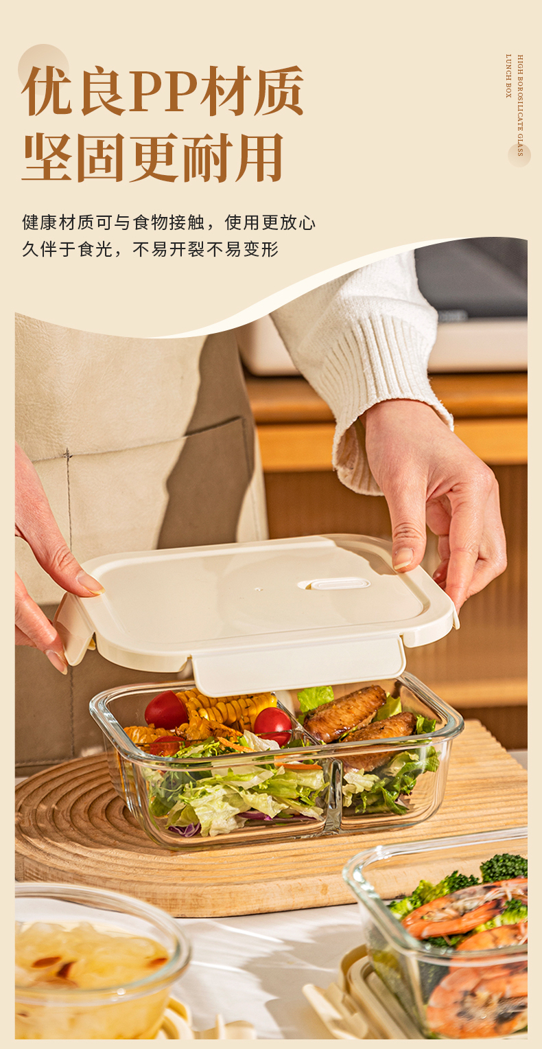 摩登主妇玻璃饭盒微波炉加热便当盒分格饭盒上班族带饭餐盒保鲜盒