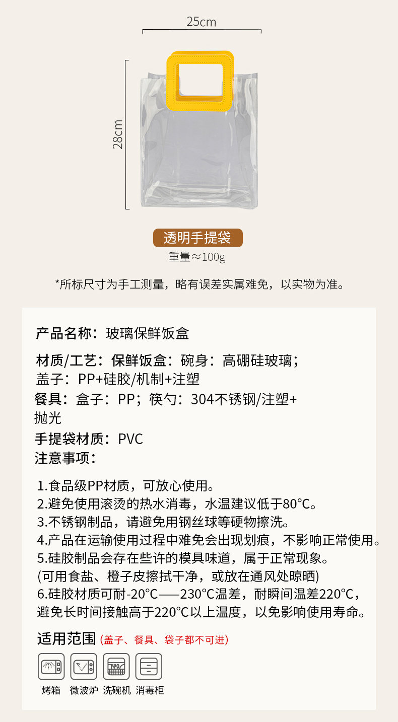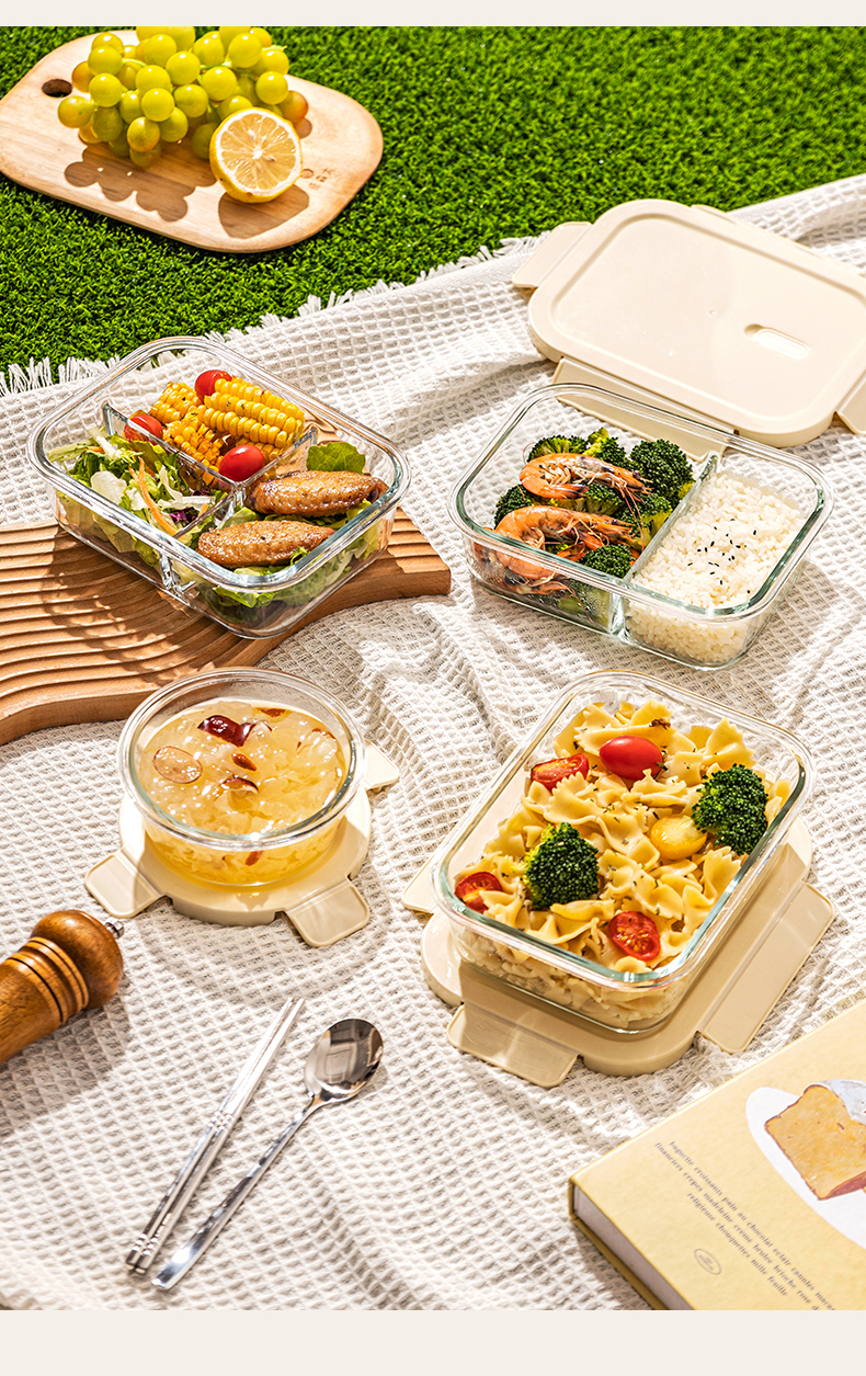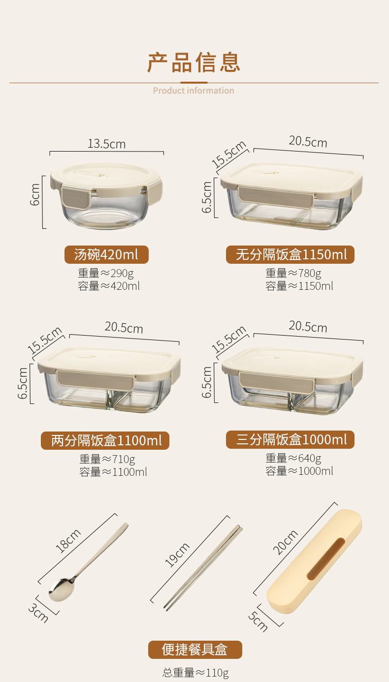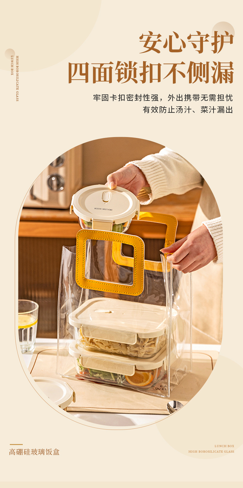 摩登主妇玻璃饭盒微波炉加热便当盒分格饭盒上班族带饭餐盒保鲜盒