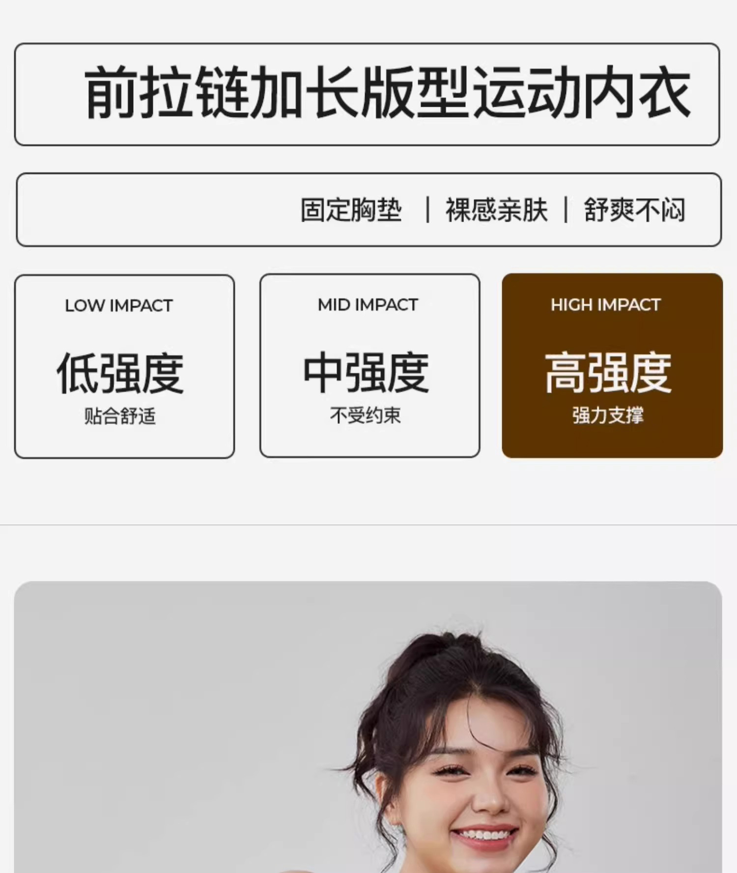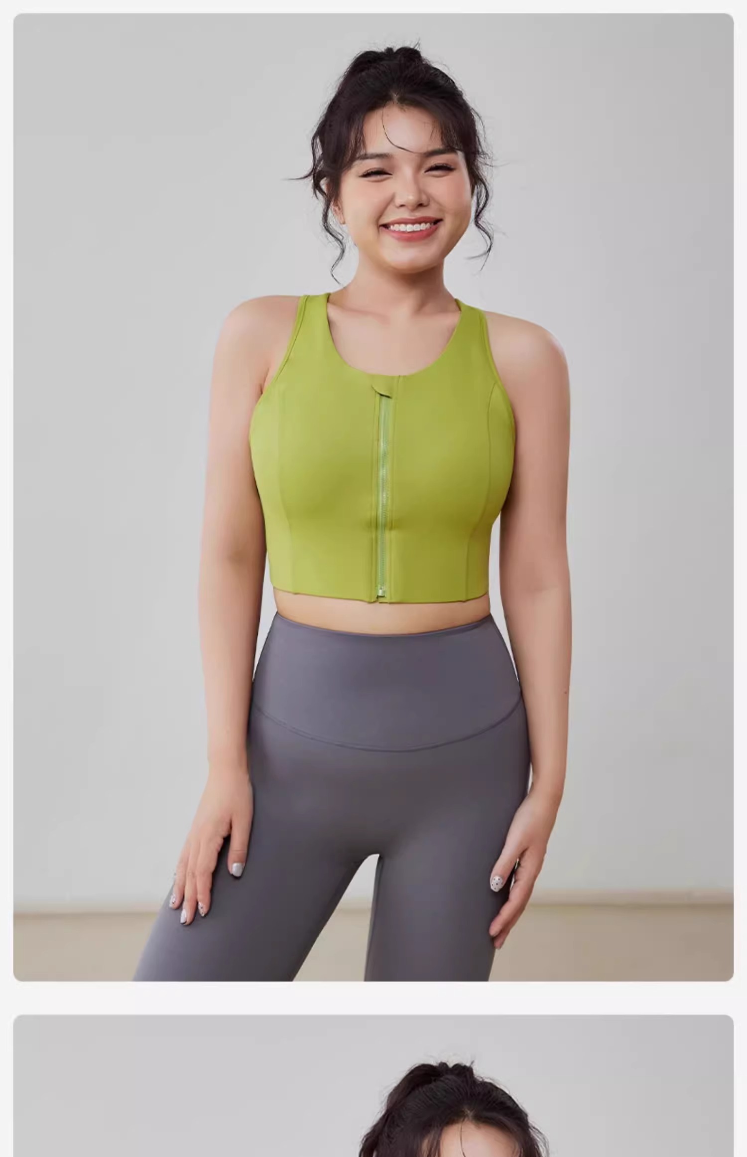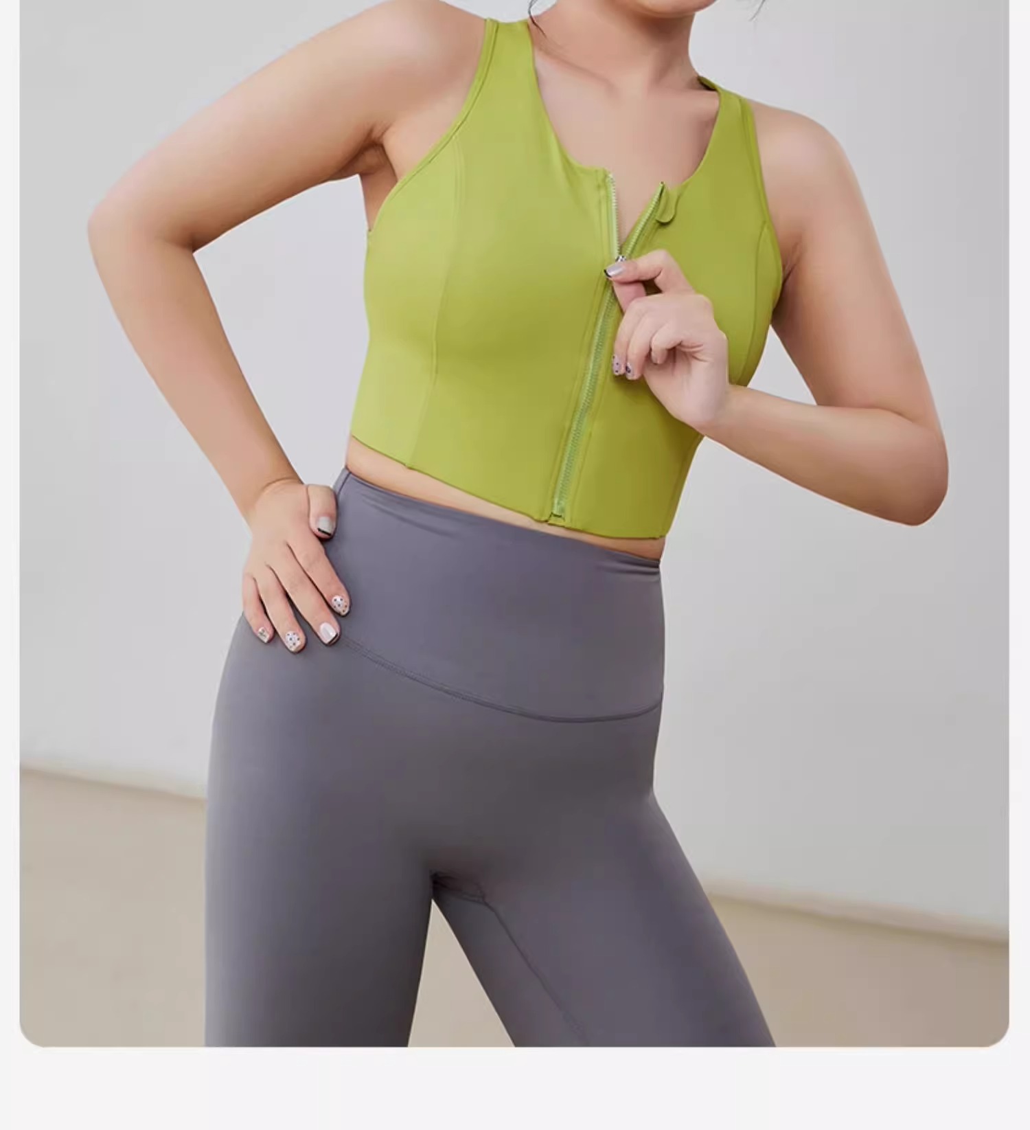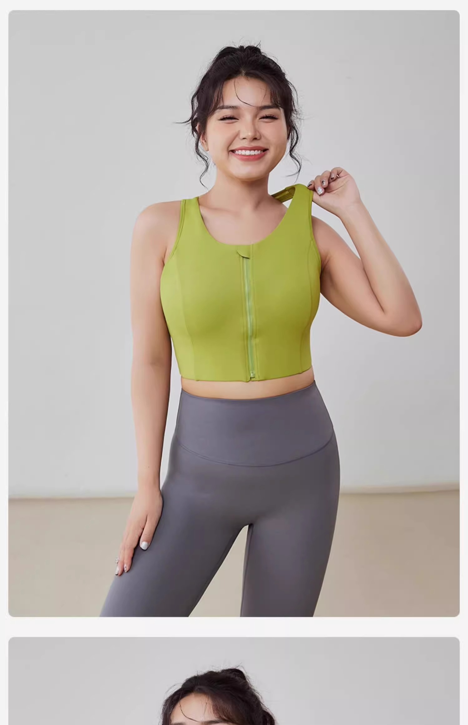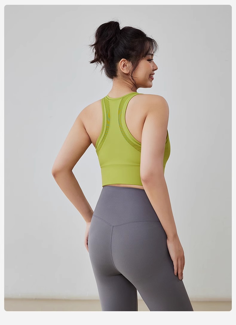 跃牌(呗咪纷纷系列)大码前拉链防震运动内衣固定胸垫美背透气瑜伽背心WX2315-1