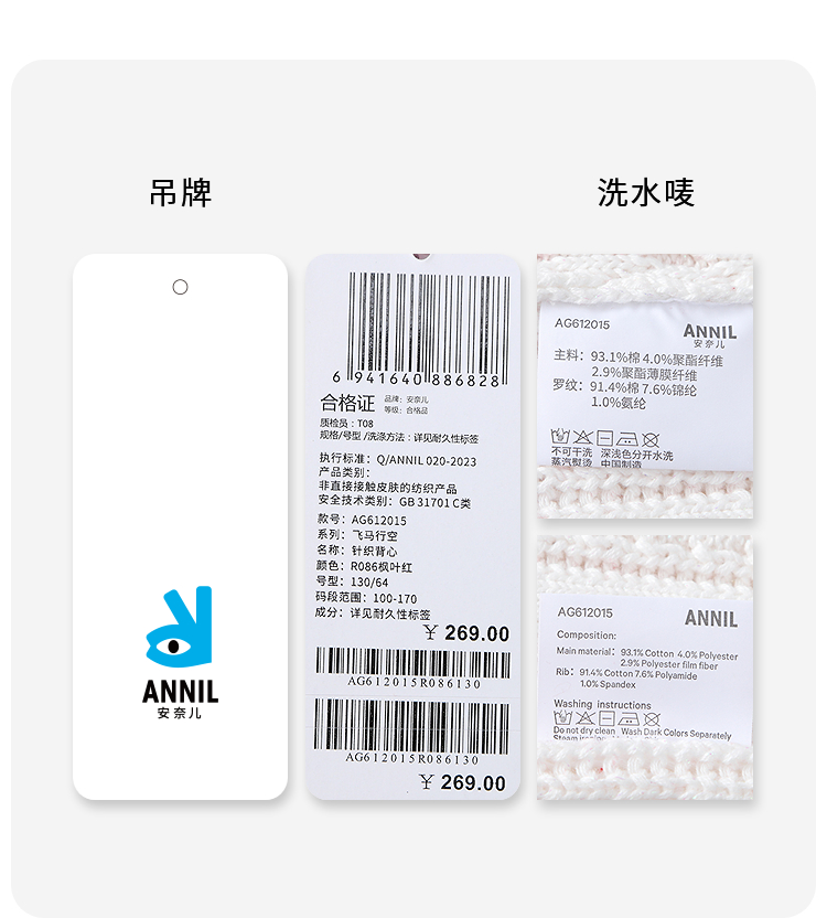 【实体店同款】女童针织背心春季新款安奈儿童装AG612015