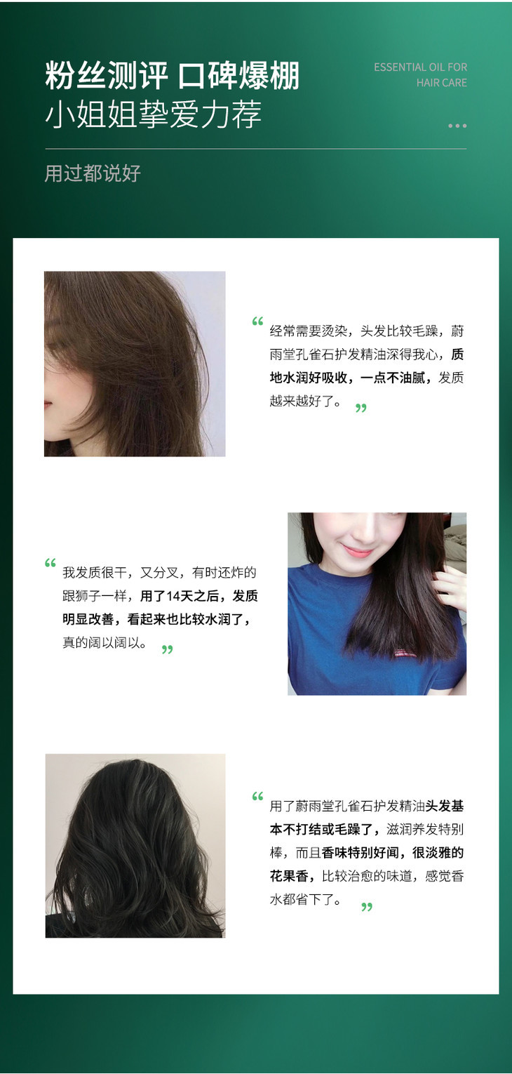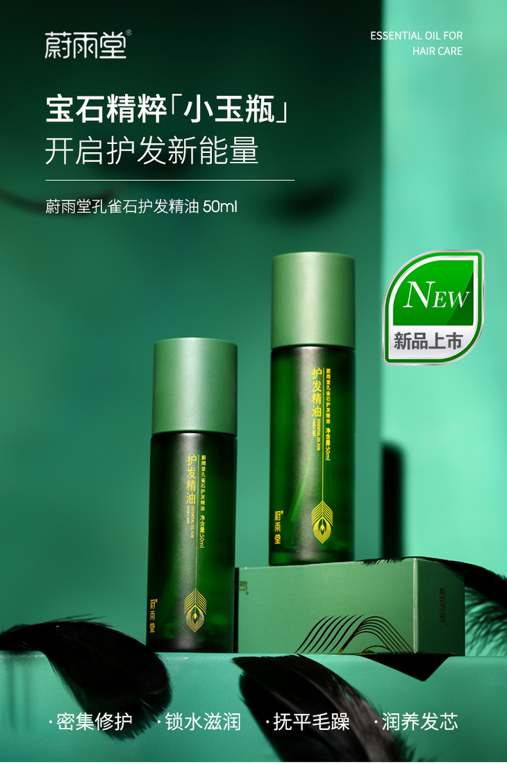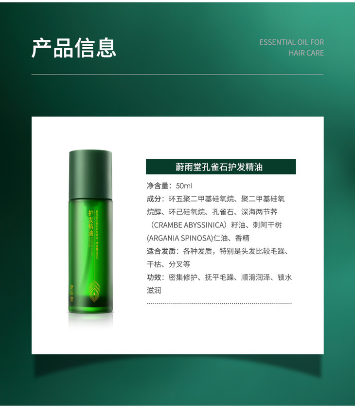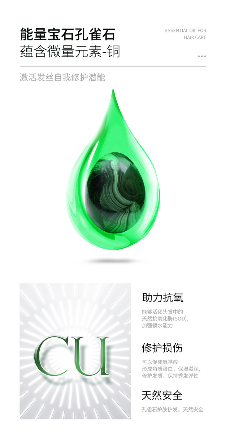 【玉石护发】蔚雨堂孔雀石护发精油小玉瓶富含有益微量元素+多种植物精油有效抚平毛鳞防止静电炸毛自带香奈儿香水味修护受损毛鳞、减少发尾分叉恢复发丝水分、增加表面光泽