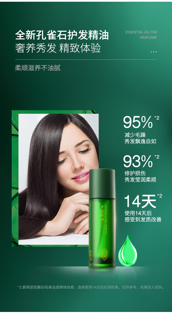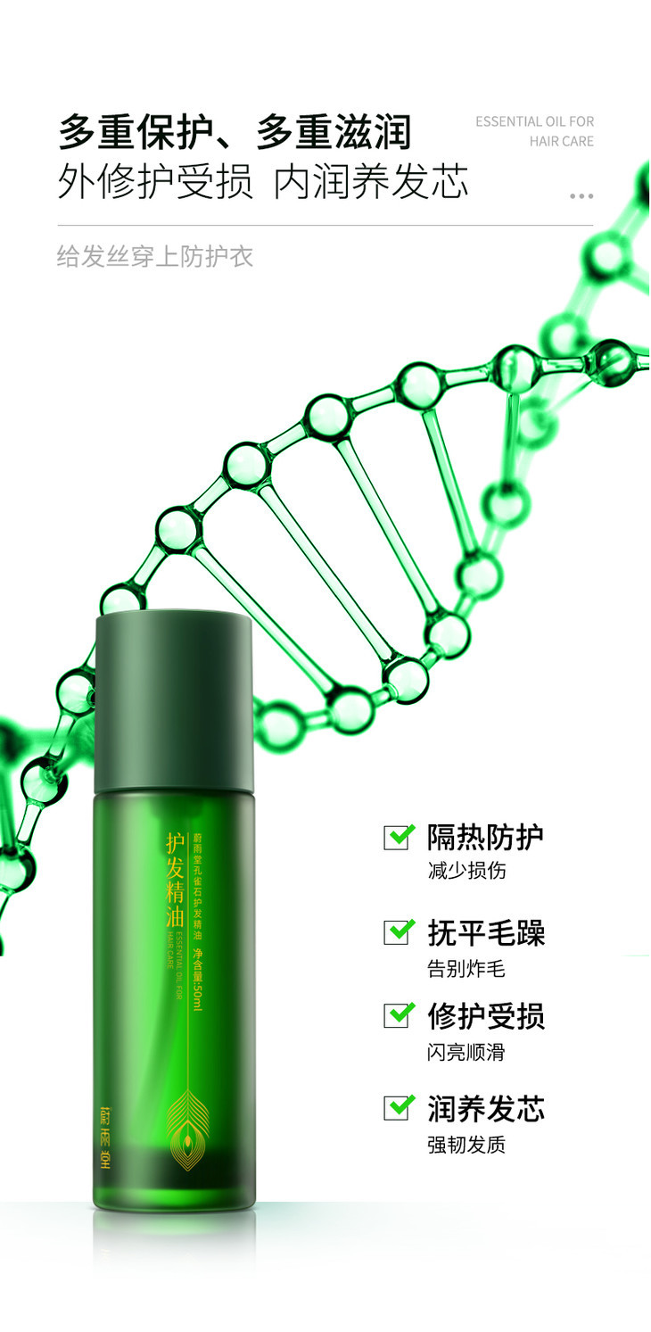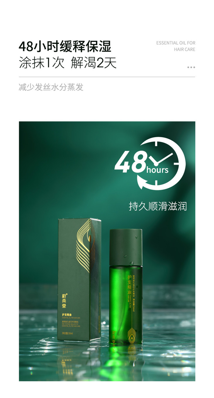 【玉石护发】蔚雨堂孔雀石护发精油小玉瓶富含有益微量元素+多种植物精油有效抚平毛鳞防止静电炸毛自带香奈儿香水味修护受损毛鳞、减少发尾分叉恢复发丝水分、增加表面光泽
