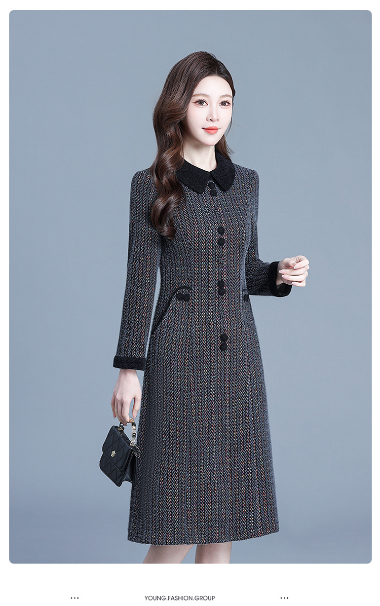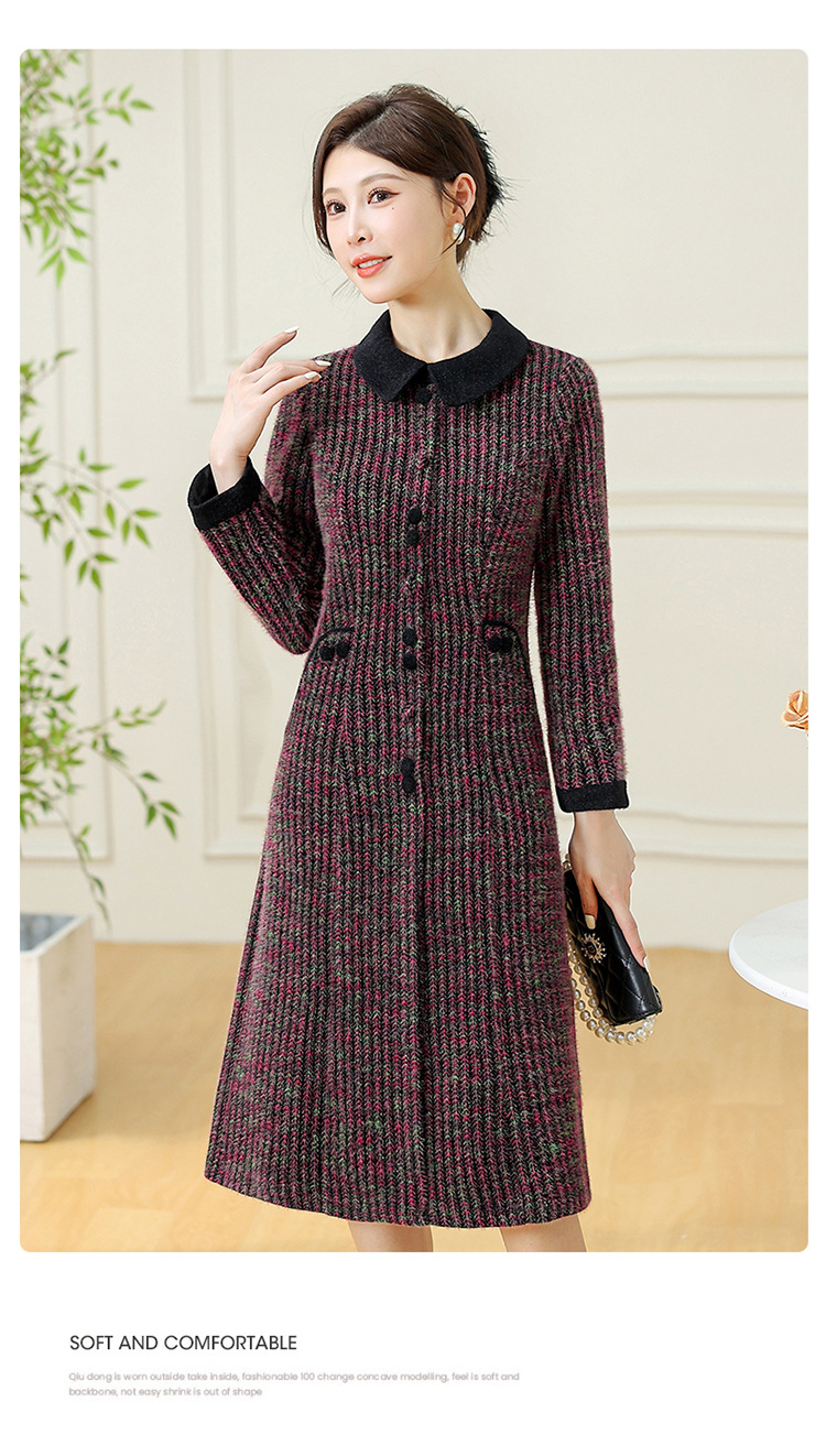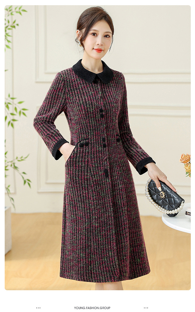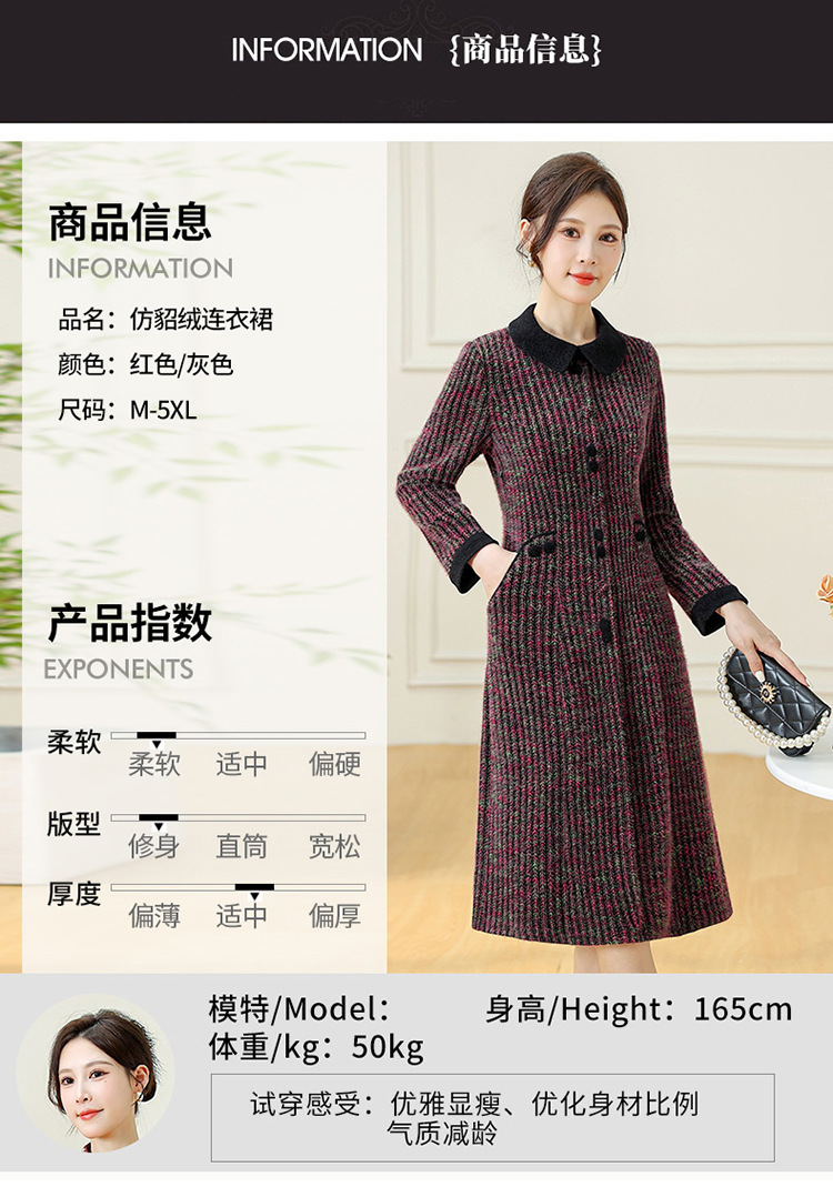 QYM 792080-Y厚款仿貂绒连衣裙妈妈装中长款弹力休闲裙
