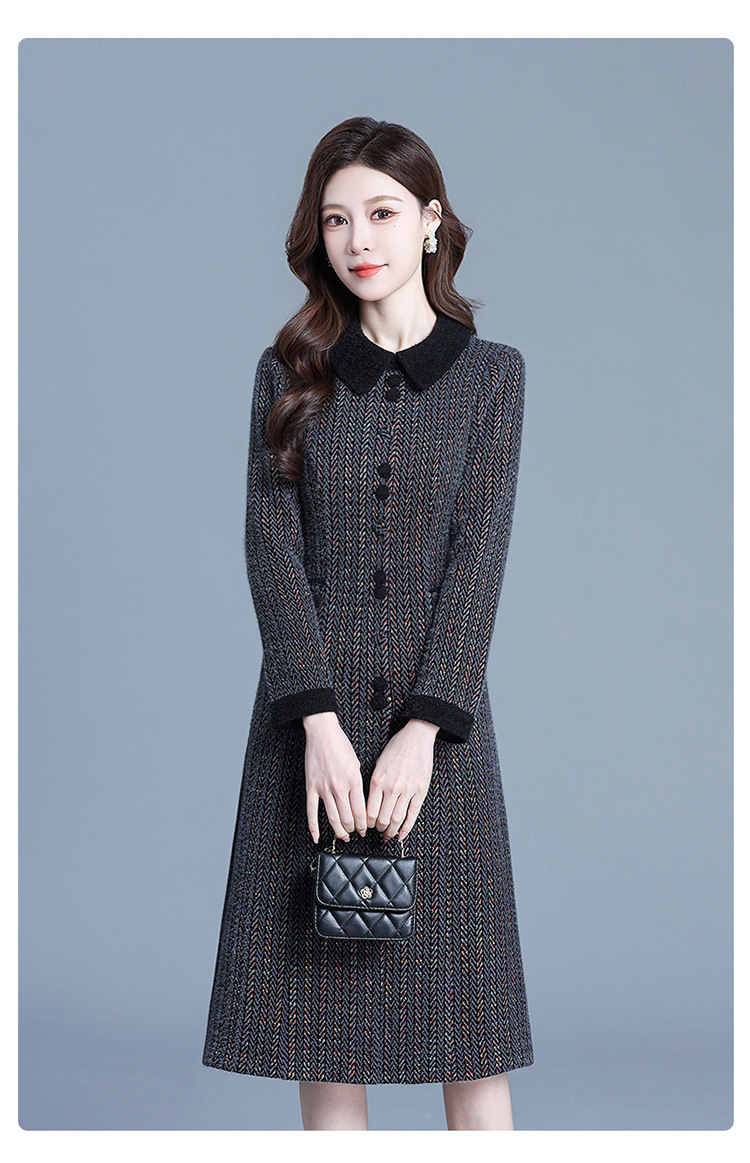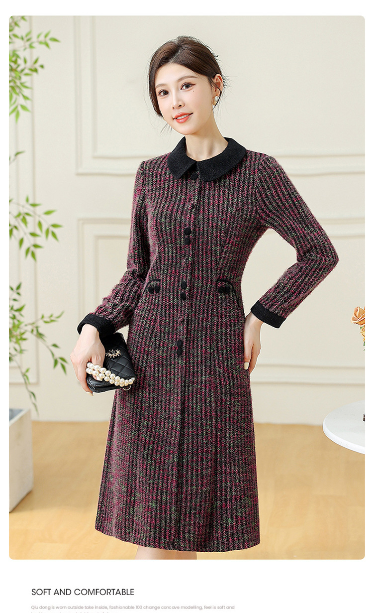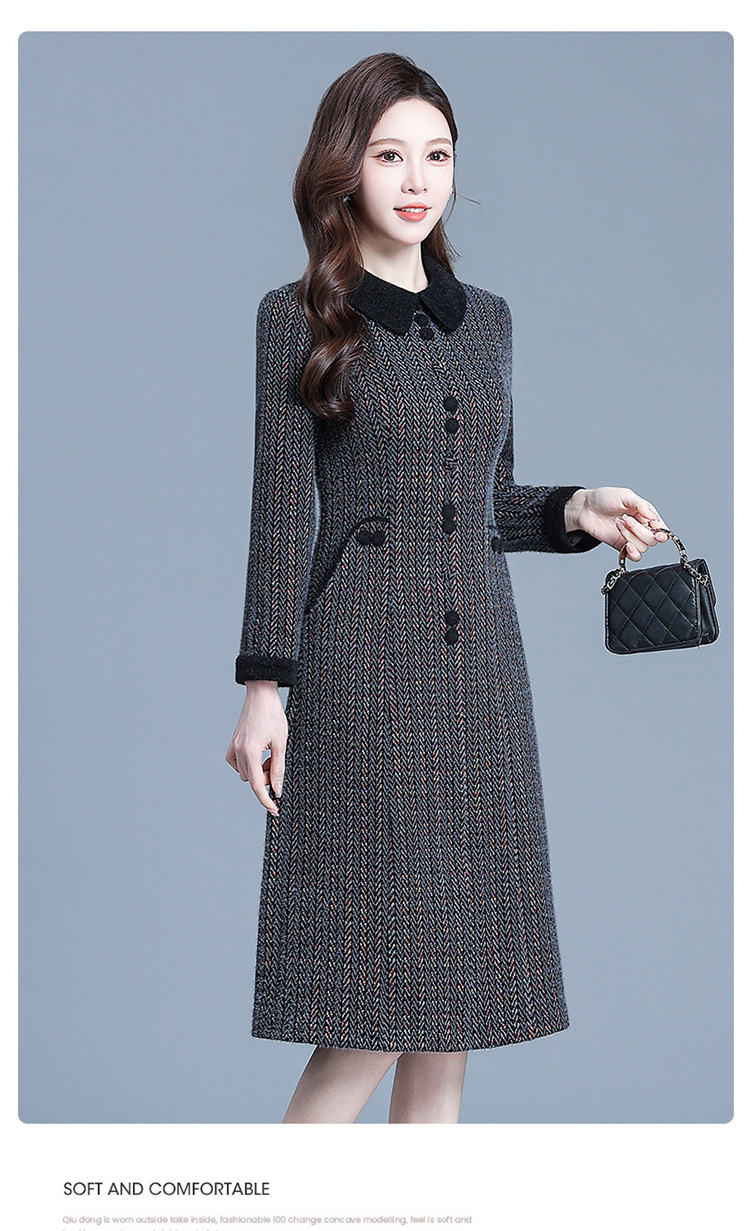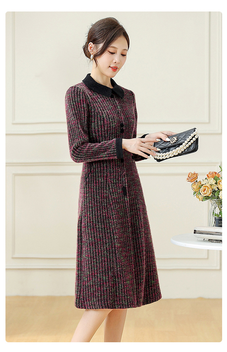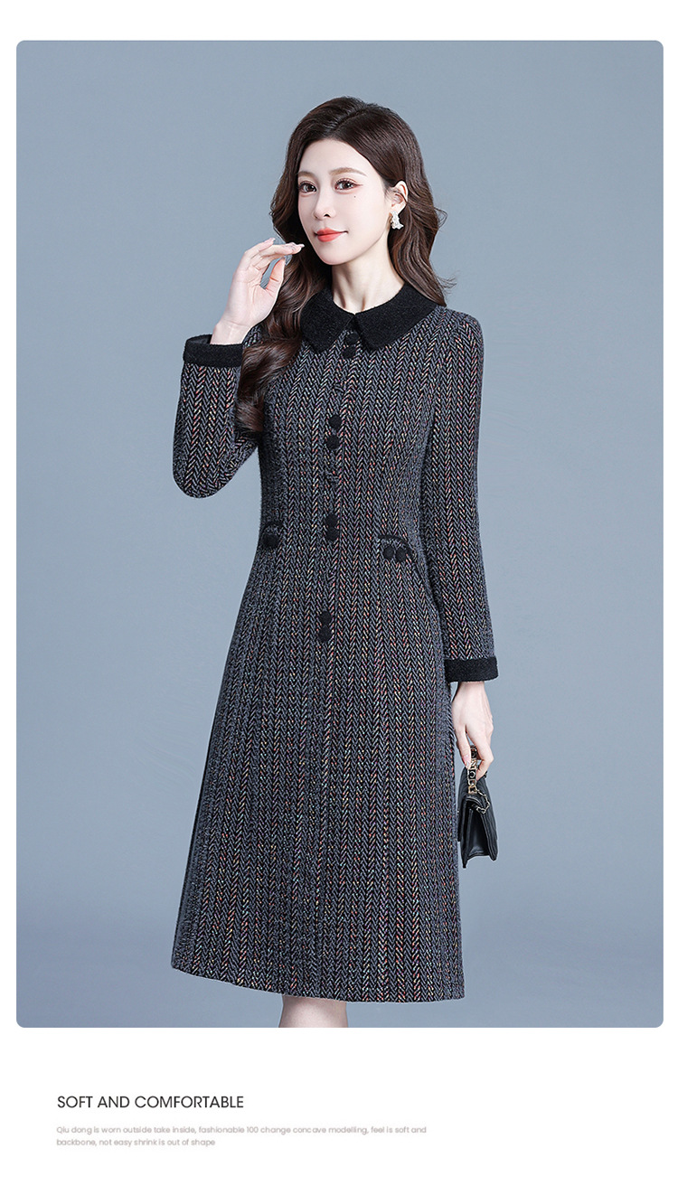 QYM 792080-Y厚款仿貂绒连衣裙妈妈装中长款弹力休闲裙