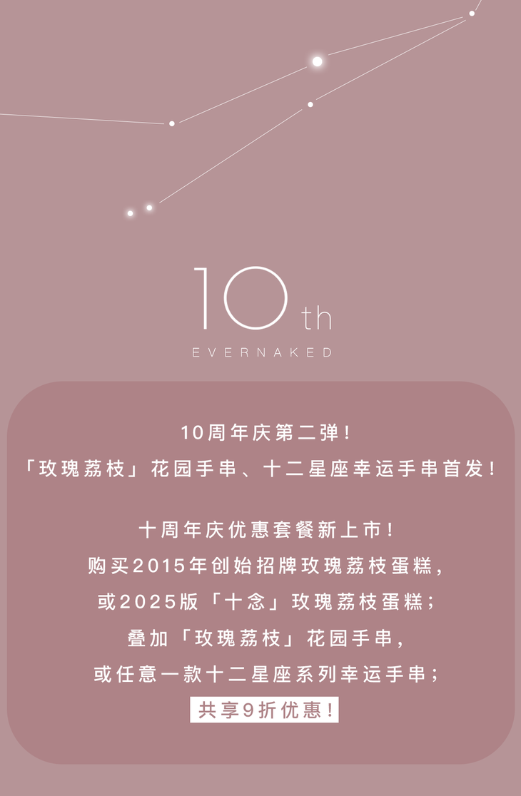 9折优惠套餐|十周年版「十念」玫瑰荔枝蛋糕&玫瑰荔枝/十二星座手串