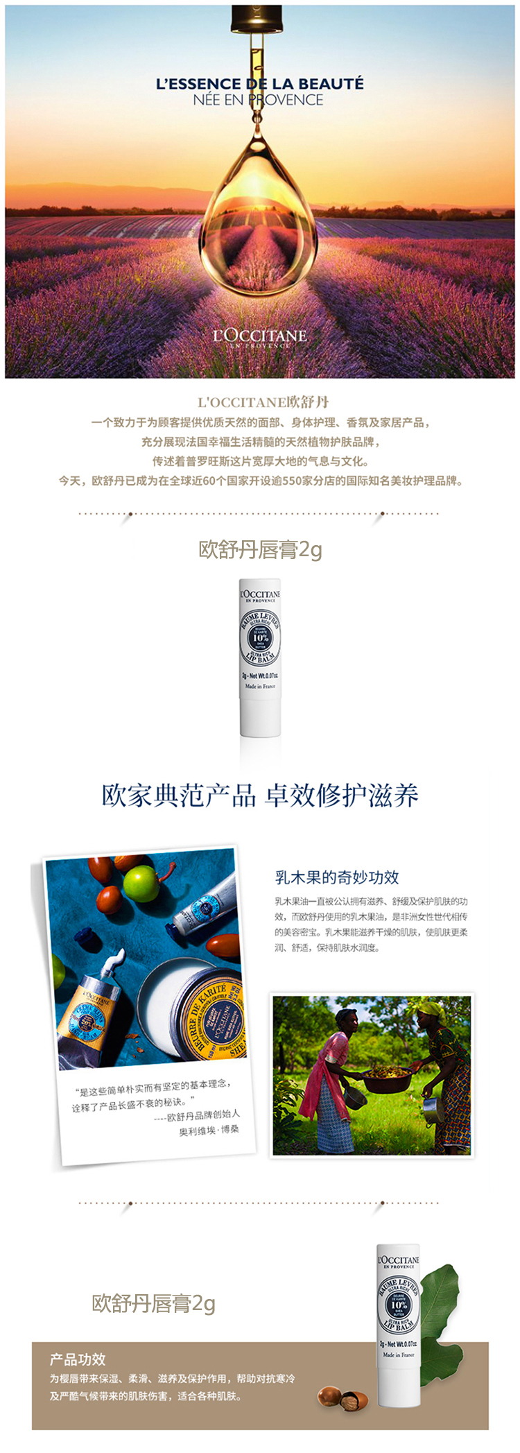 欧舒丹乳木果滋润护唇膏2g