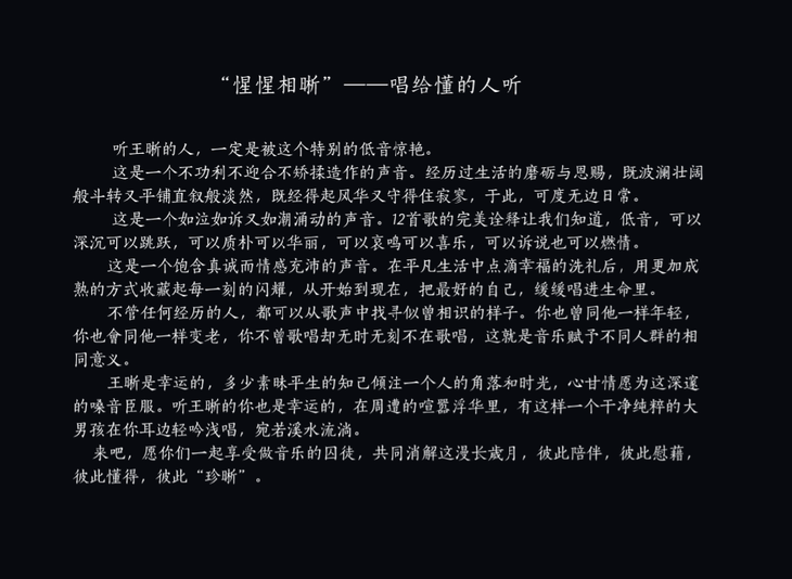 王晰在青年歌手大奖赛上征服了几十个苛刻的、来自音乐界各个专业的顶级专家,夺得了第一名,作为评委之一的录音师李小沛老师更是对王晰颇为欣赏。