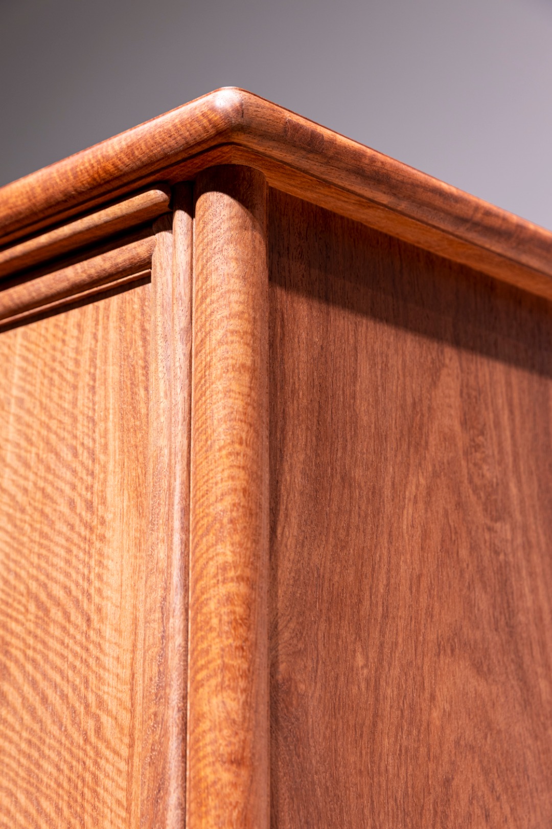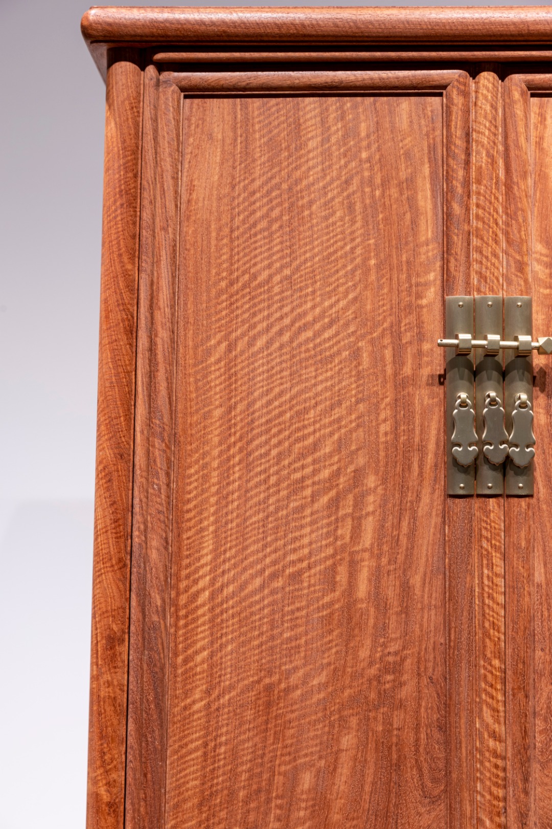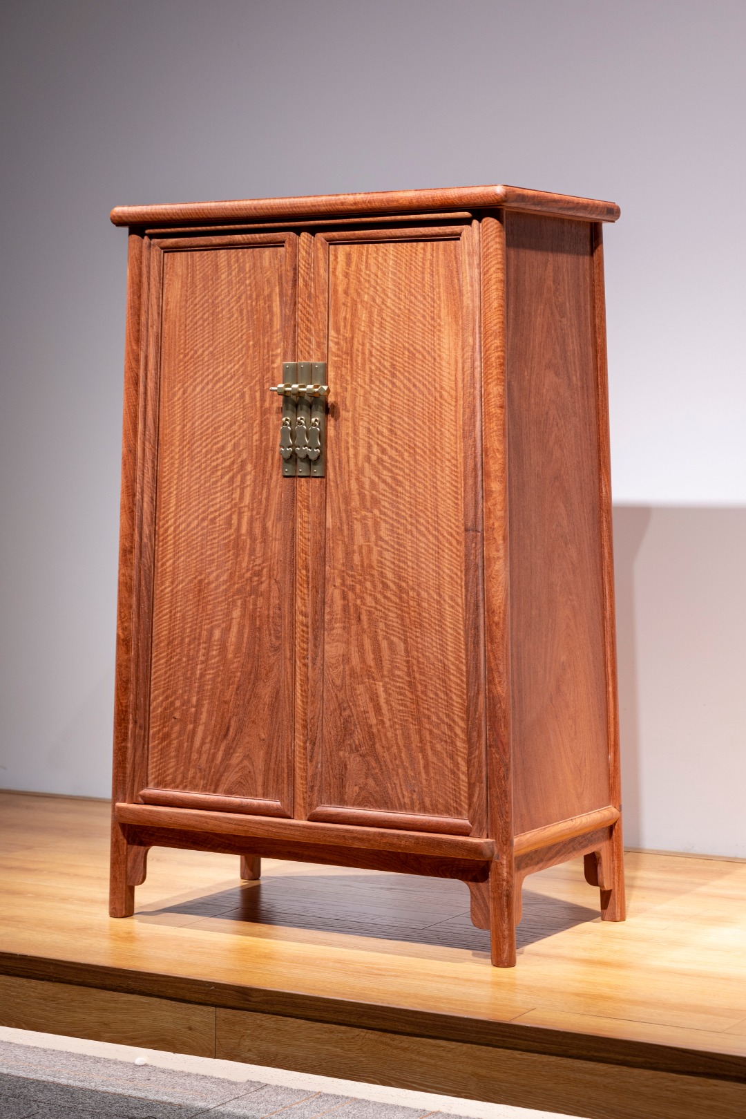 圆角柜,明式家具经典器之一,上窄下宽,又称A字柜或大小头,工、材方中带圆,随方就圆,面板常见一木对开,乃传统家具爱好者及藏家之大爱。