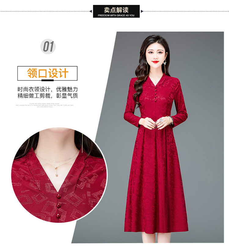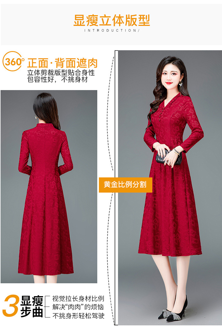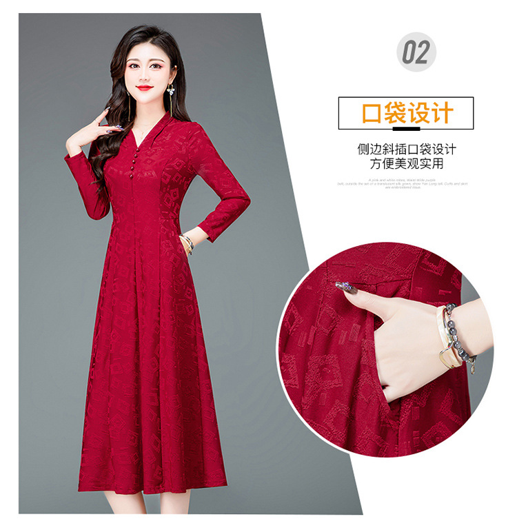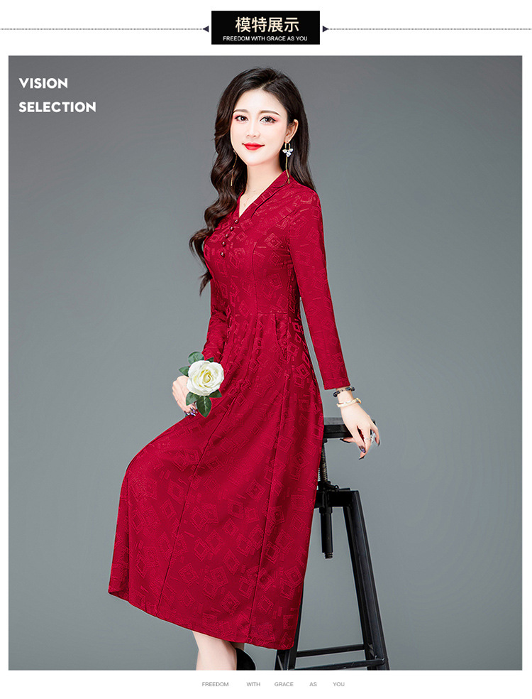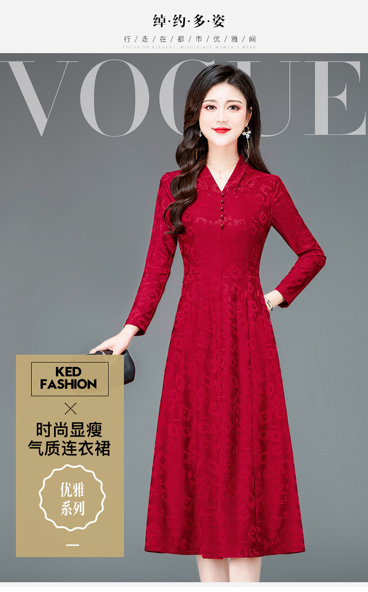 QYM H1135-Y连衣裙时尚妈妈装中长款A字裙