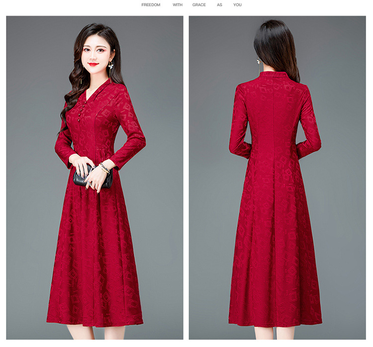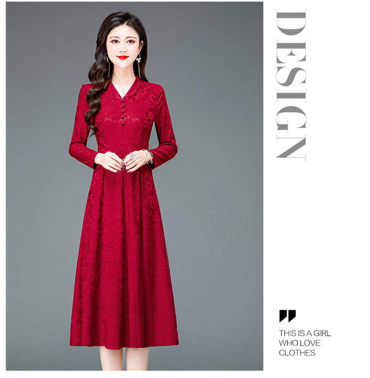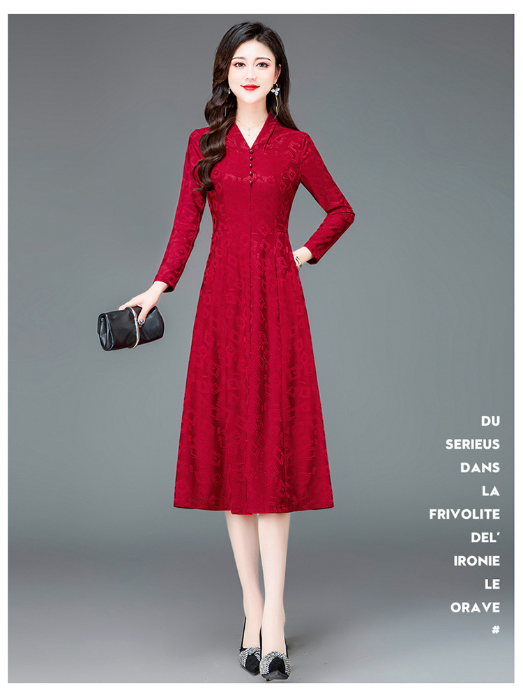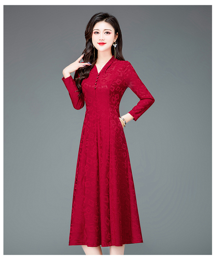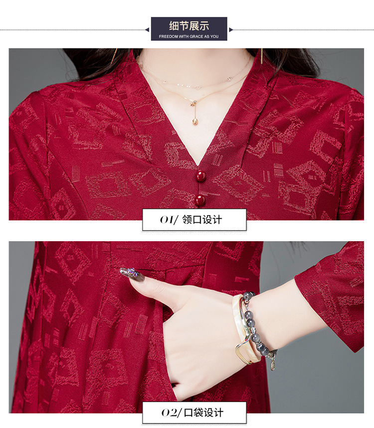 QYM H1135-Y连衣裙时尚妈妈装中长款A字裙