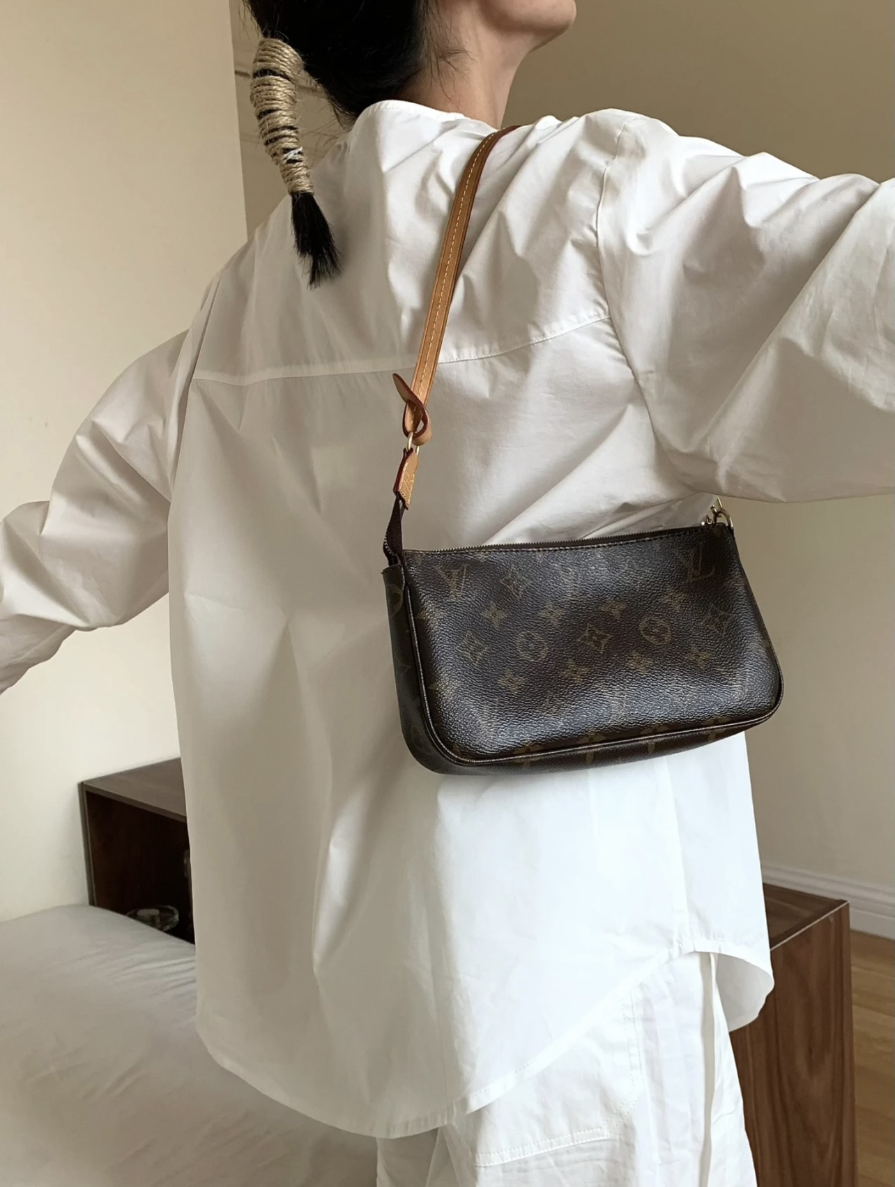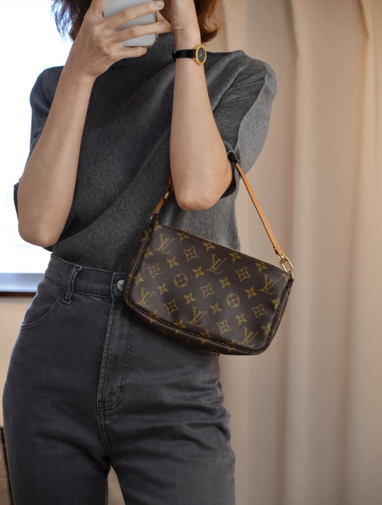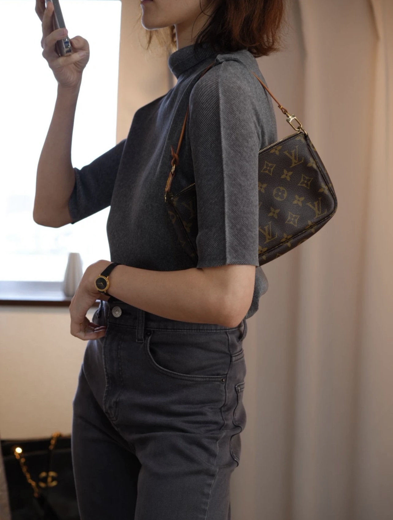 这款pochette本身在官网的单价不高,不到9000。它非常美,而且狠实用,样式简单而讨巧,既能搭配牛仔裤,也能搭配裙子。