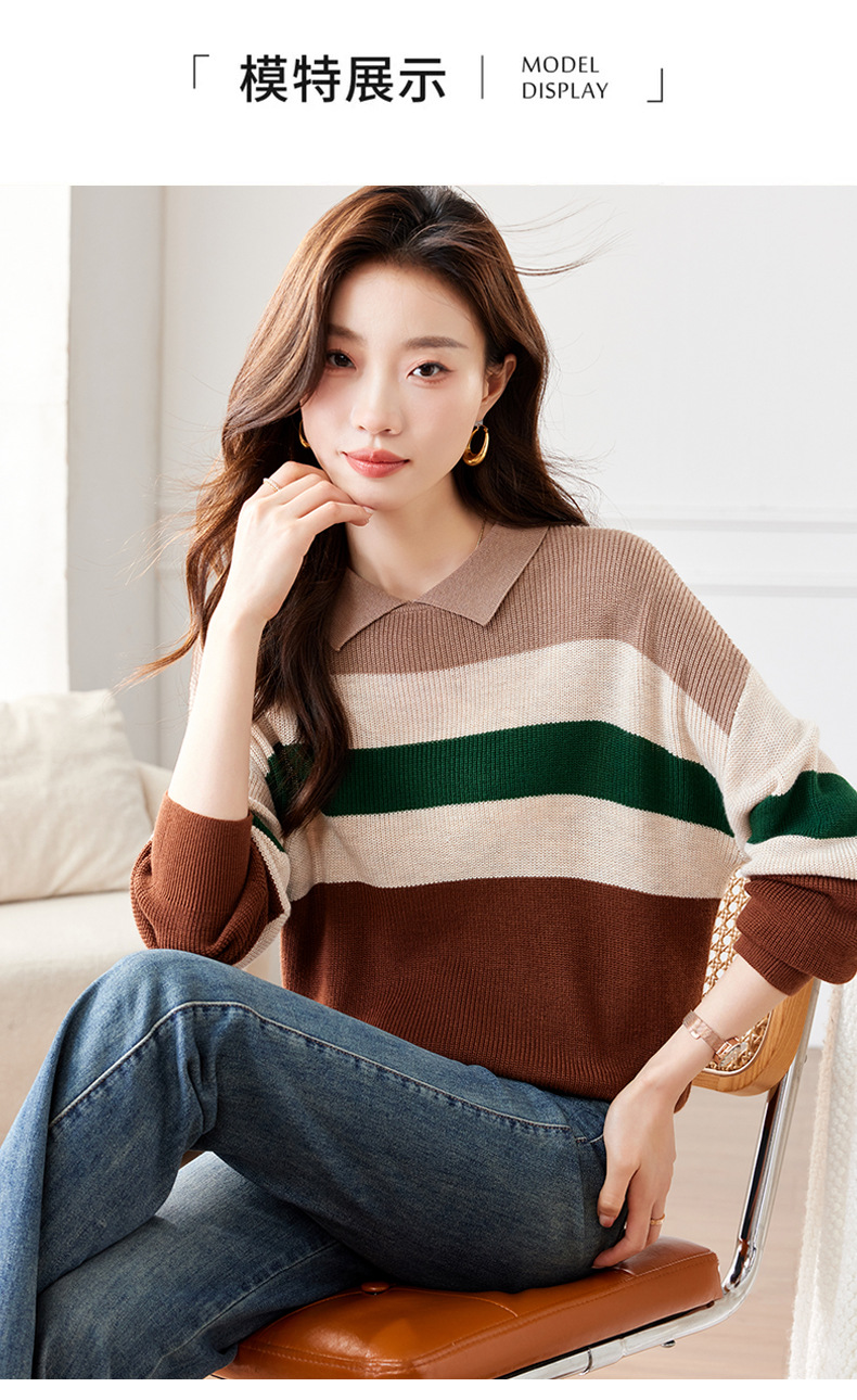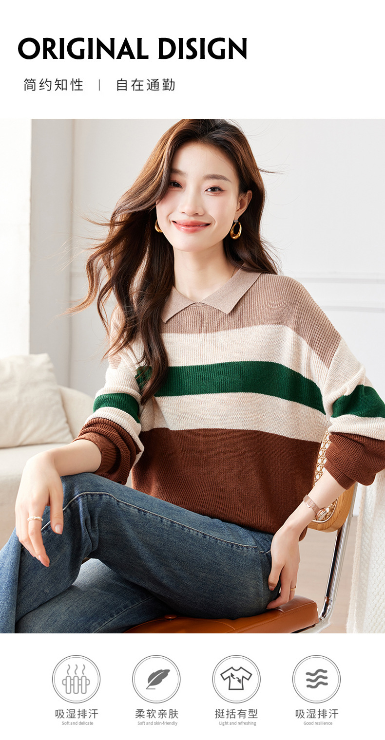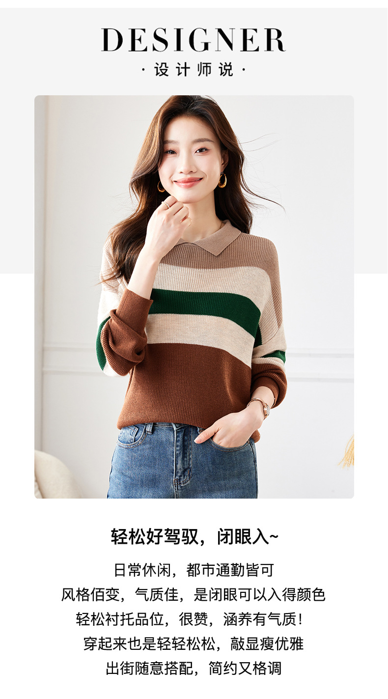CC-ML-B675条纹娃娃领针织衫女秋冬气质上衣时尚减龄长袖上衣翻领打底毛衣