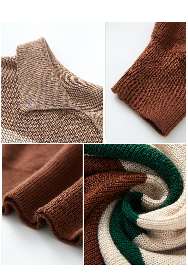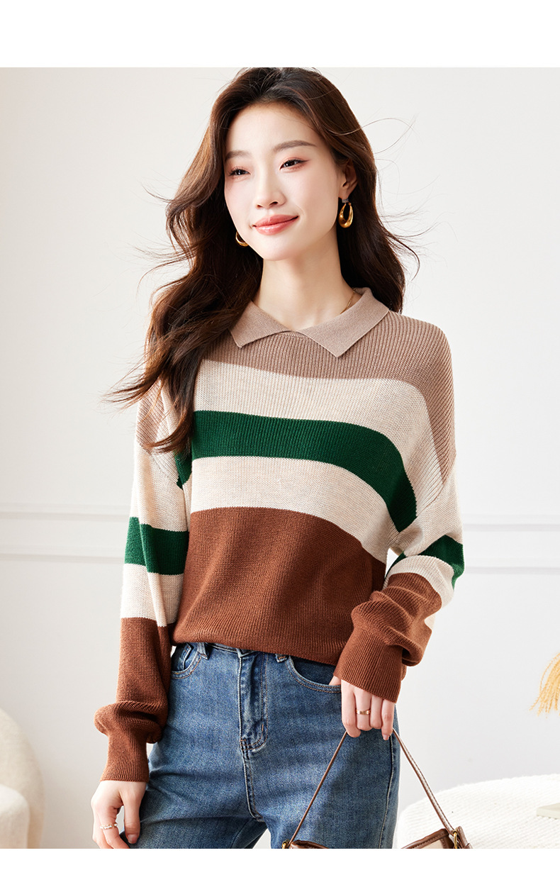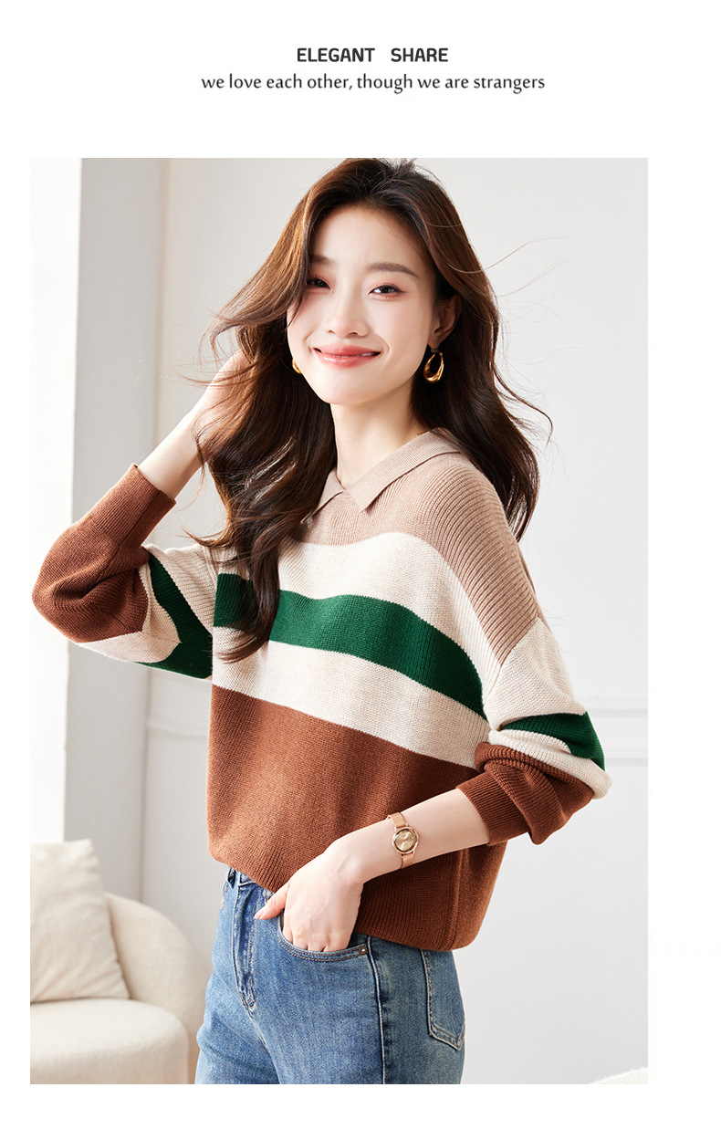 CC-ML-B675条纹娃娃领针织衫女秋冬气质上衣时尚减龄长袖上衣翻领打底毛衣