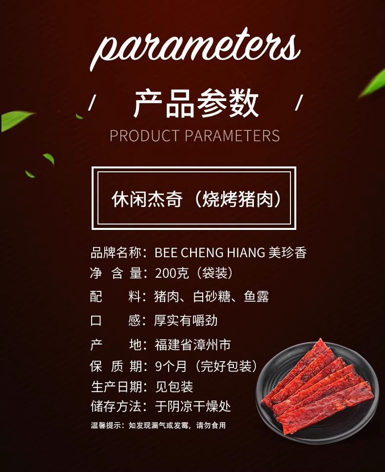 美珍香200g休闲杰奇(烧烤猪肉)新加坡特色办公室零食网红小吃