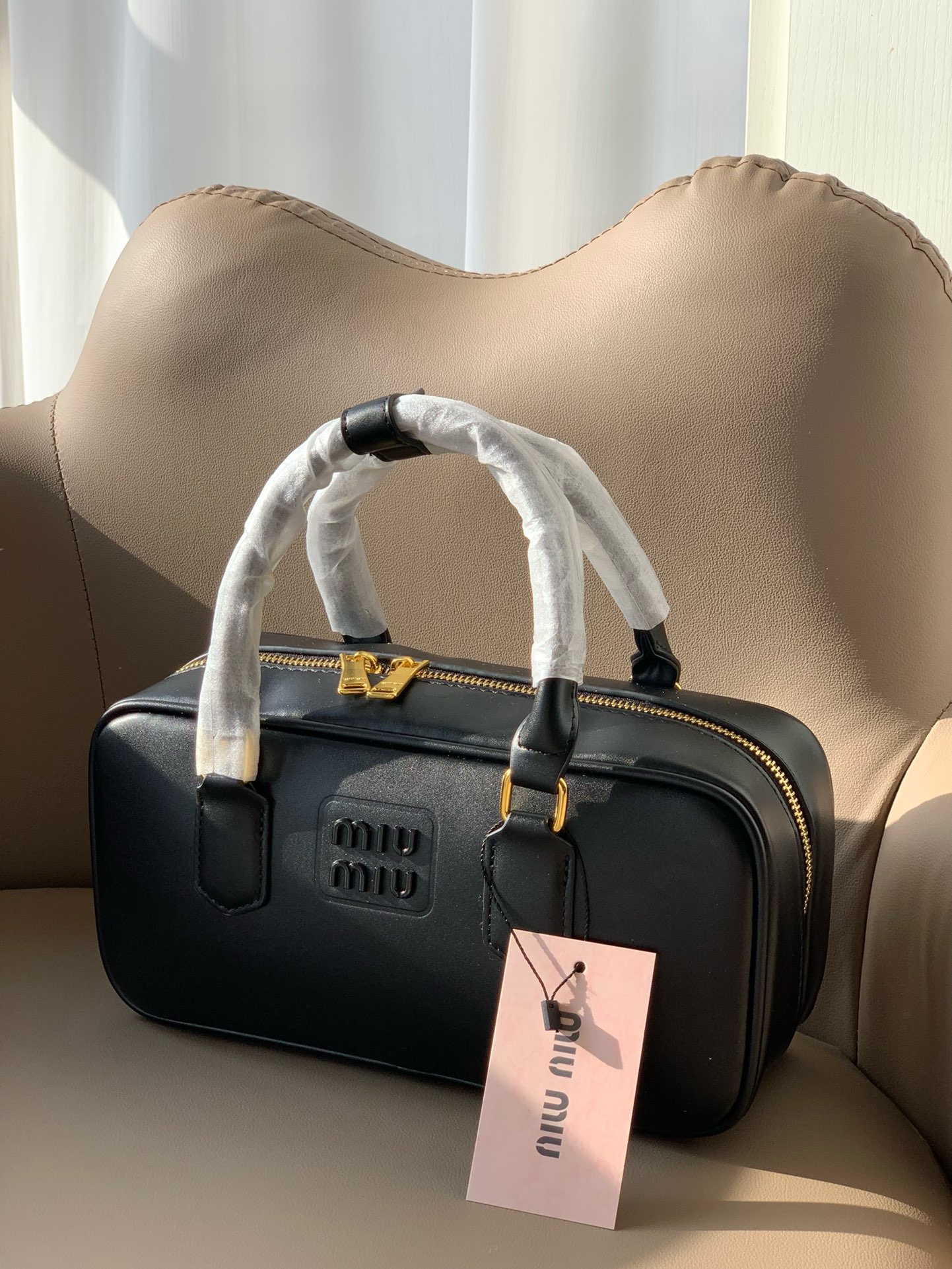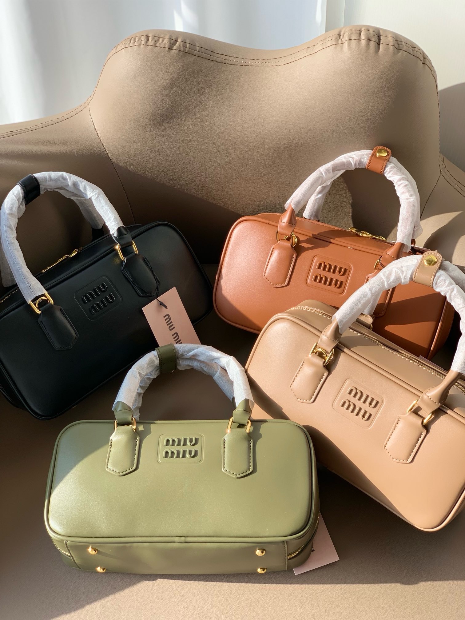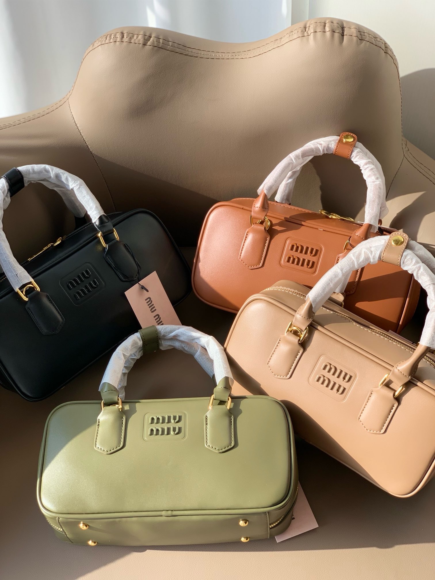 Miumi*超美波士顿保龄球包,这种小包太适合一年四季背了,什么都能装上身很轻巧,手提斜挎都可以~这款真的是无可挑剔,怎么背怎么好看。